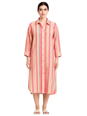 Description - The Gold&Silver Relaxed Shirtdress offers effortless comfort and style. Cut in a loose, easy silhouette with long sleeves and a classic shirt collar, this dress provides versatile wear for any occasion. Enjoy its relaxed fit and timeless design for a chic, understated look.