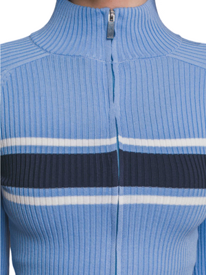 Description - Stay cozy and stylish in the Love Tree Double Zip Knit. Crafted with stretchy knit material and featuring chic striped details, this sweater top offers ultimate comfort and a flattering fit. The double zip adds a touch of modern flair. Perfect for layering or wearing on its own.