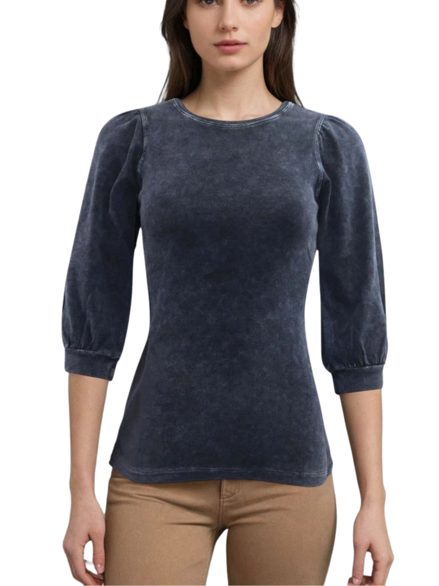 Calling all comfort queens and casual chic connoisseurs! This Hard Tail crew-neck top with three-quarter bubble sleeves is your new wardrobe favorite....