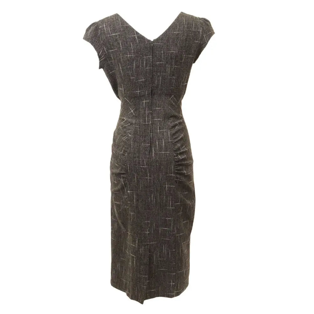Dark Grey Stretch Cross Hatch Fabric with V-neck Bow and Cap Sleeves