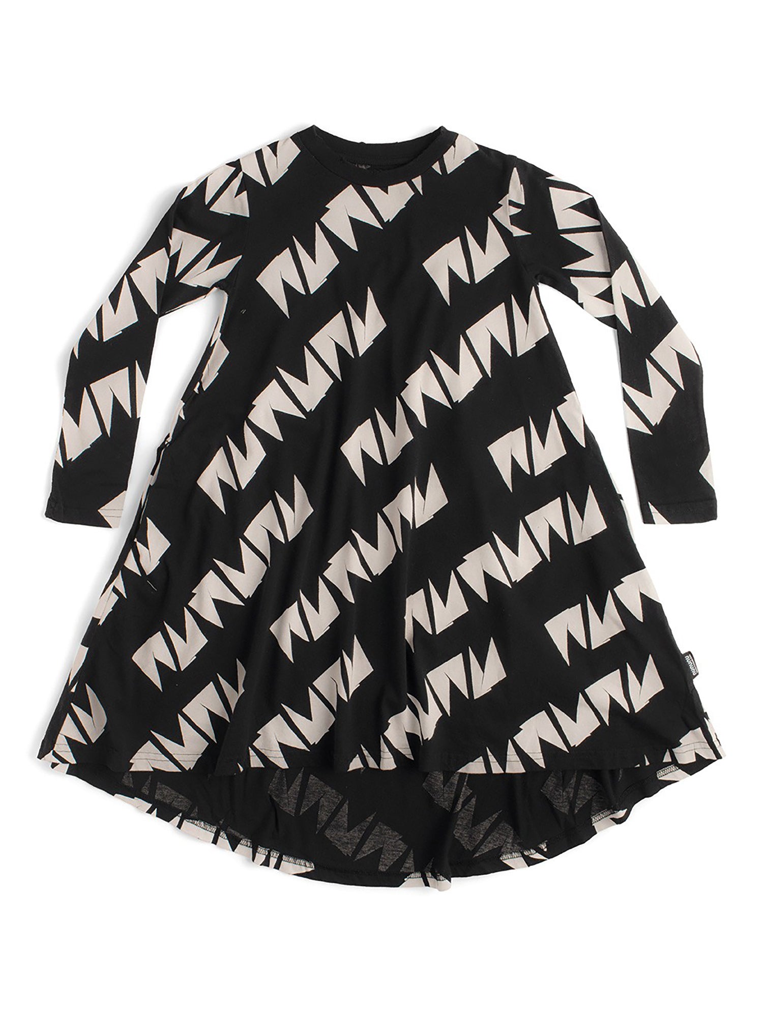 This Kathie K dress is black and white. The top is ribbed and the bottom has white stitching and is...