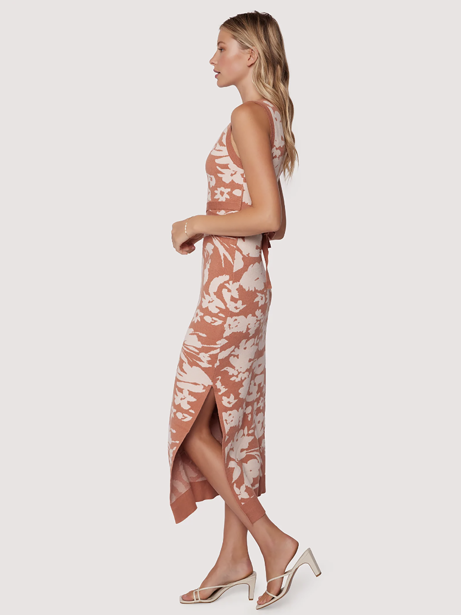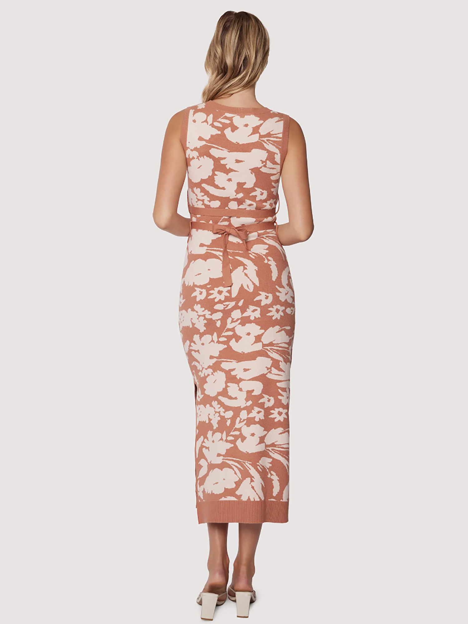 •LOOK: NEW at Pink Orchid!!New in from Lost and Wander this sleeveless knit abstract floral dress in bronzy rose. Belted waist,...