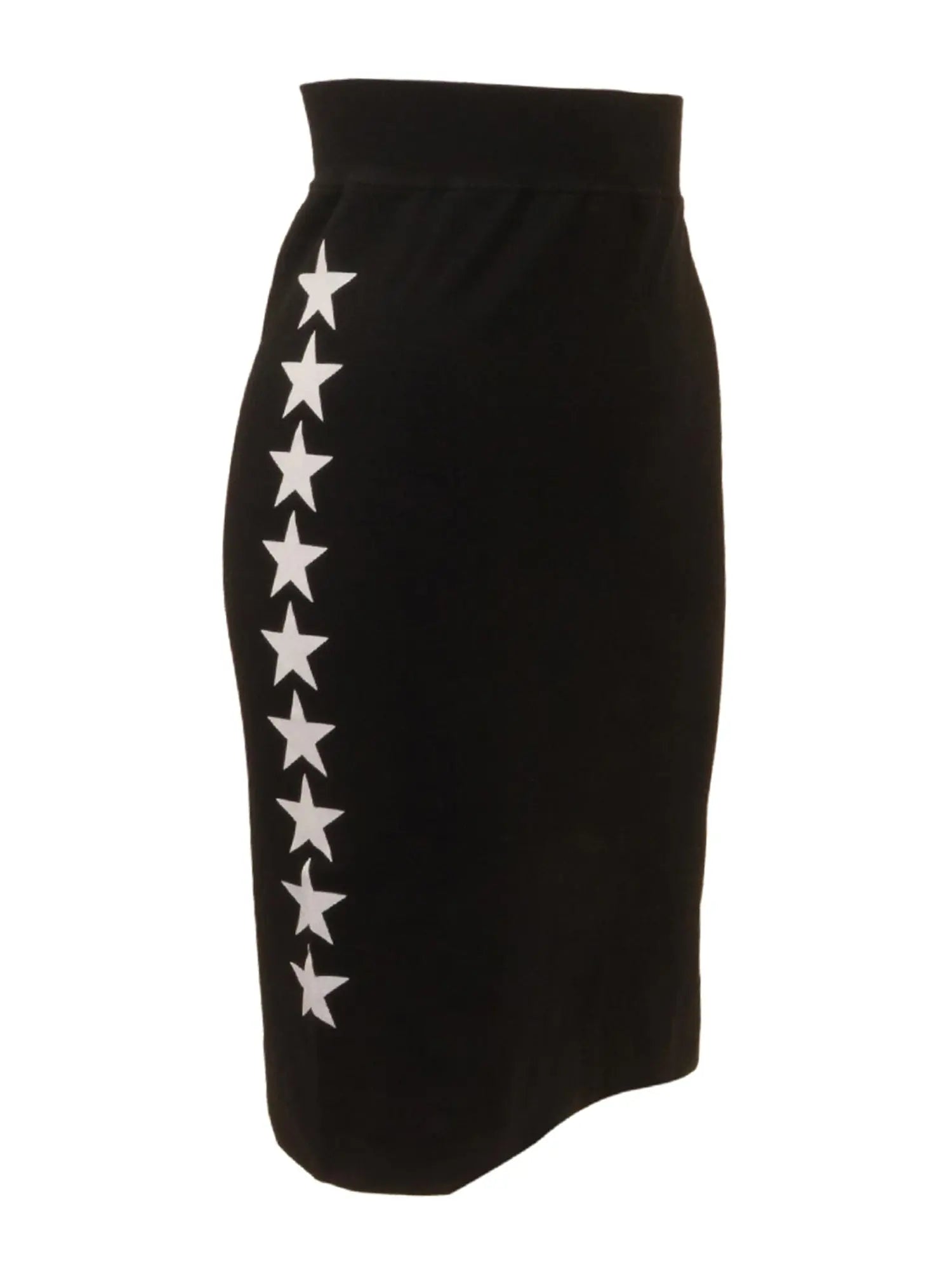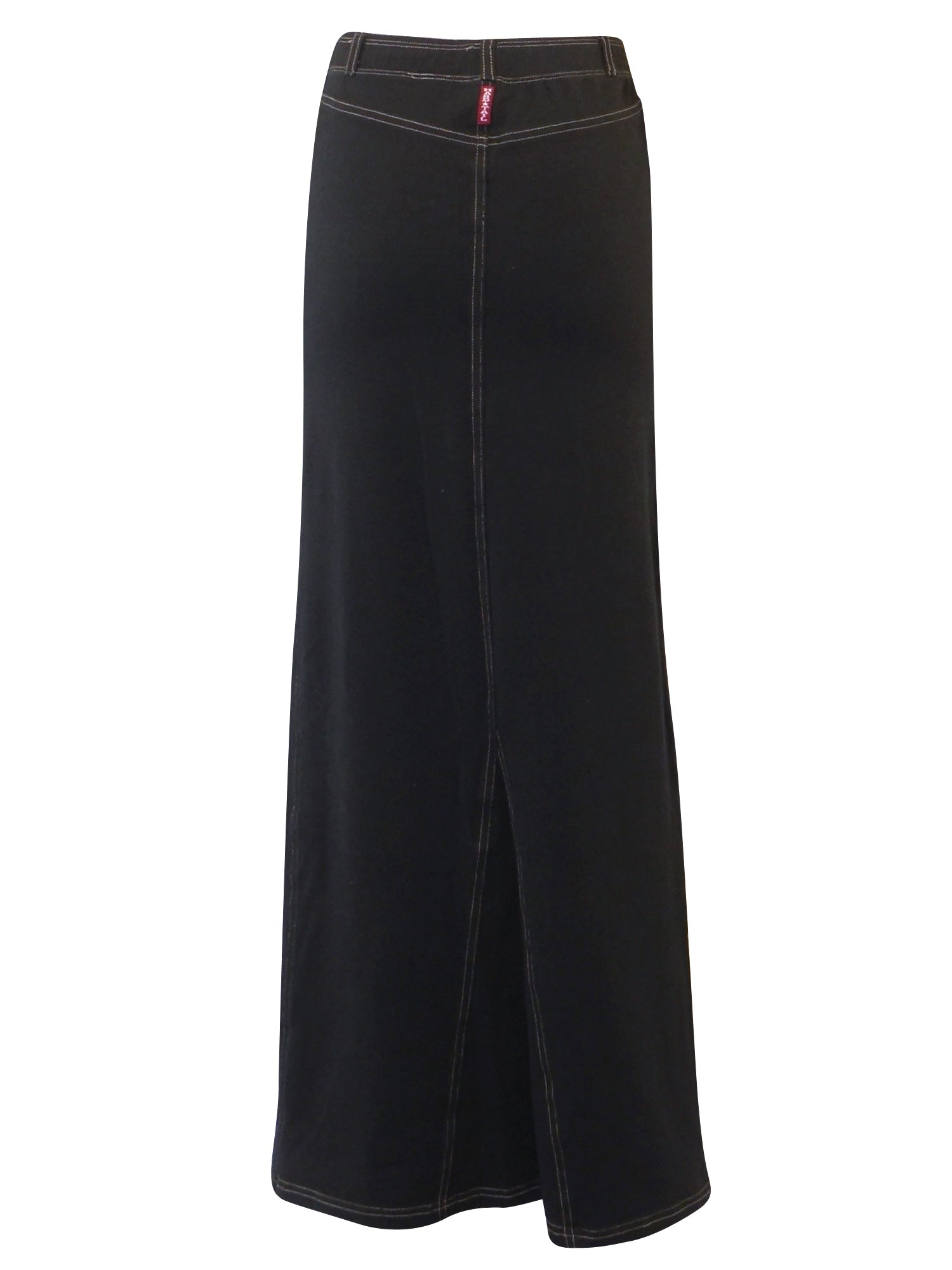 Straight black slinky skirt, comes in two lengths 95% Rayon 5% Spandex