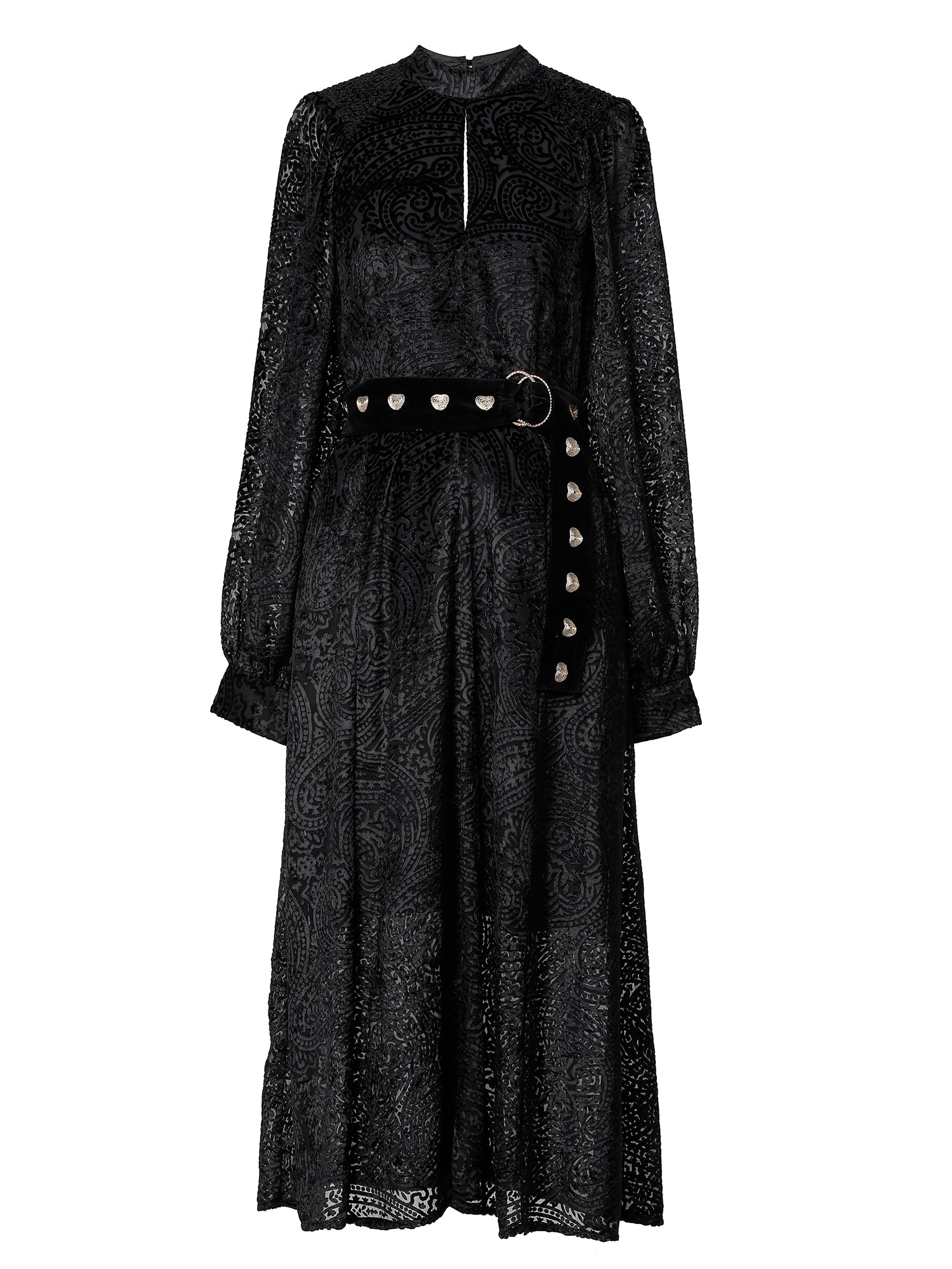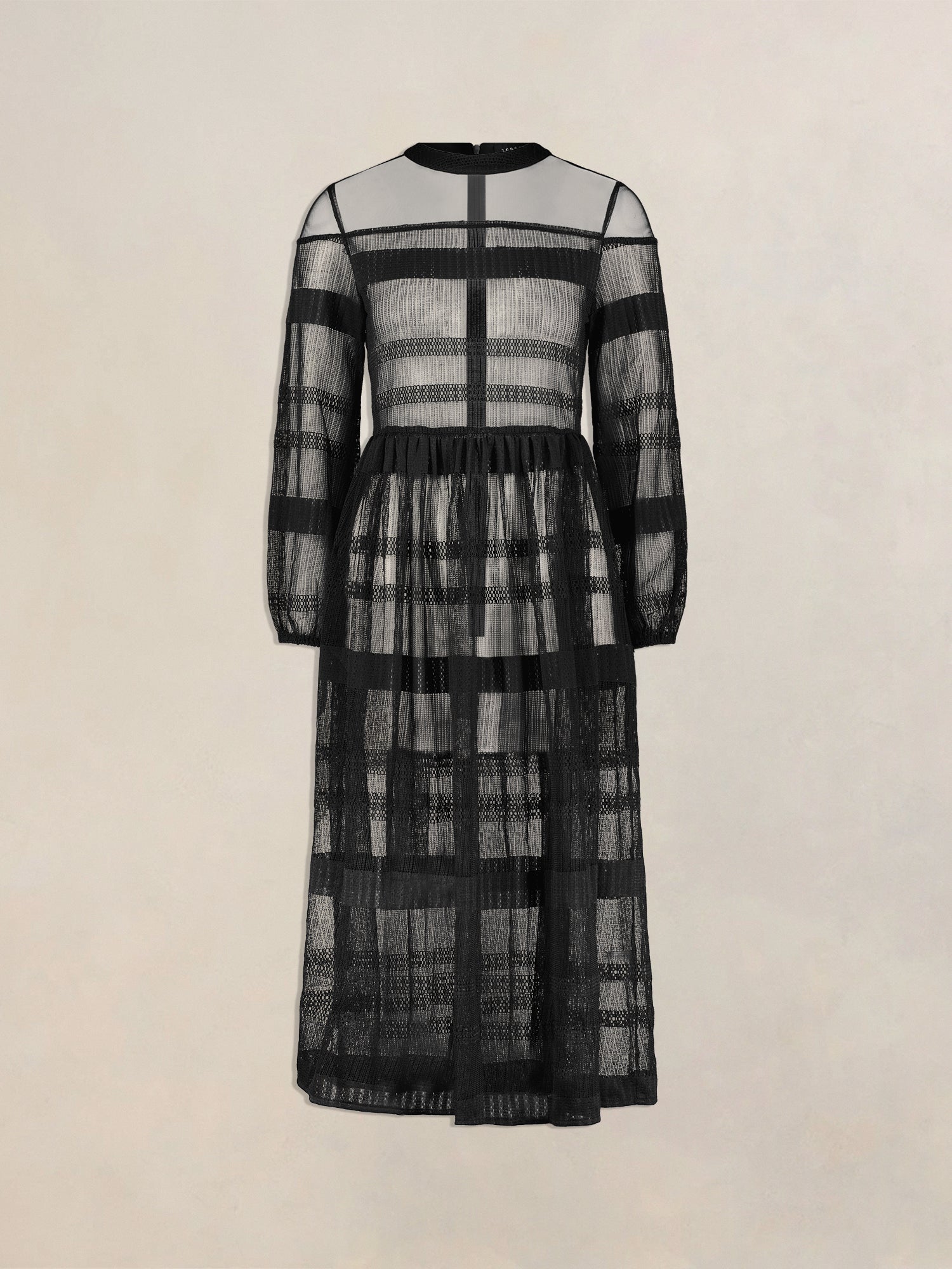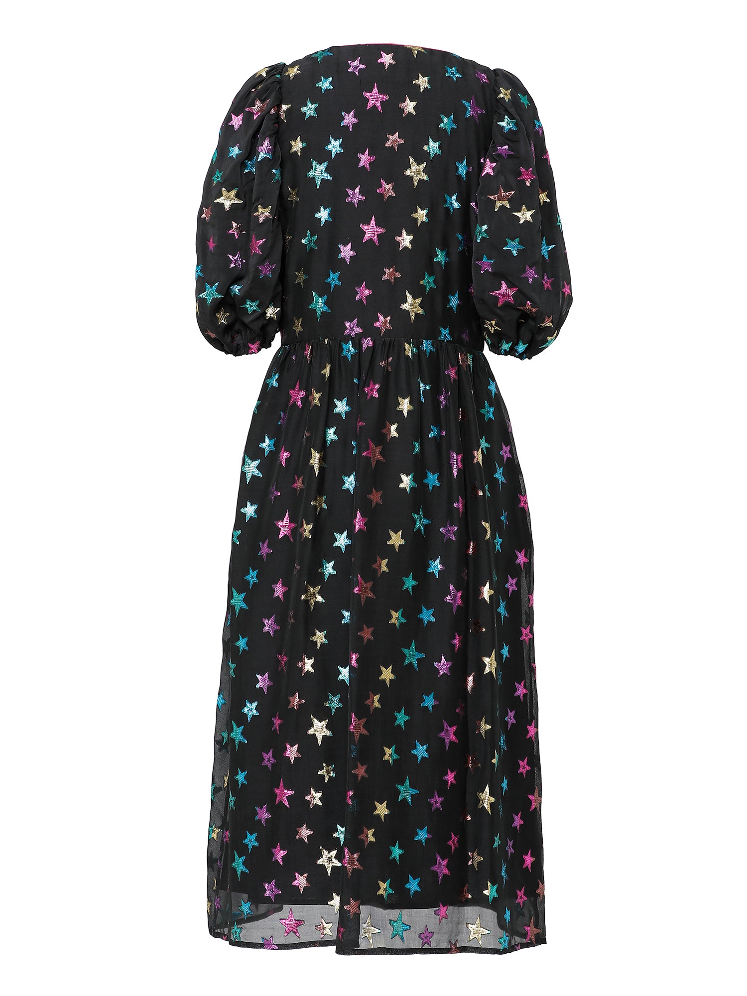 Emily Lovelock Irene Dress: Twirl-Worthy Midi with Starry Sheer Overlay