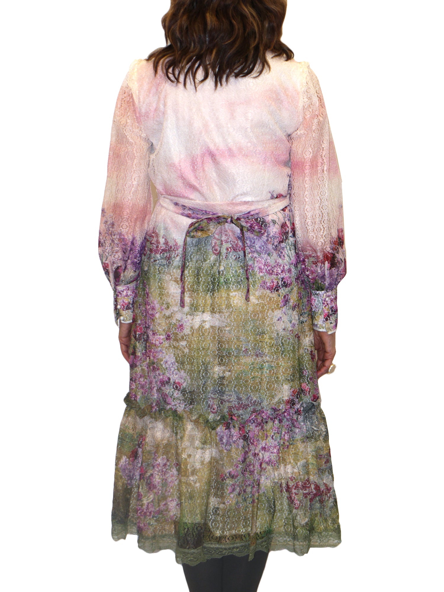 Imagine this: Sunlight dances through the sheer overlay, revealing a beautiful maxi silhouette adorned with a spring floral print in...