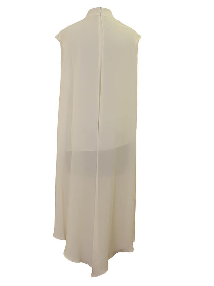 Sleeveless chiffon tank top with flowy dramatic length shawl cape. Mock collar with contrasting chiffon fabric for tie. Dry Clean...
