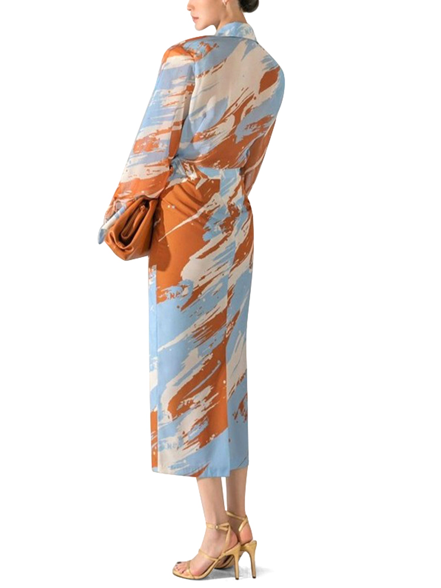 Button front top with bottom tie and pleated colored sleeves Matching skirt available