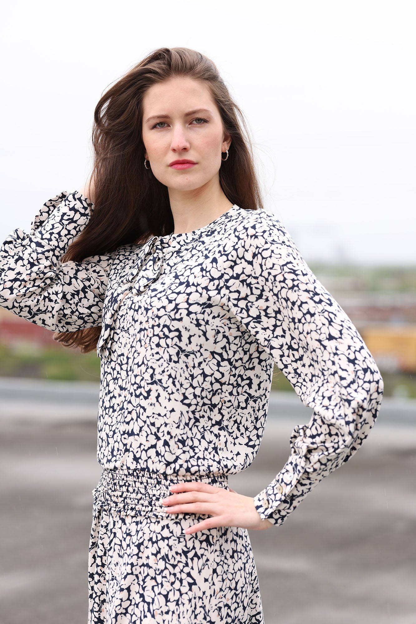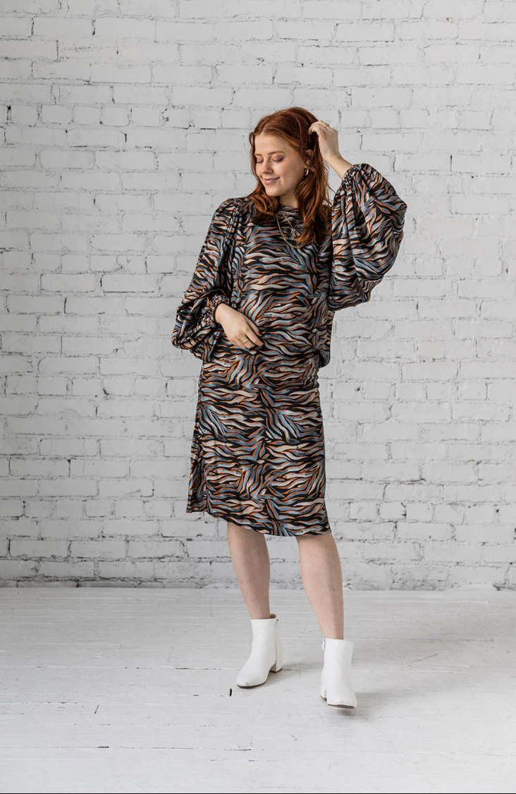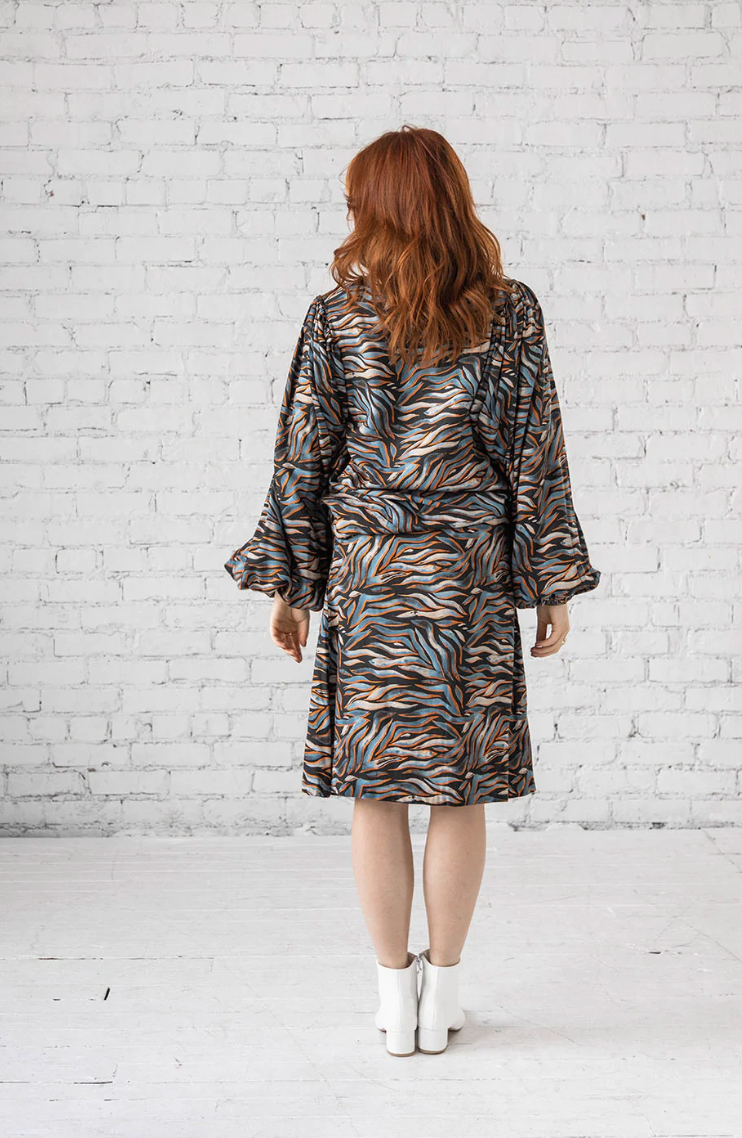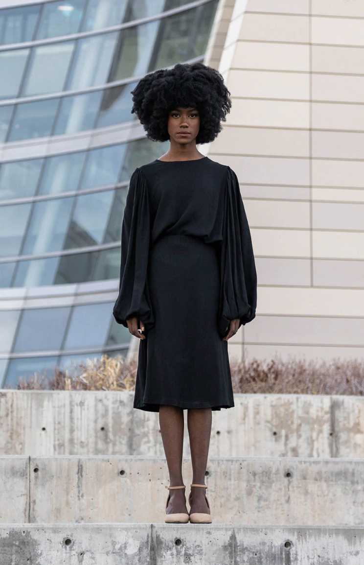 The Adeline asymmetric tucked and draped long sleeve top. Cut in Georgette for beautiful movement.