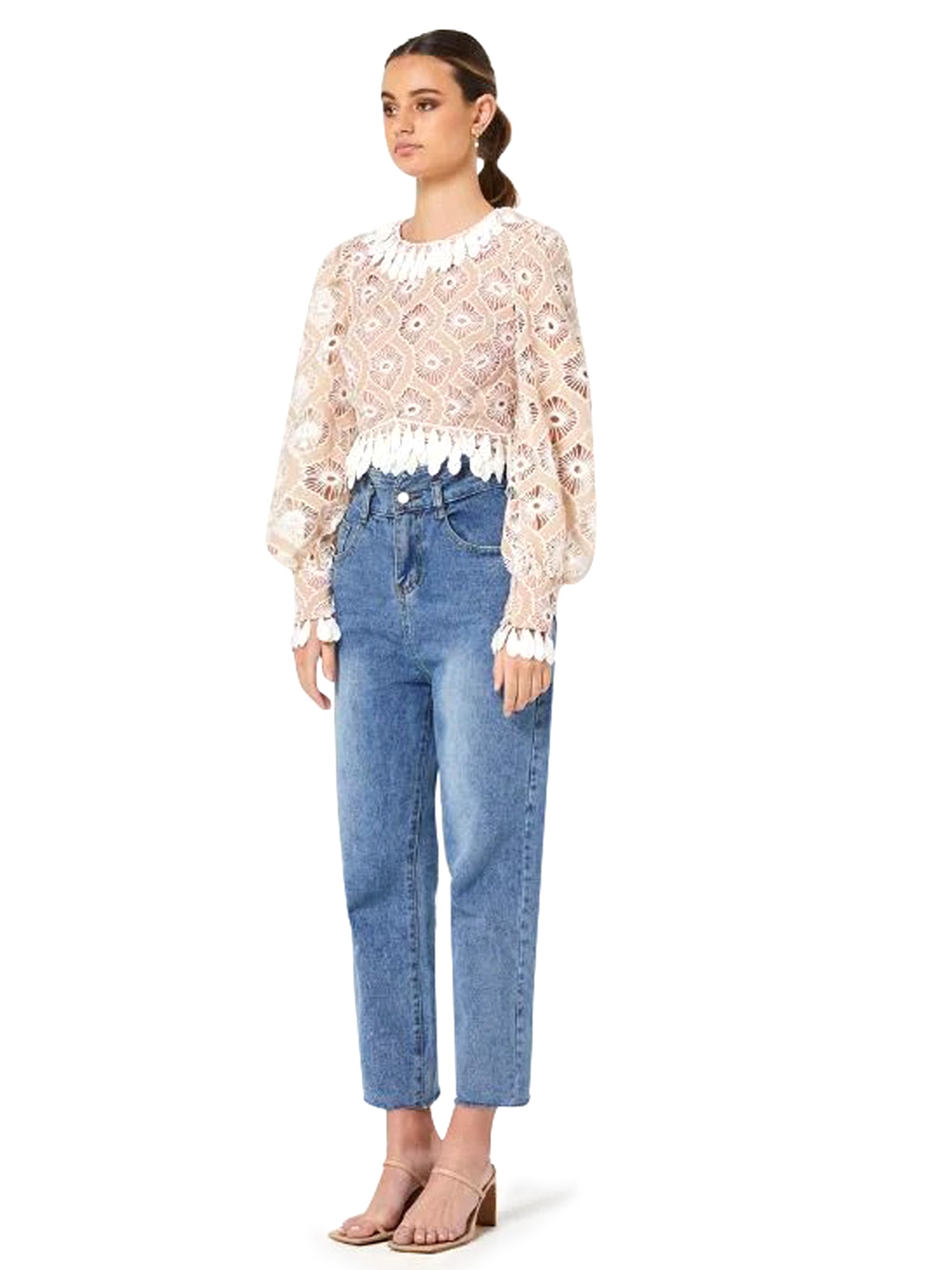 •LOOK: Elliatt has taken a soft, beautiful lace fabric and designed a unique and magnificent top. The laser cut lace is...