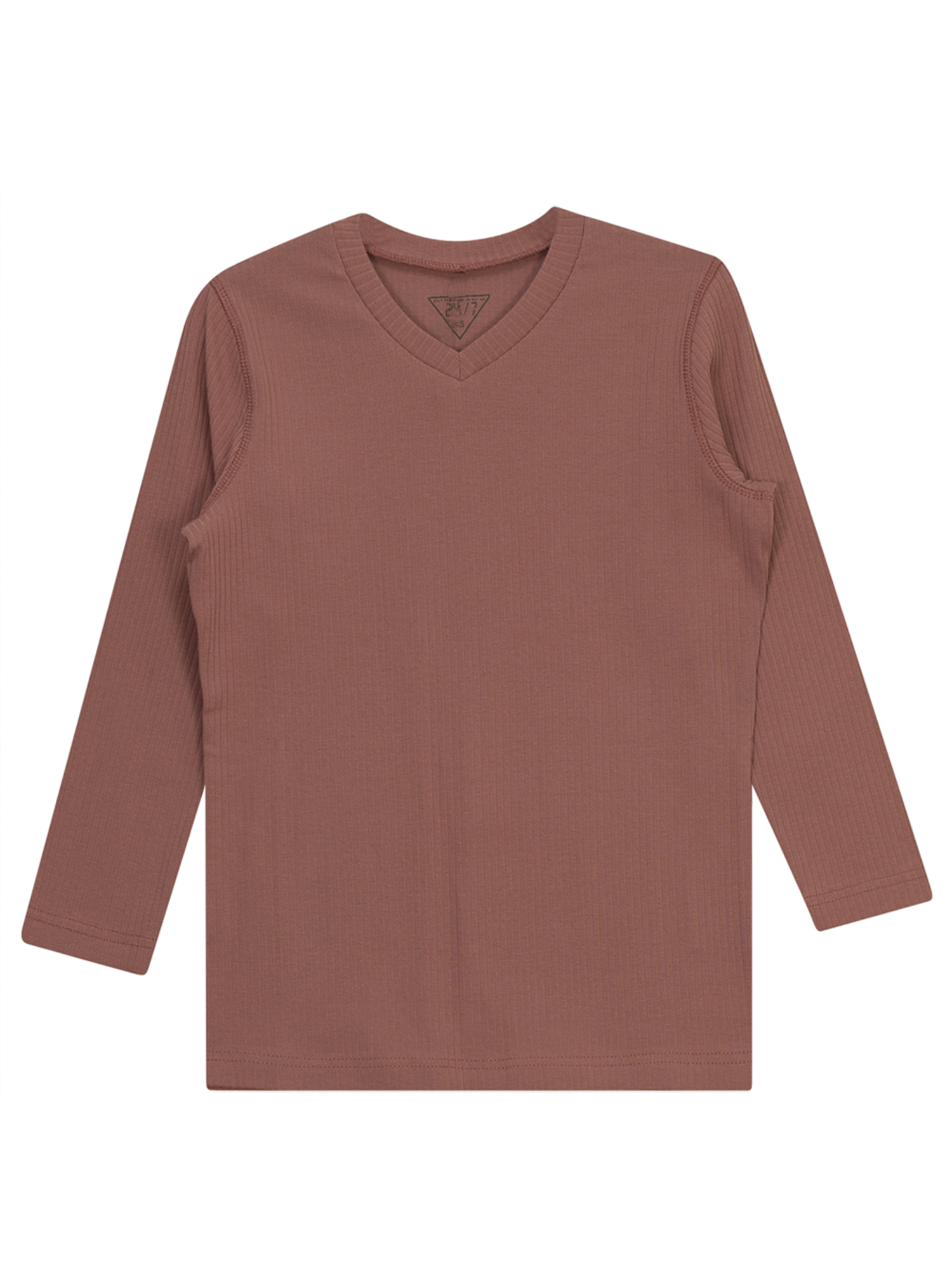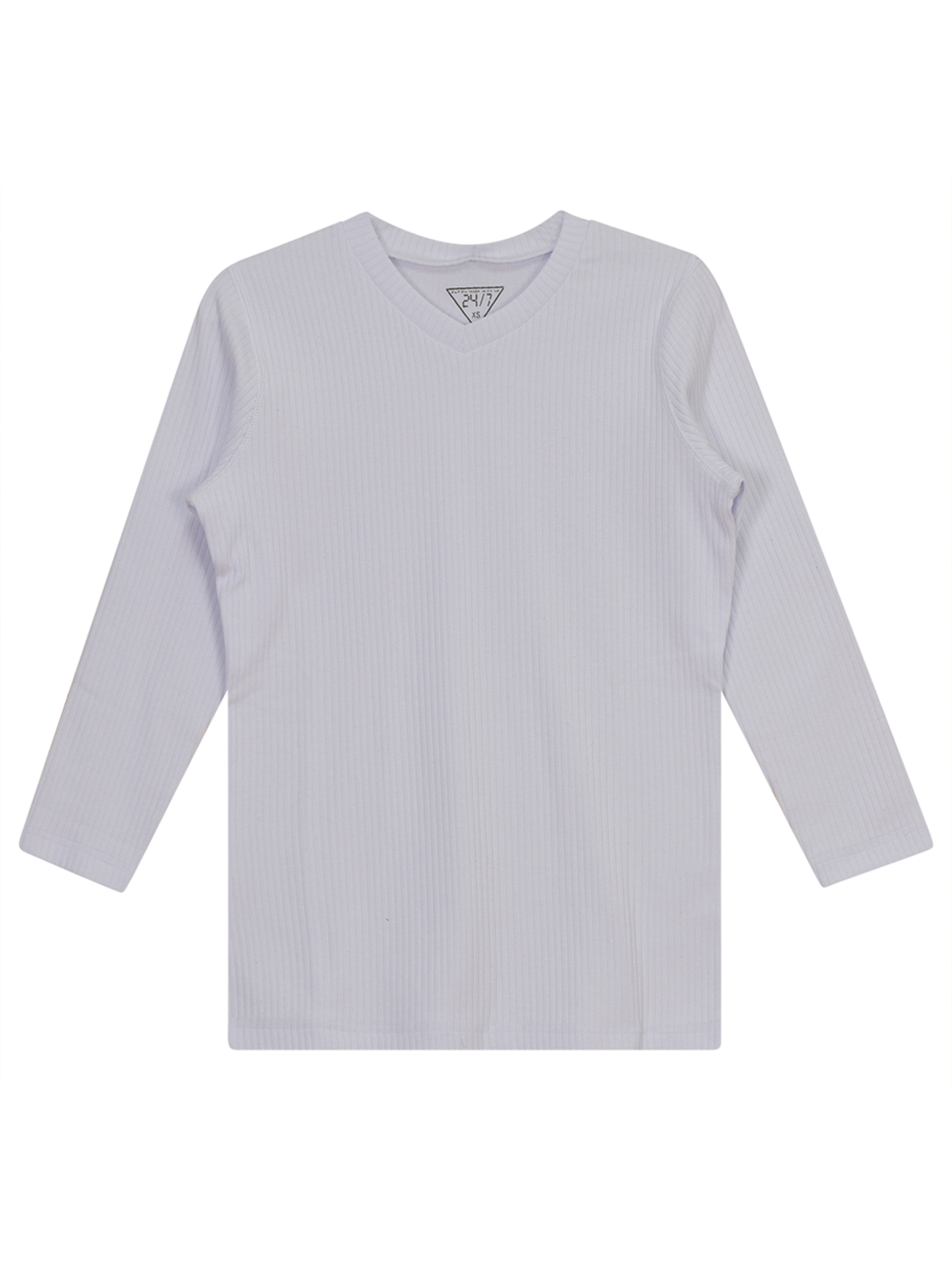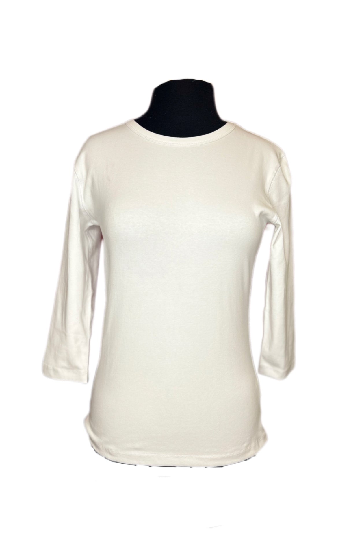 3/4 sleeve ribbed t-shirt with high v neck 95% Cotton 5% Spandex Machine wash cold inside out, hang dry