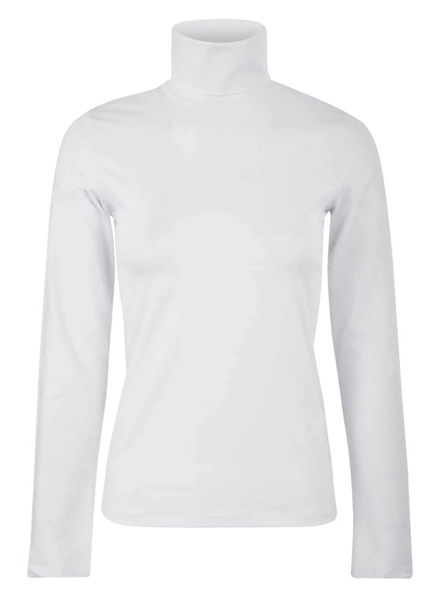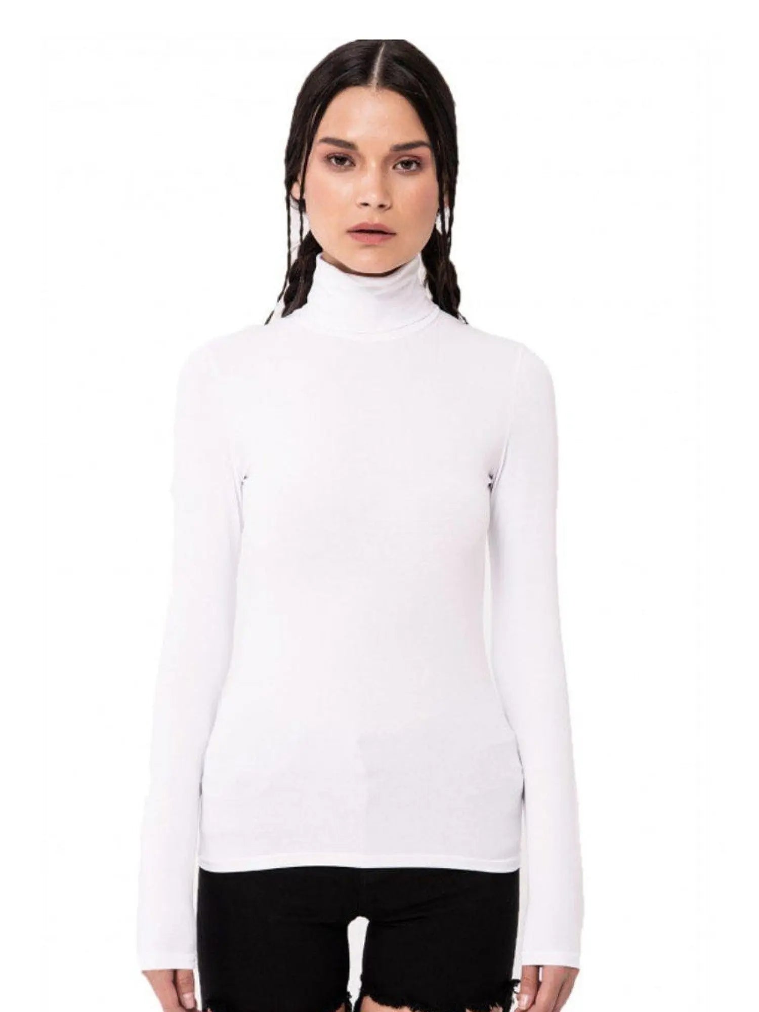 Long sleeve fitted cotton turtleneck, runs small in sizing. 90% Cotton, 10% Elastane