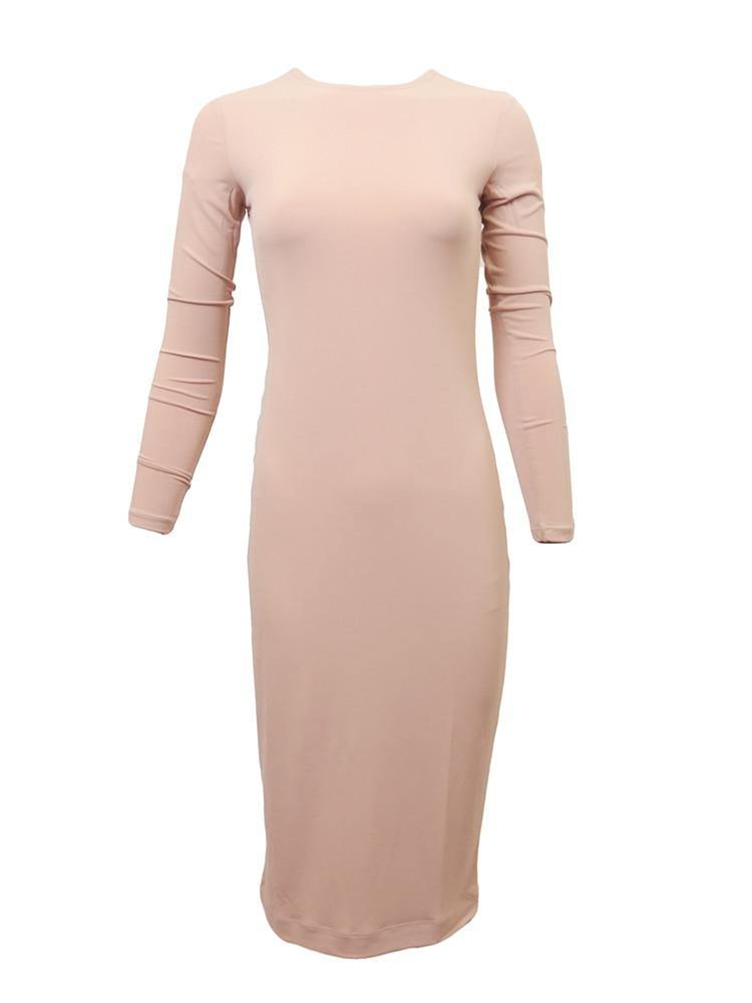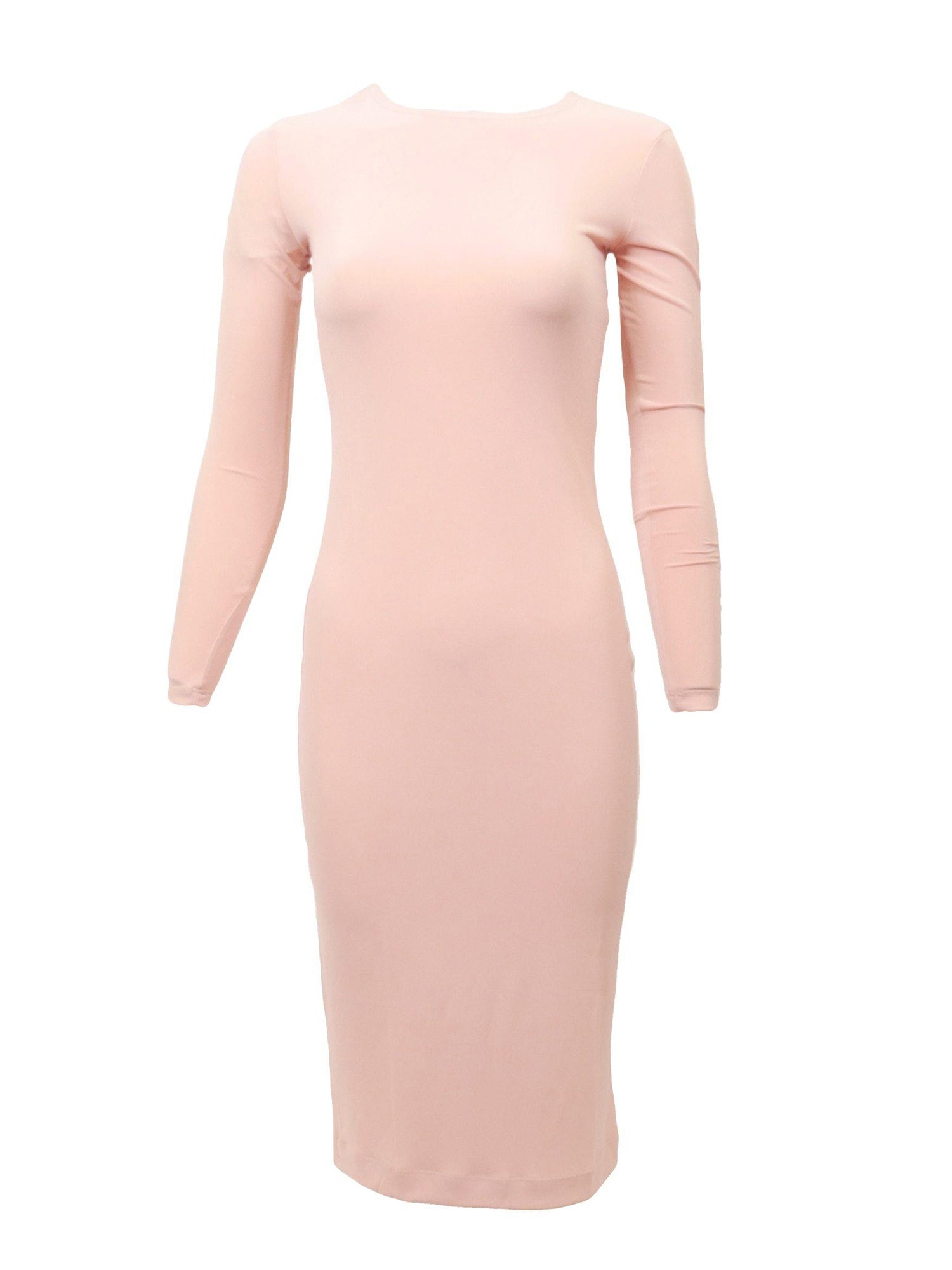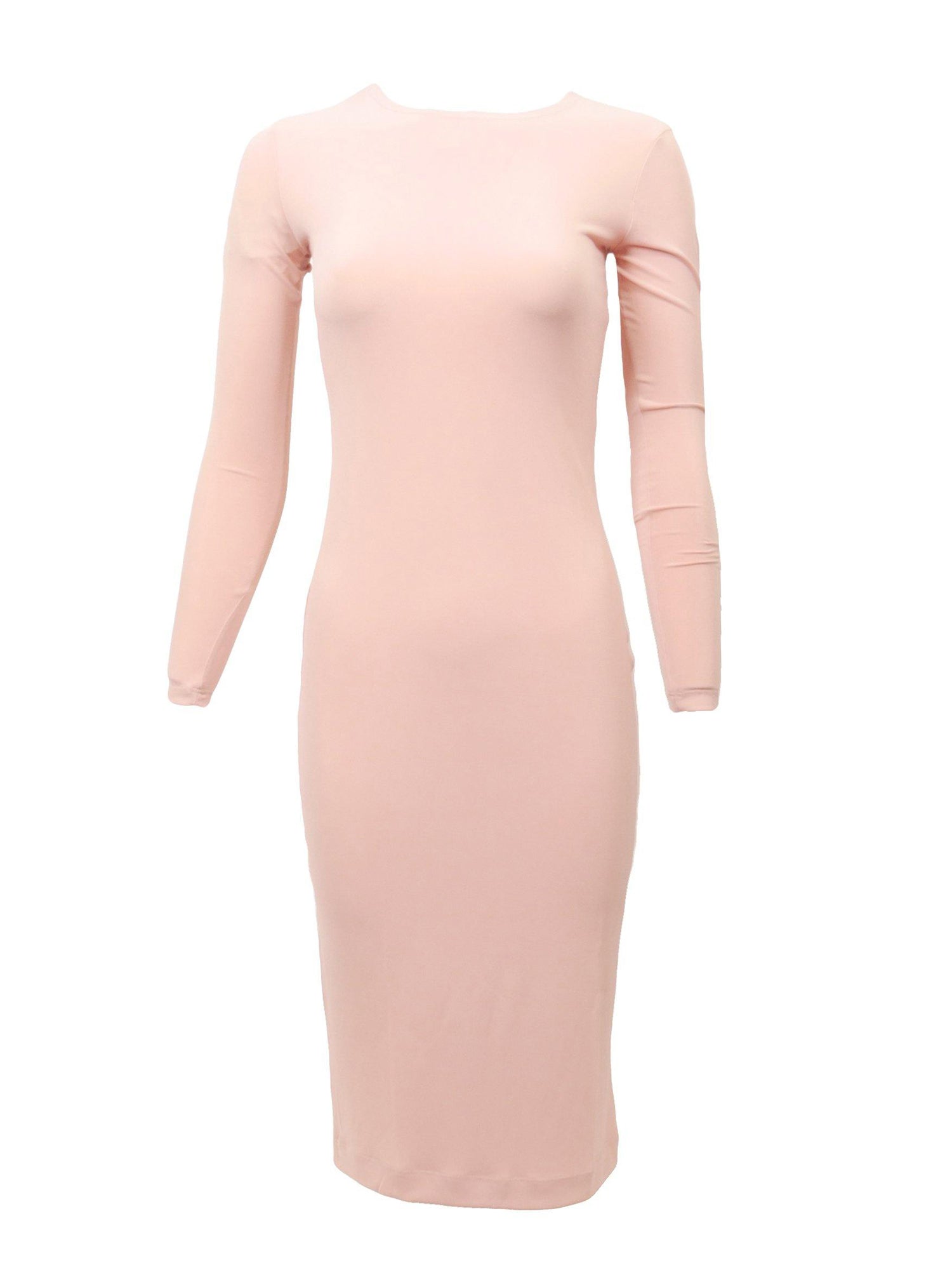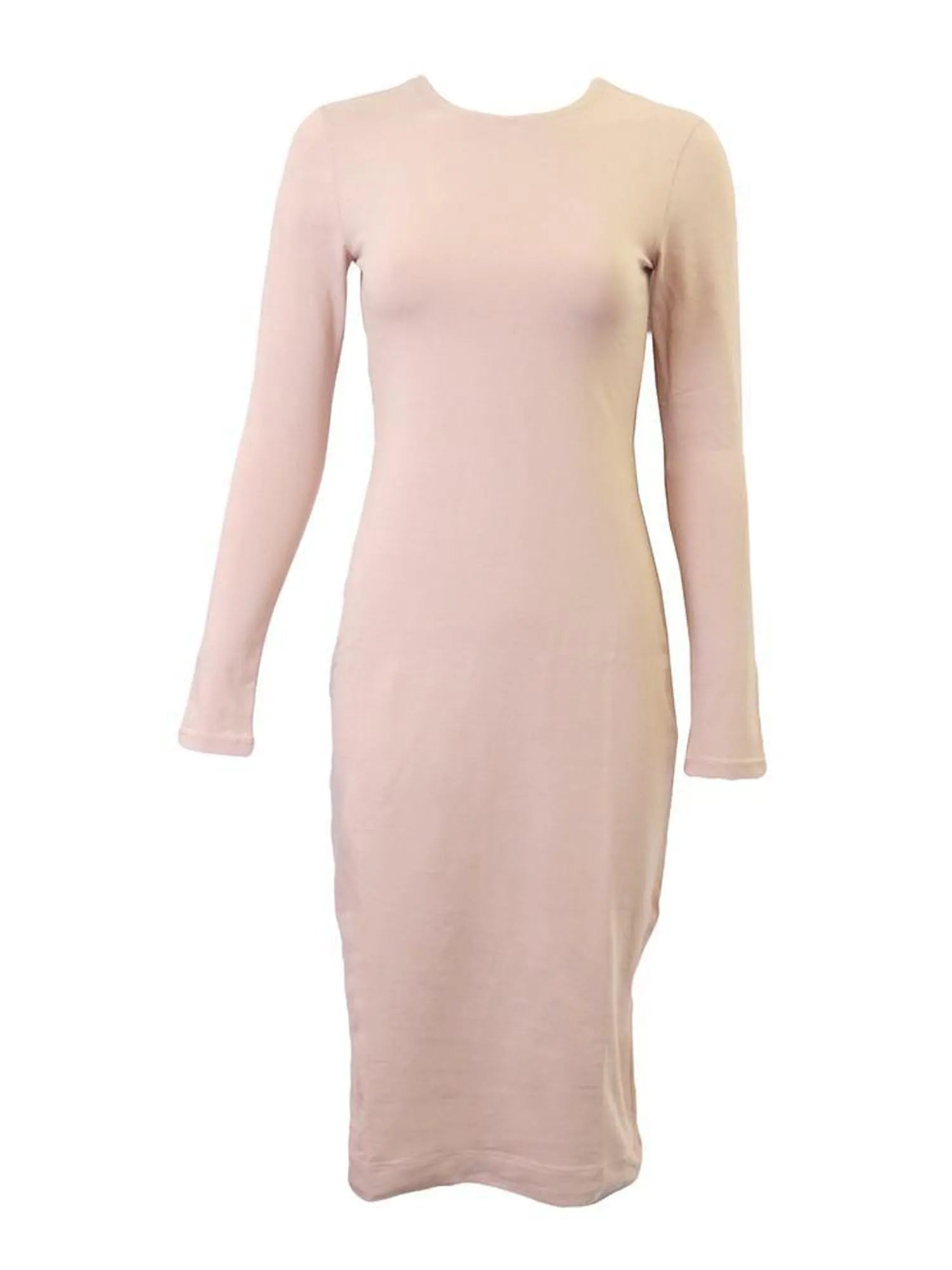 Nylon material pencil dress, long sleeve, crewneck. Runs fitted. Great for layering or as a comfy dress. Style: 7739