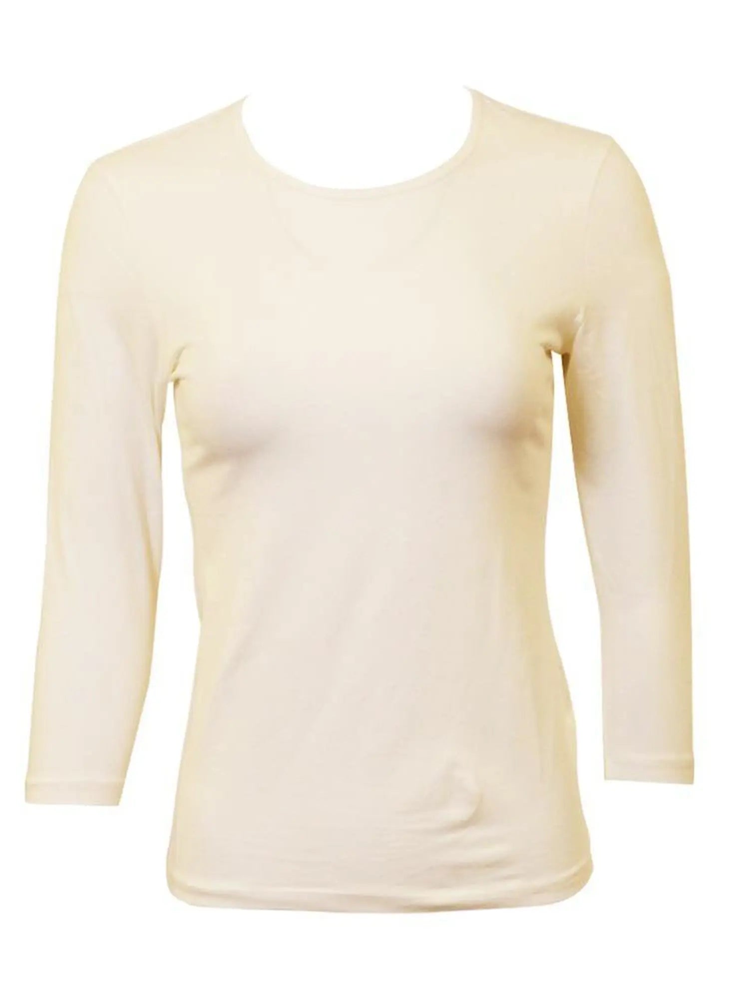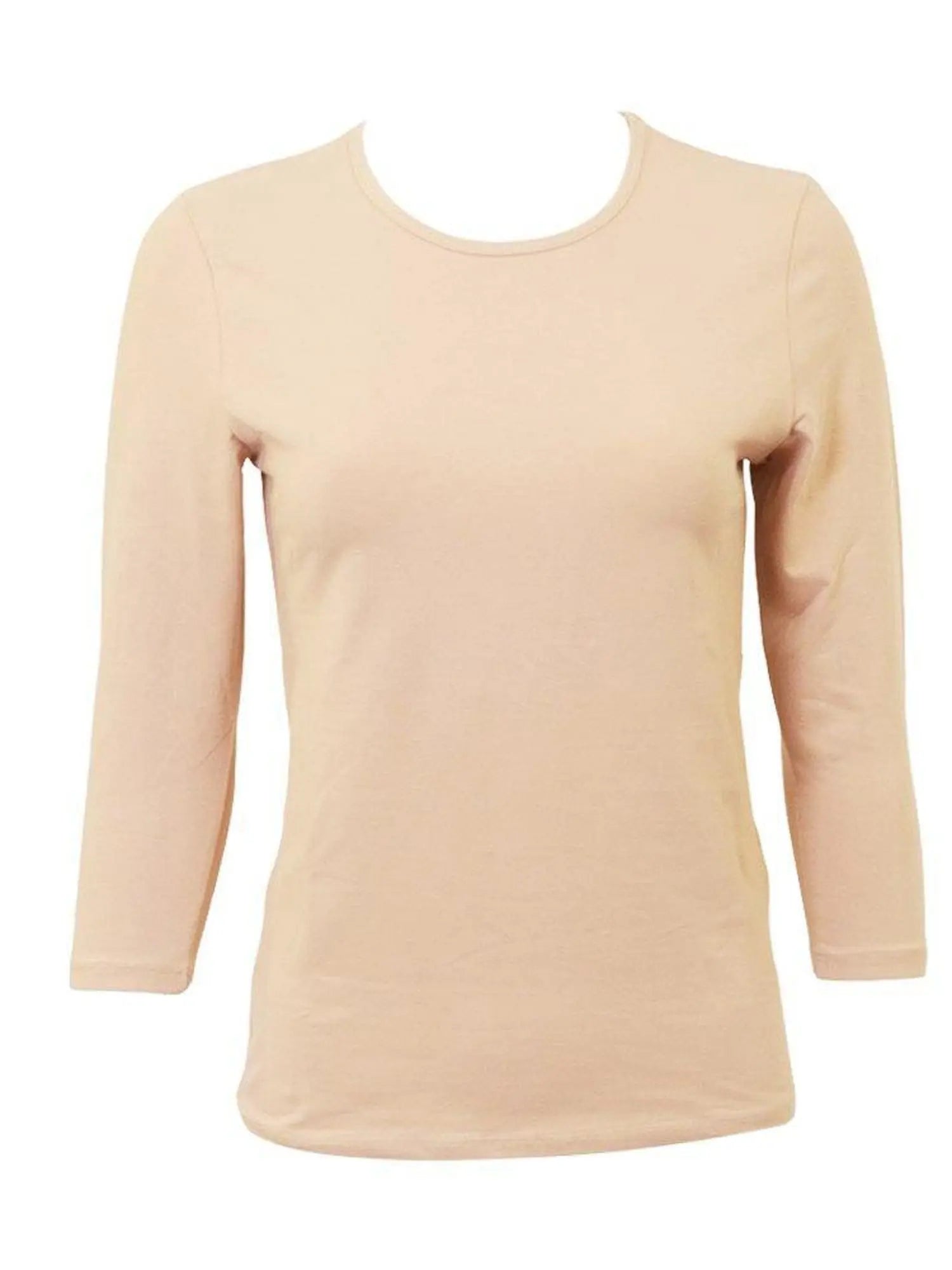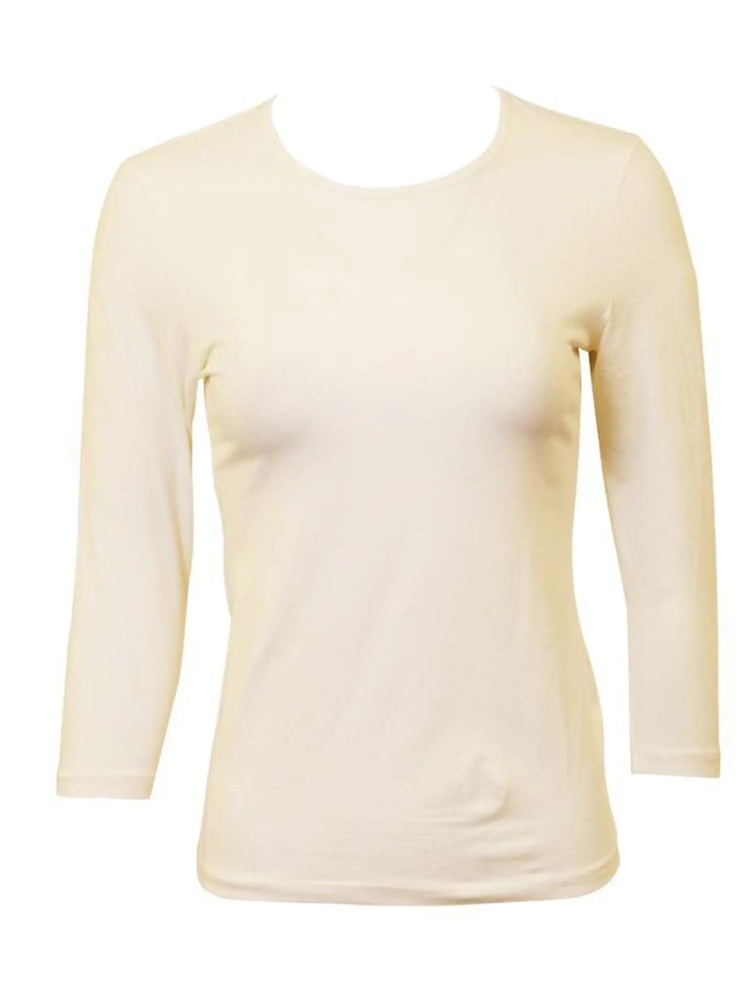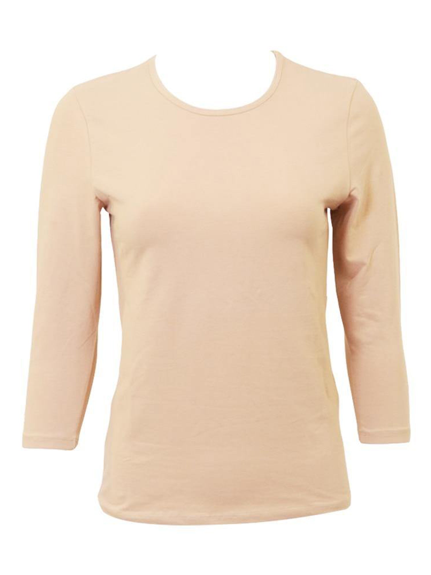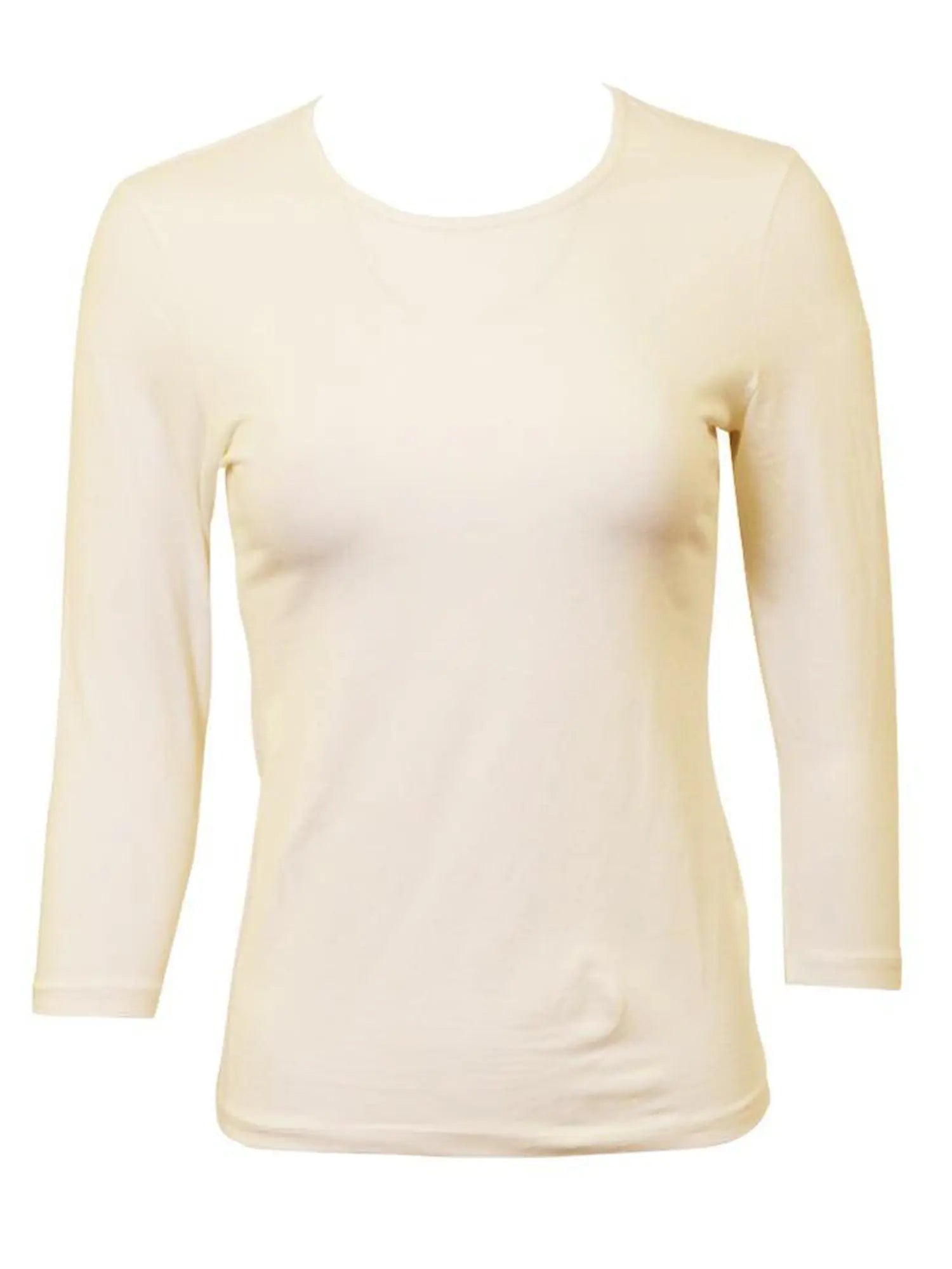 Soft modal fabric, crewneck, three-quarter sleeve top. Great for layering or can be worn as a t-shirt. Style: 26556