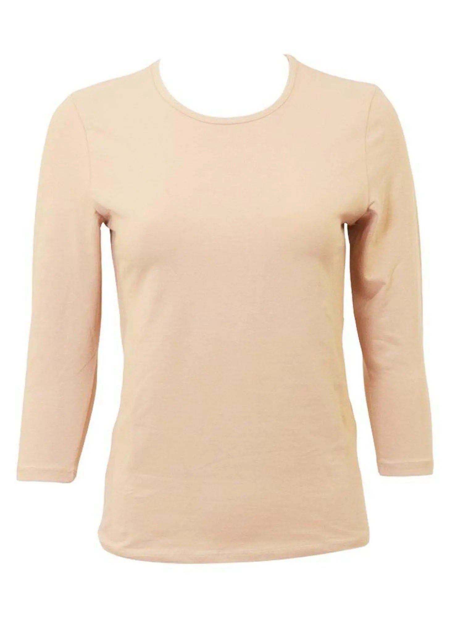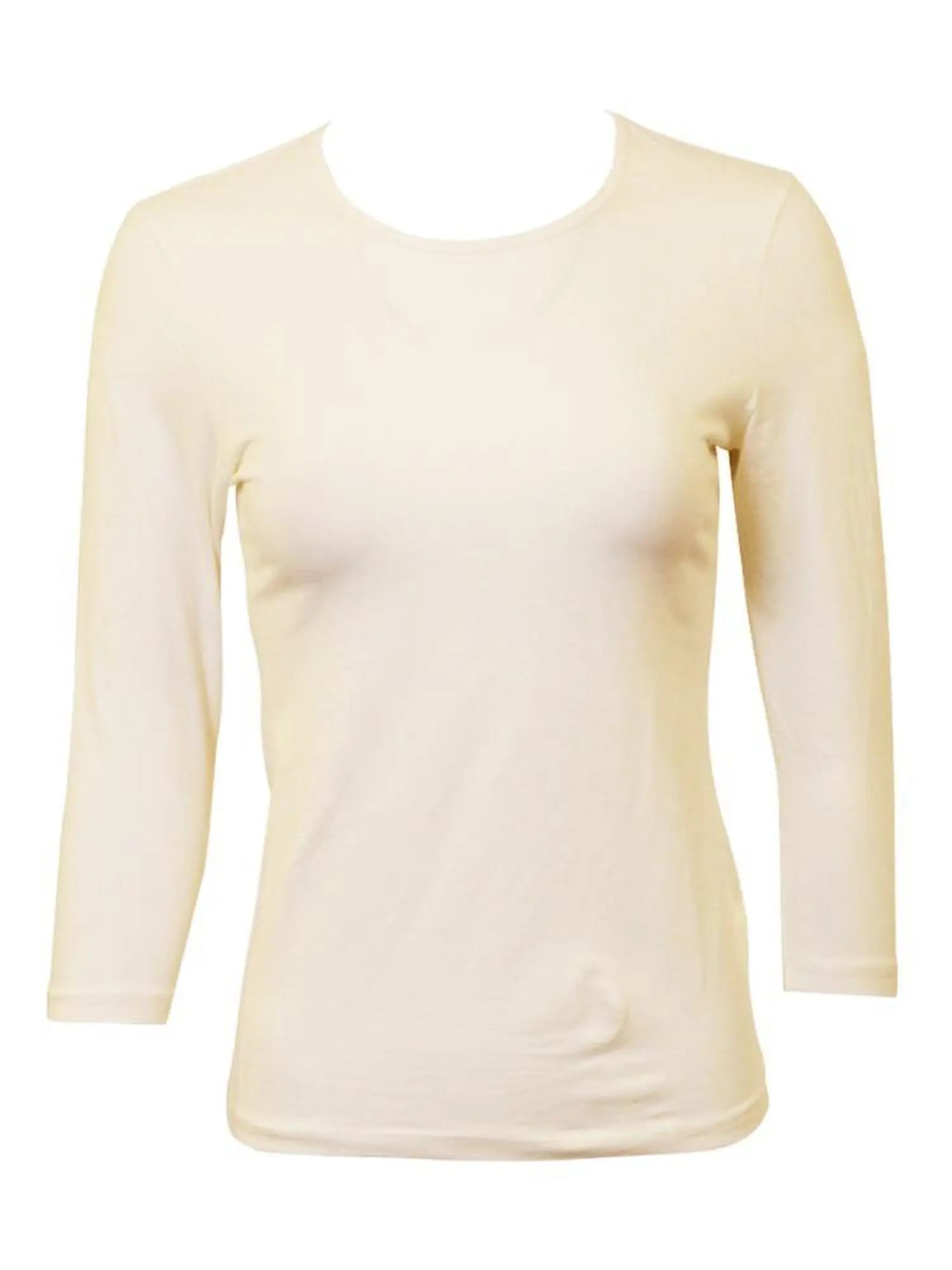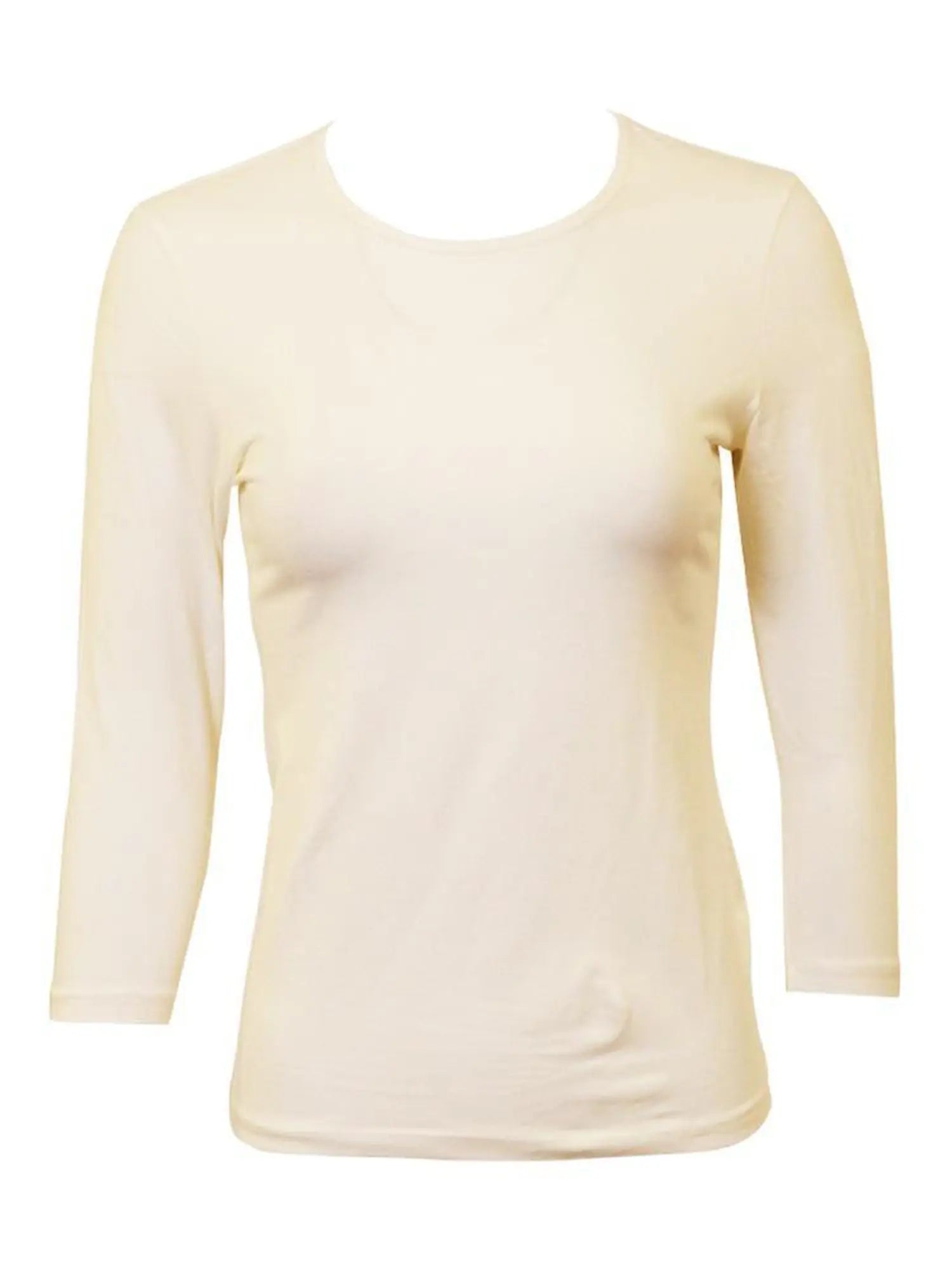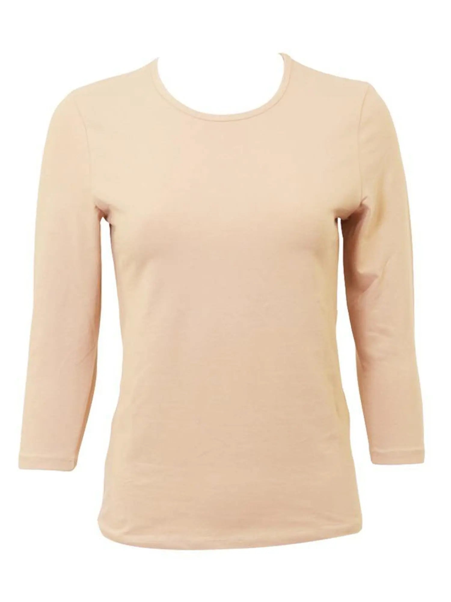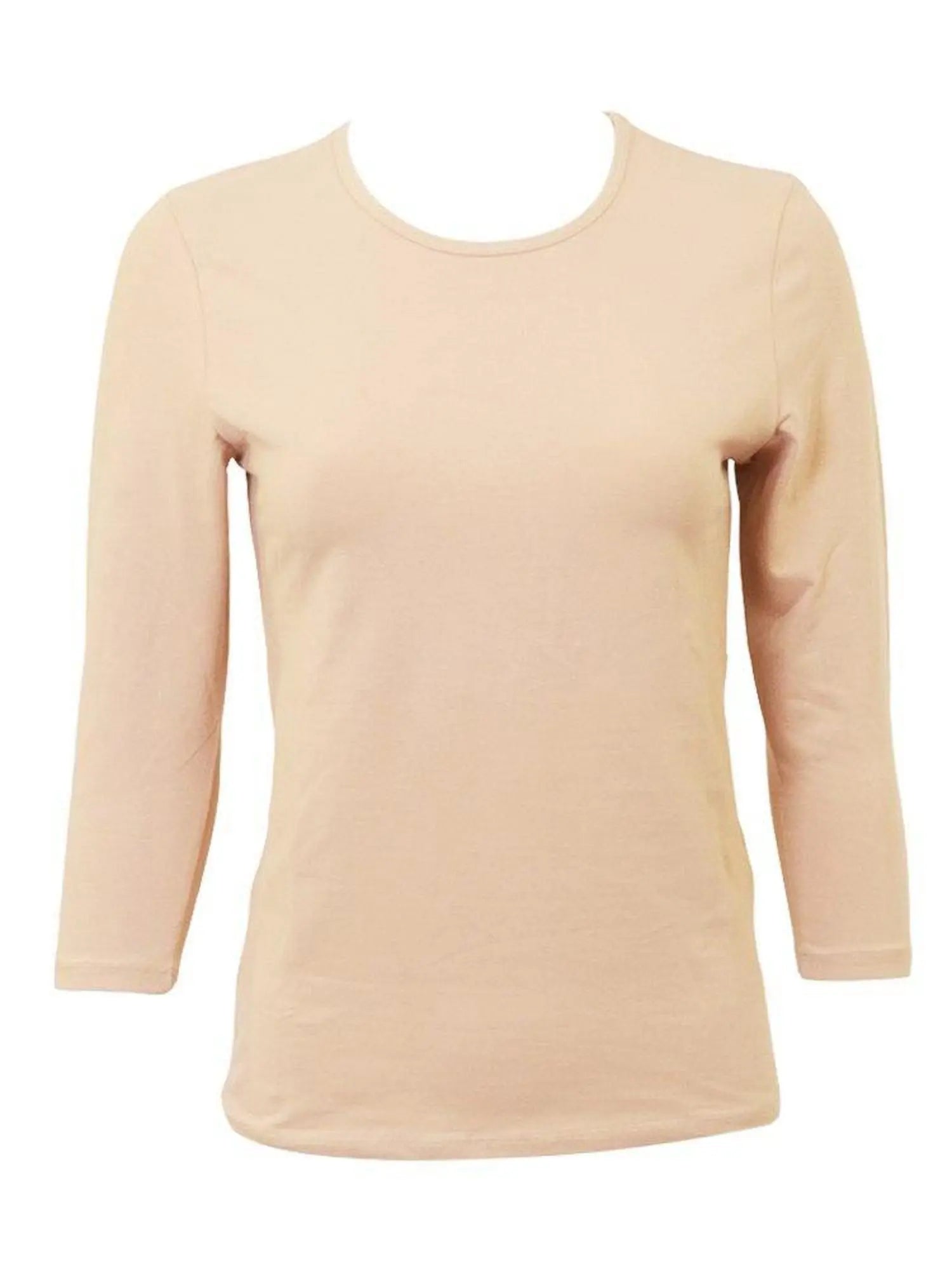 Soft modal fabric, crewneck, three-quarter sleeve top. Great for layering or can be worn as a t-shirt. Style: 26556