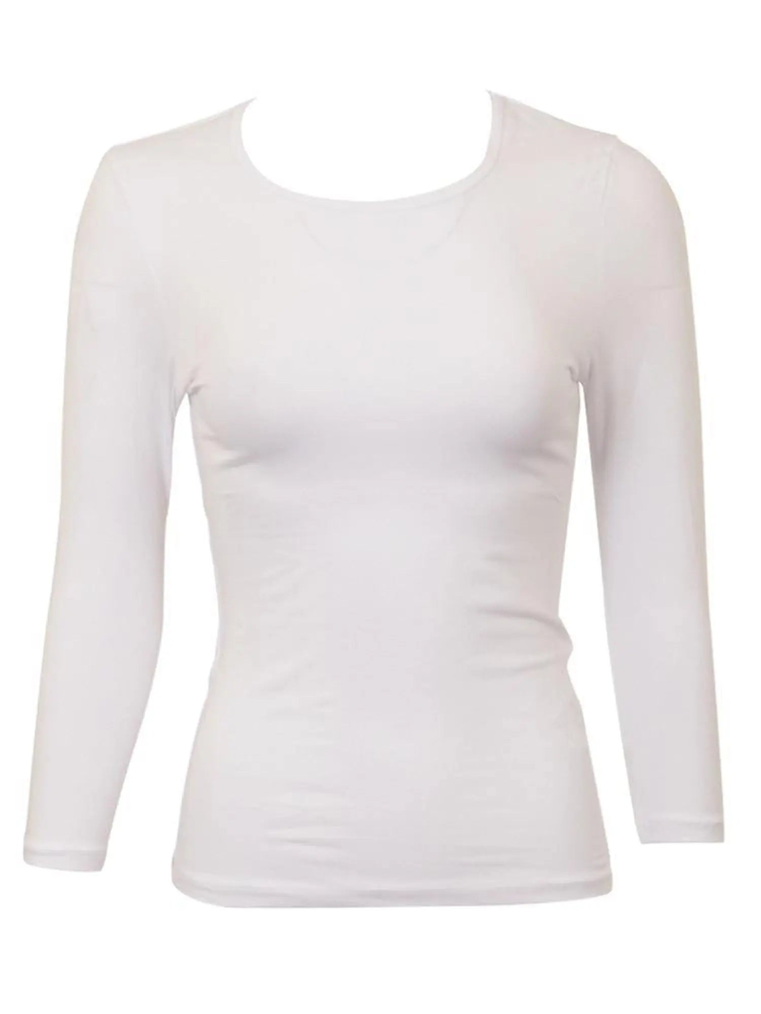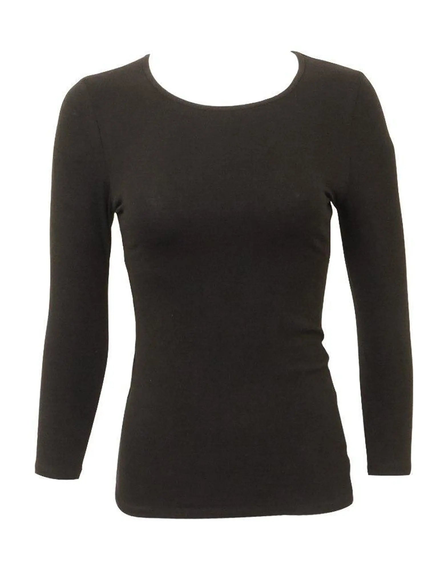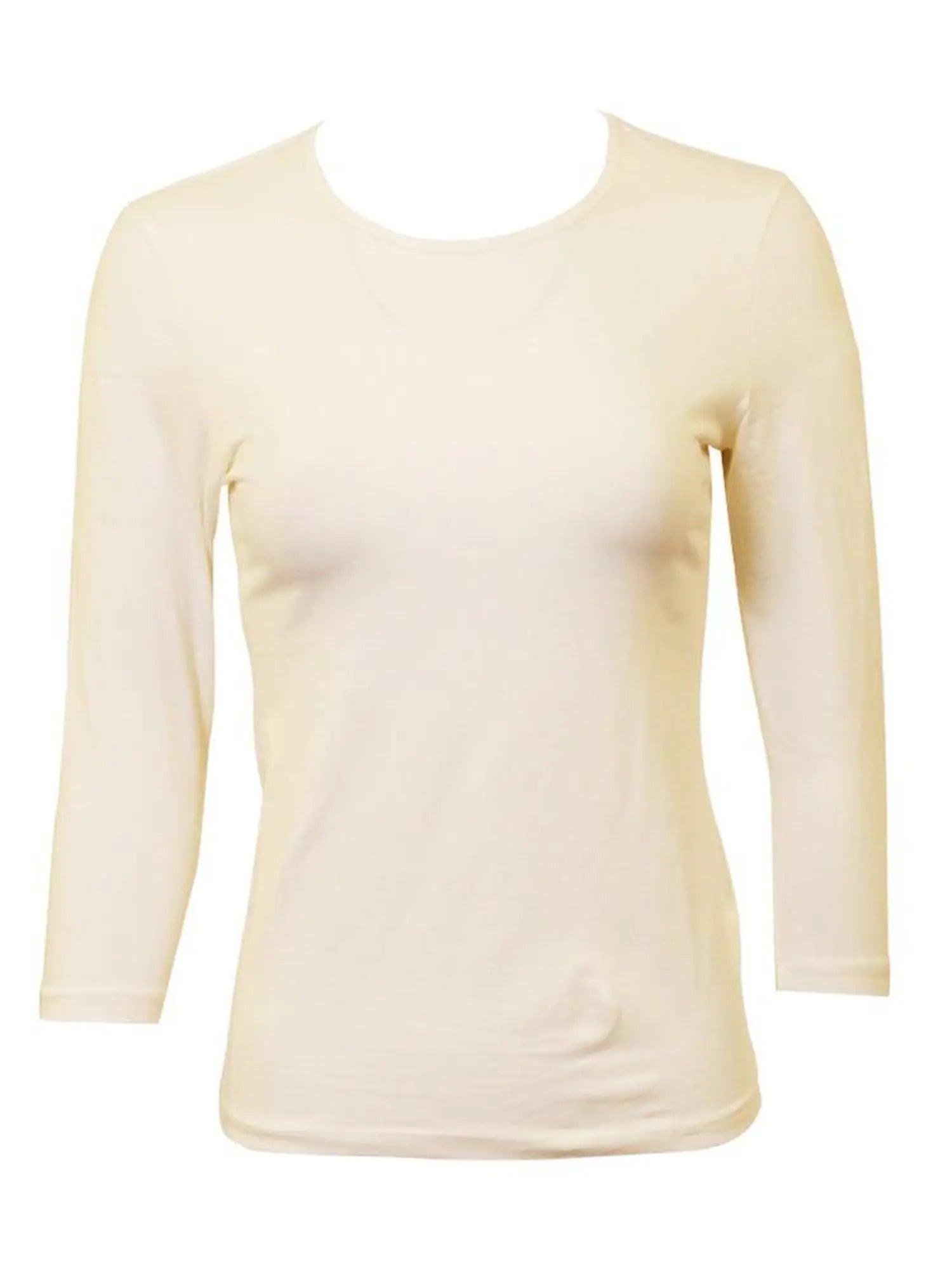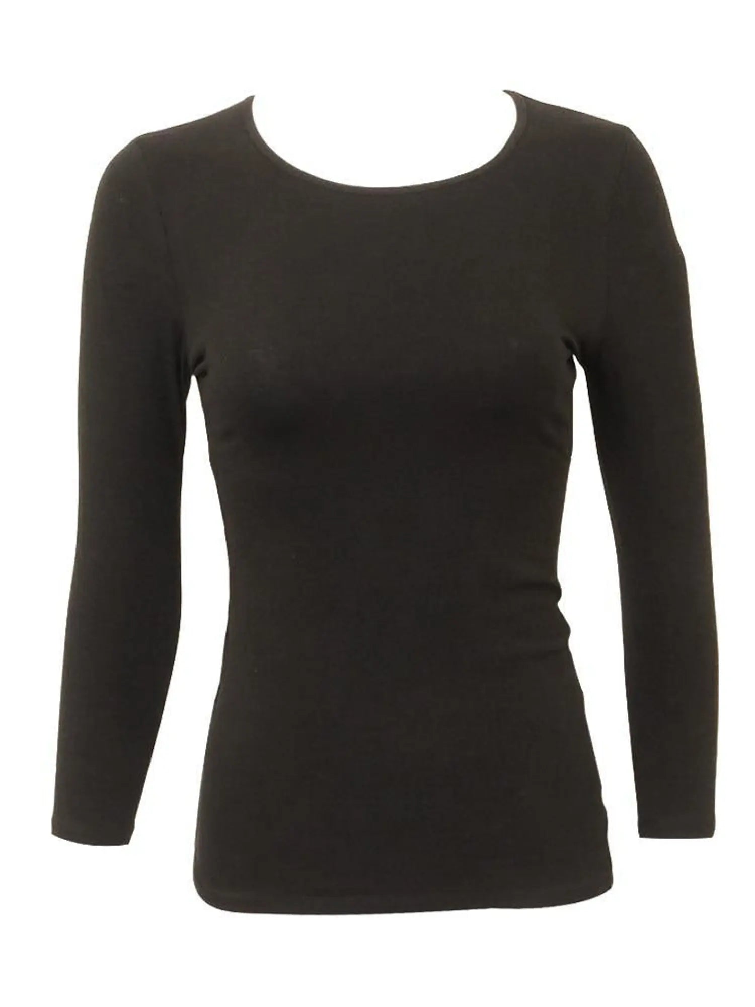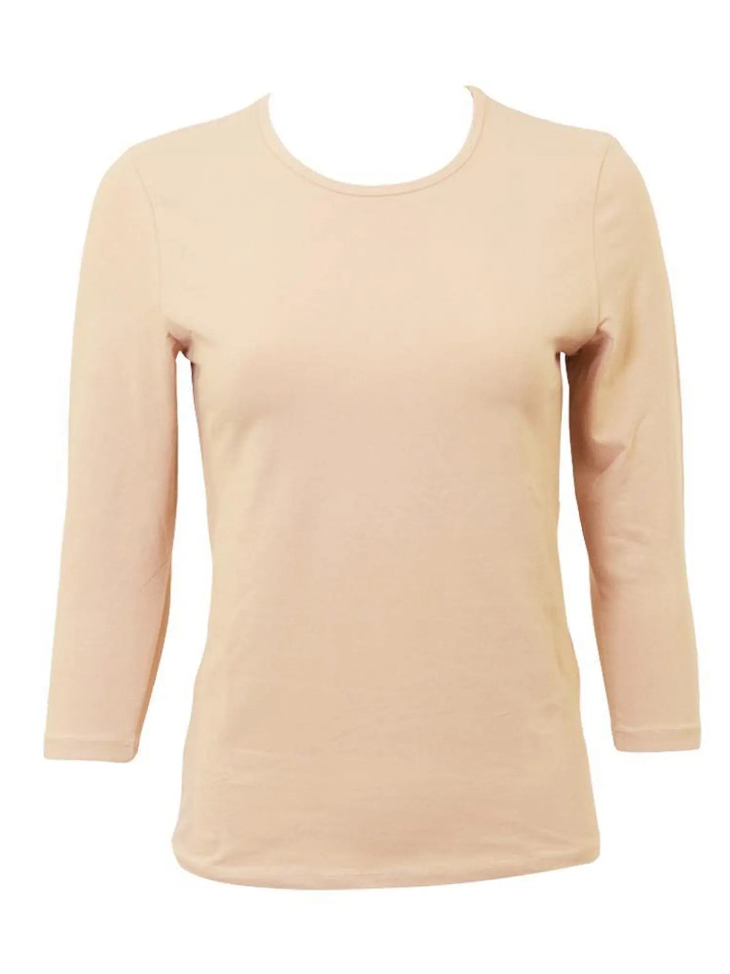 Soft modal fabric, crewneck, three-quarter sleeve top. Great for layering or can be worn as a t-shirt. Style: 26556
