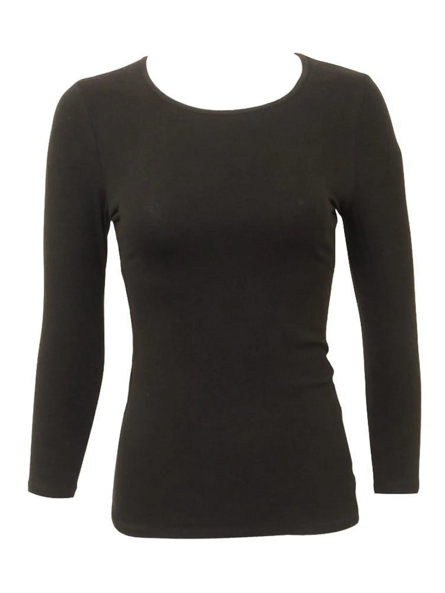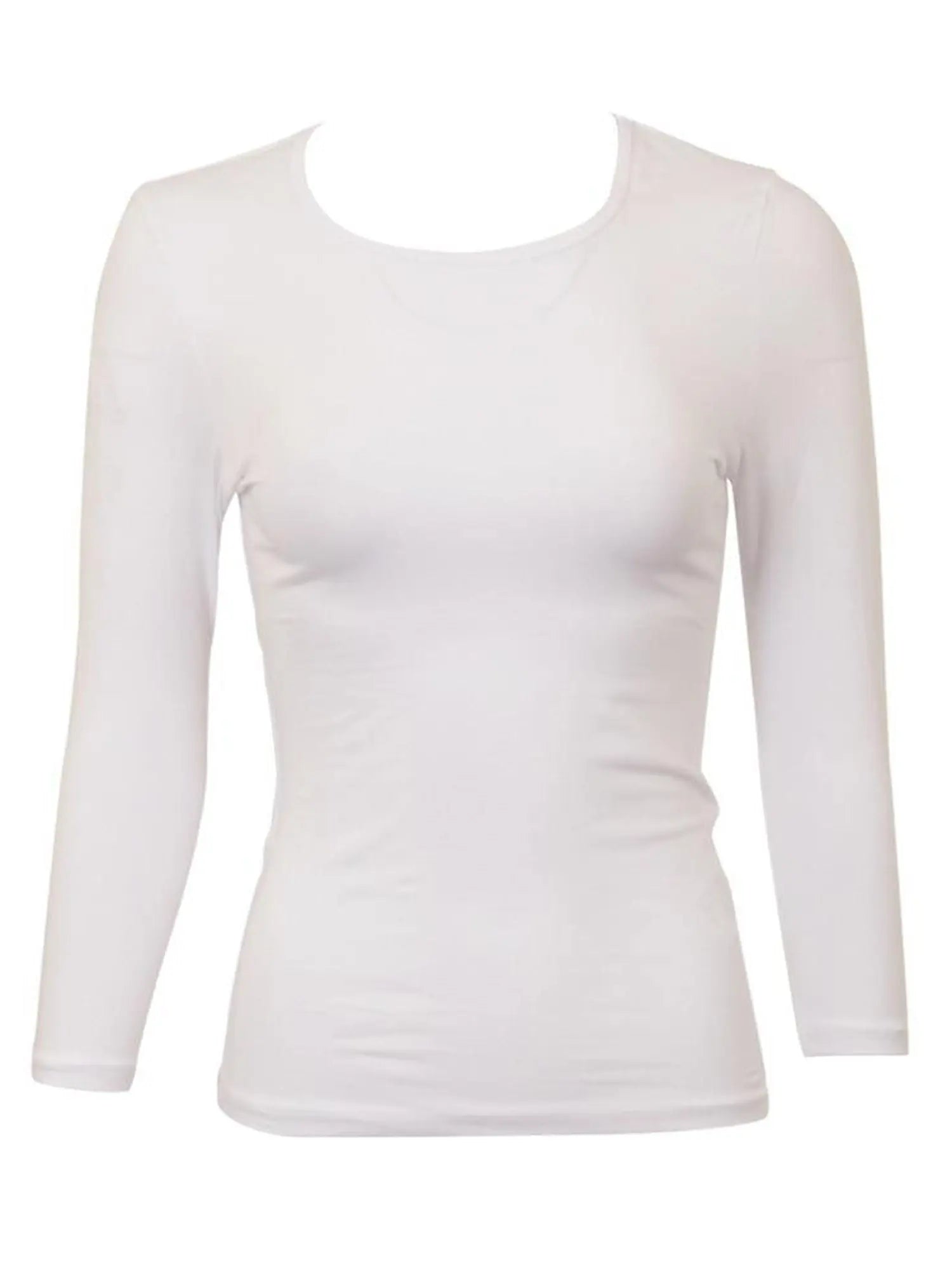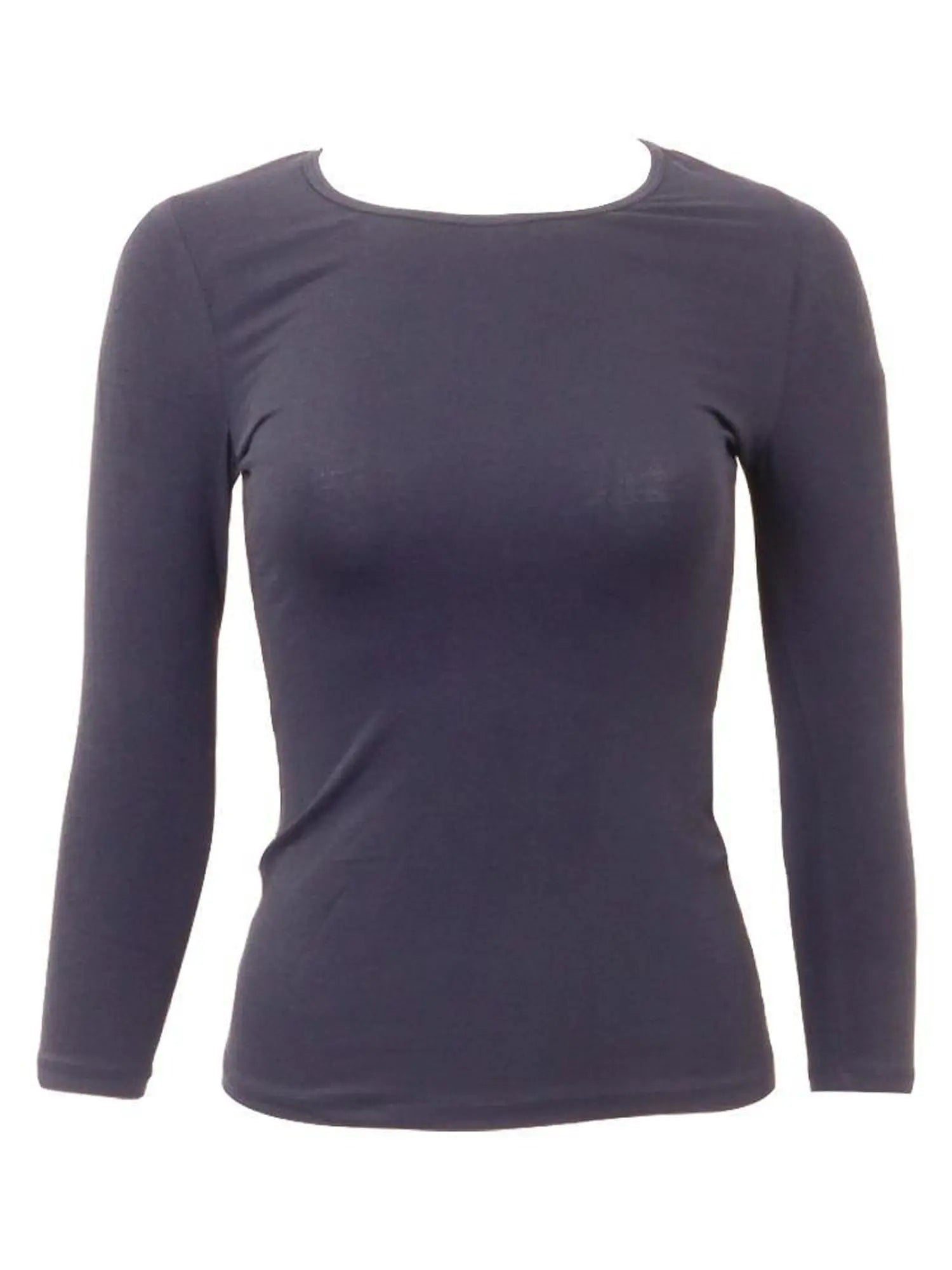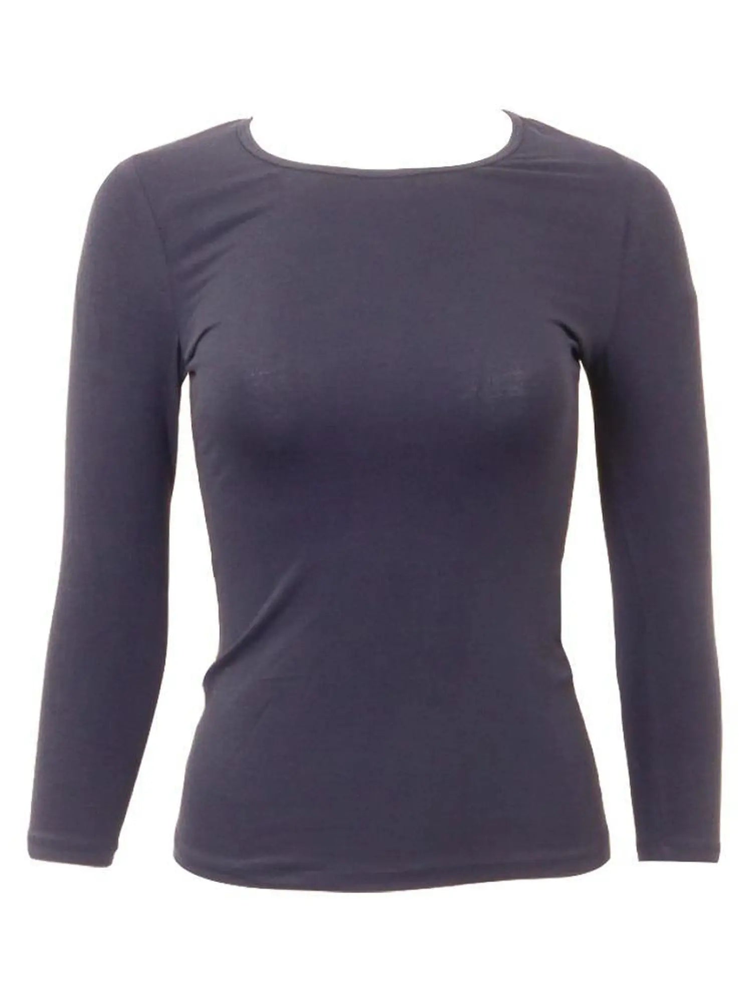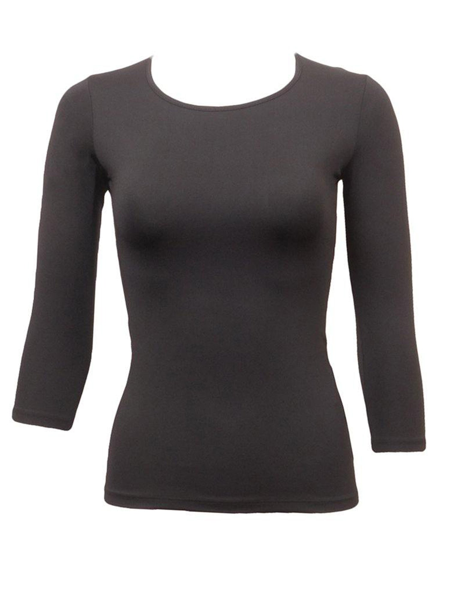 Soft modal fabric, crewneck, three-quarter sleeve top. Great for layering or can be worn as a t-shirt. Style: 26556