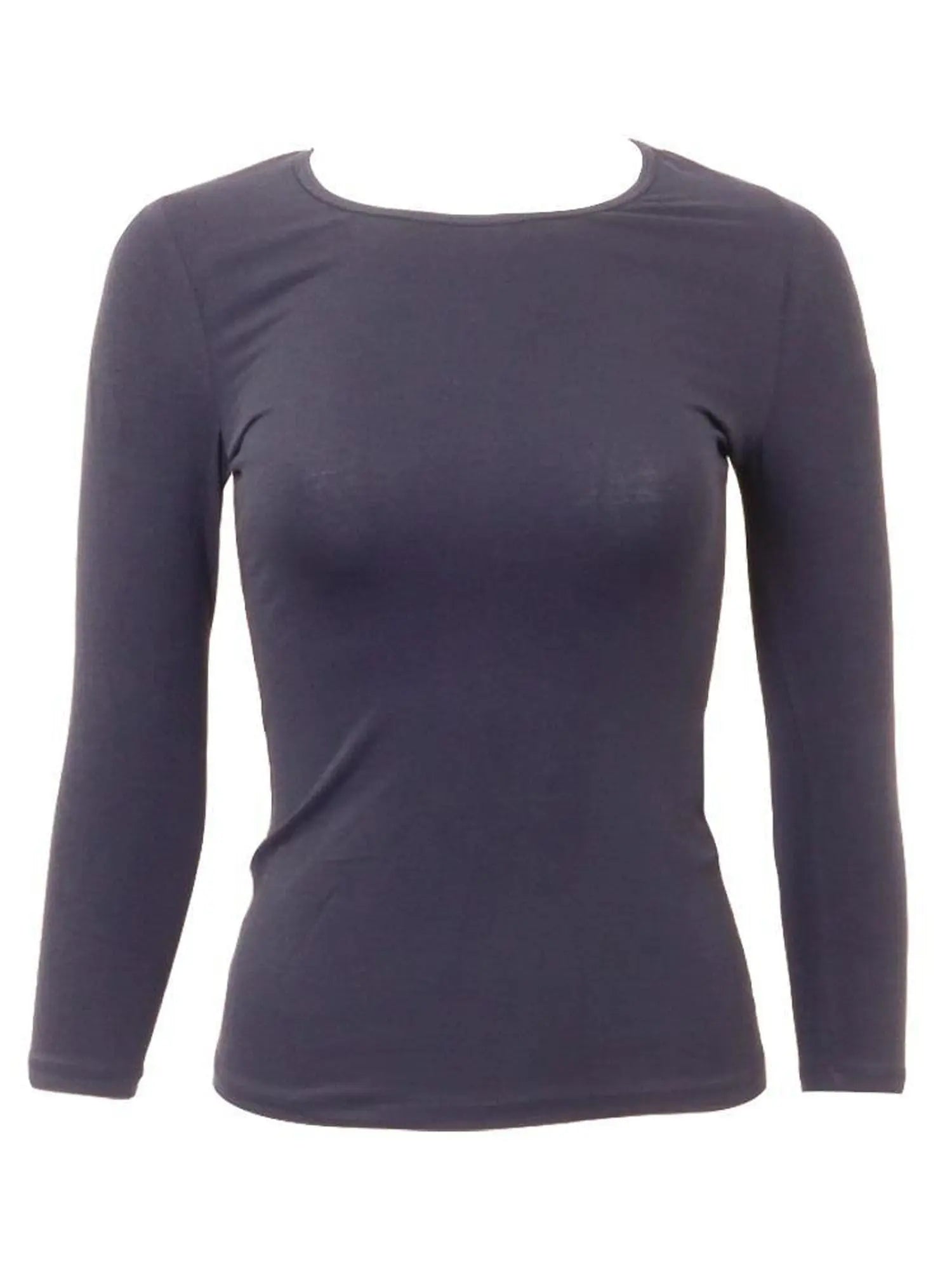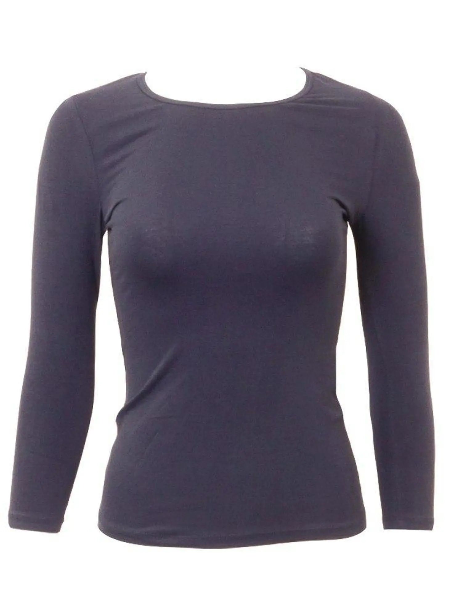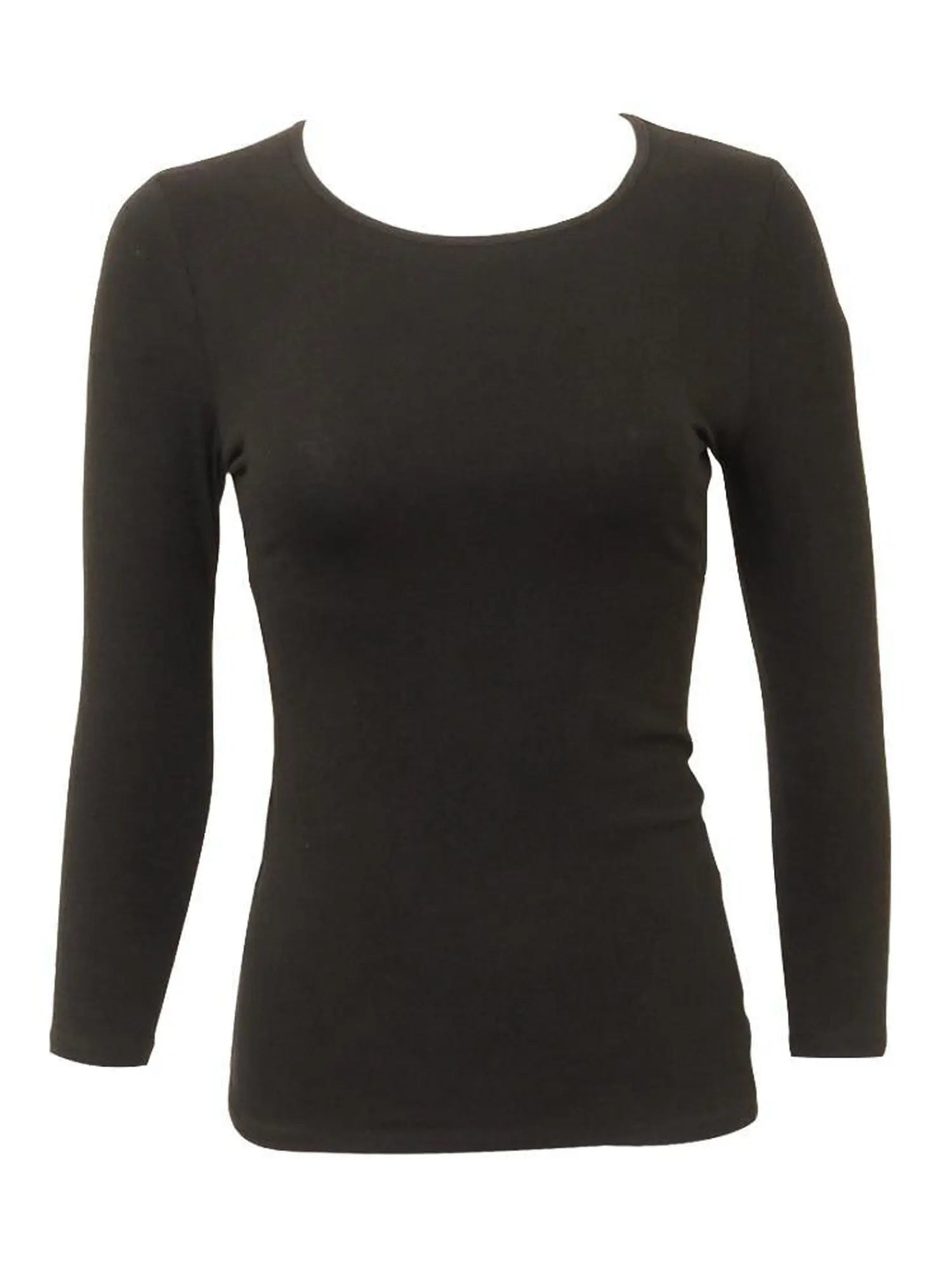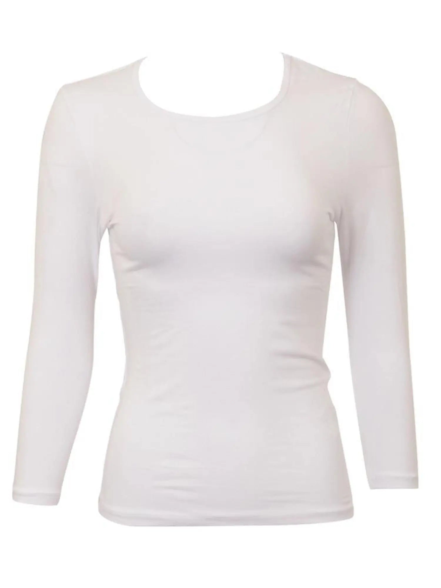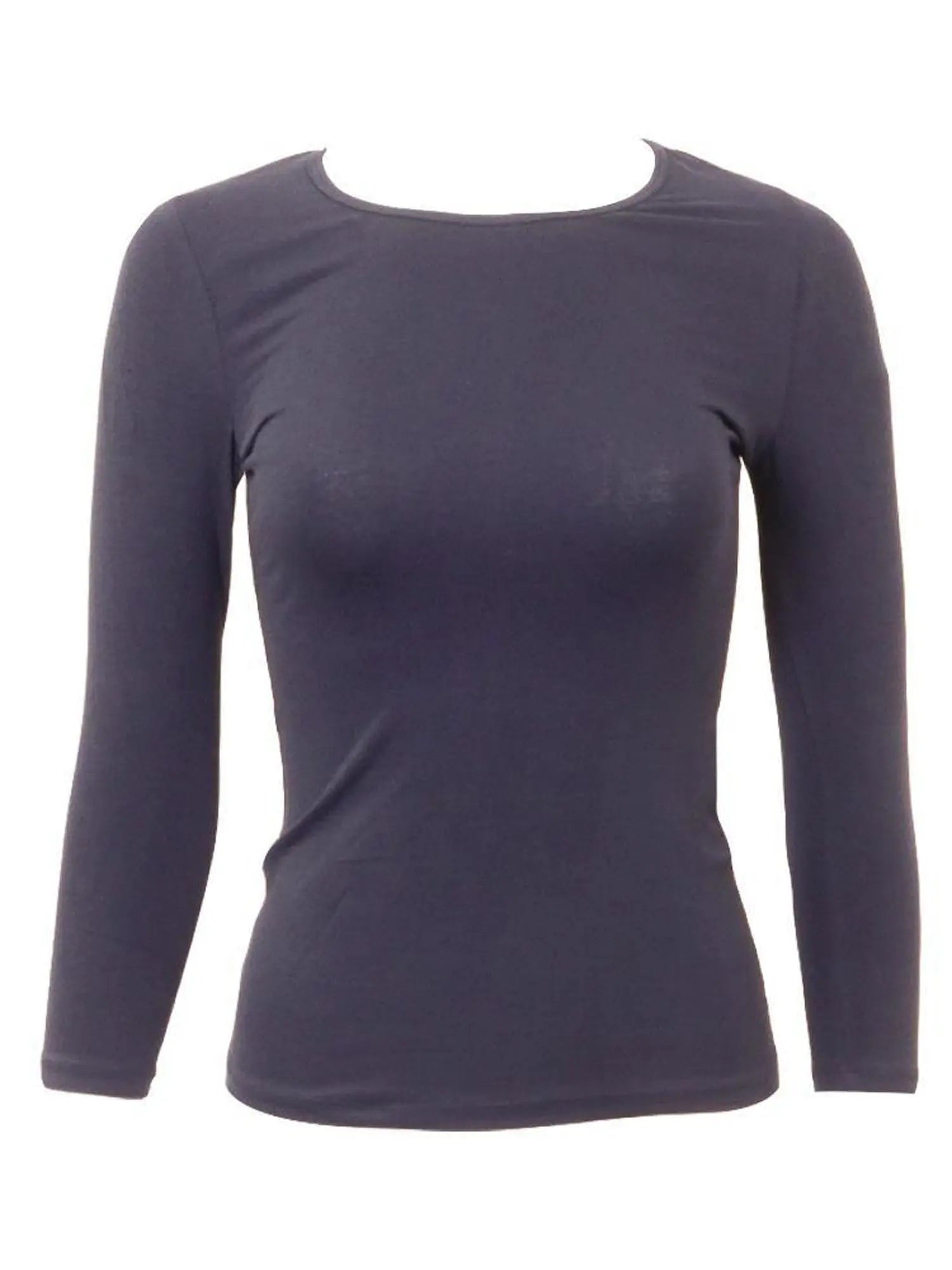 Soft modal fabric, crewneck, three-quarter sleeve top. Great for layering or can be worn as a t-shirt. Style: 26556