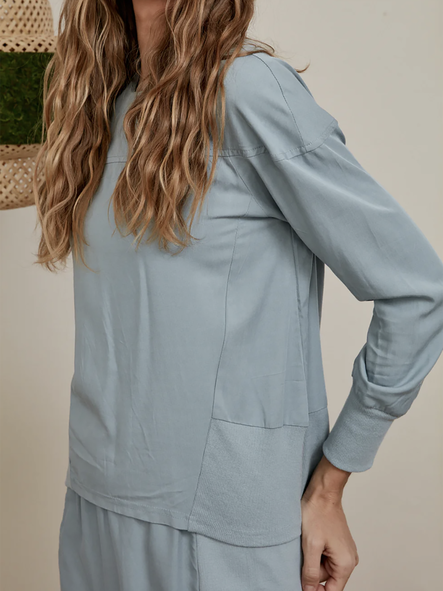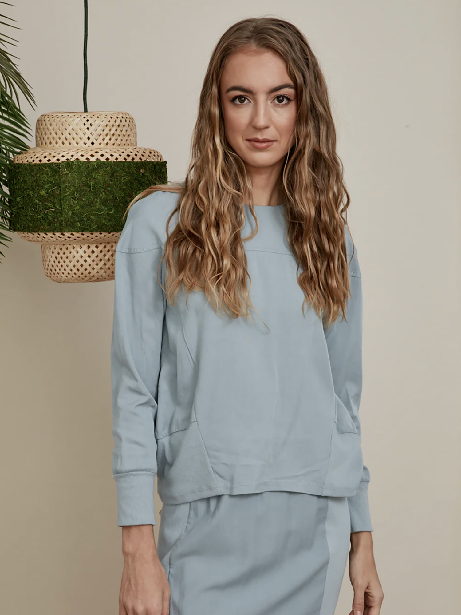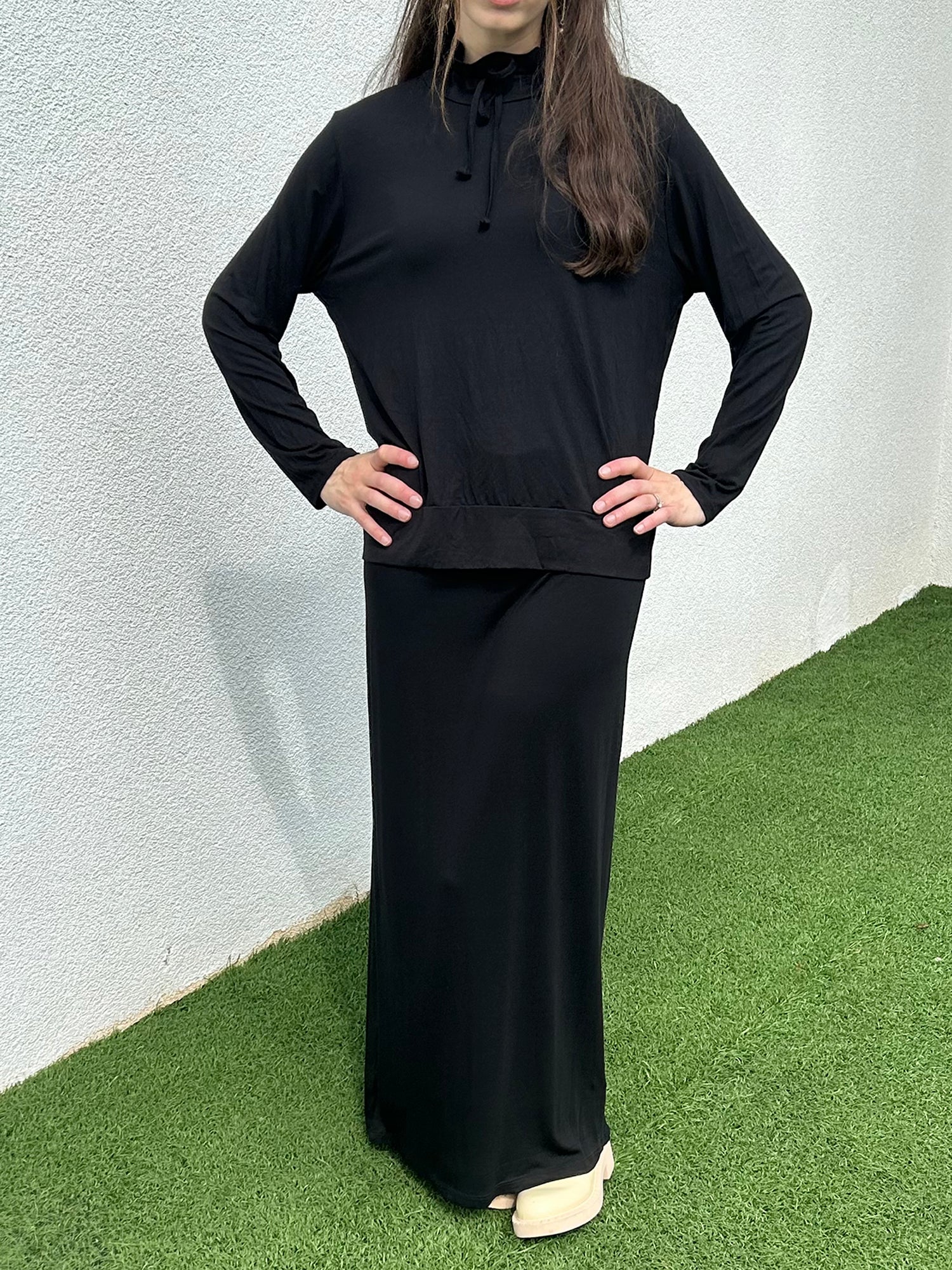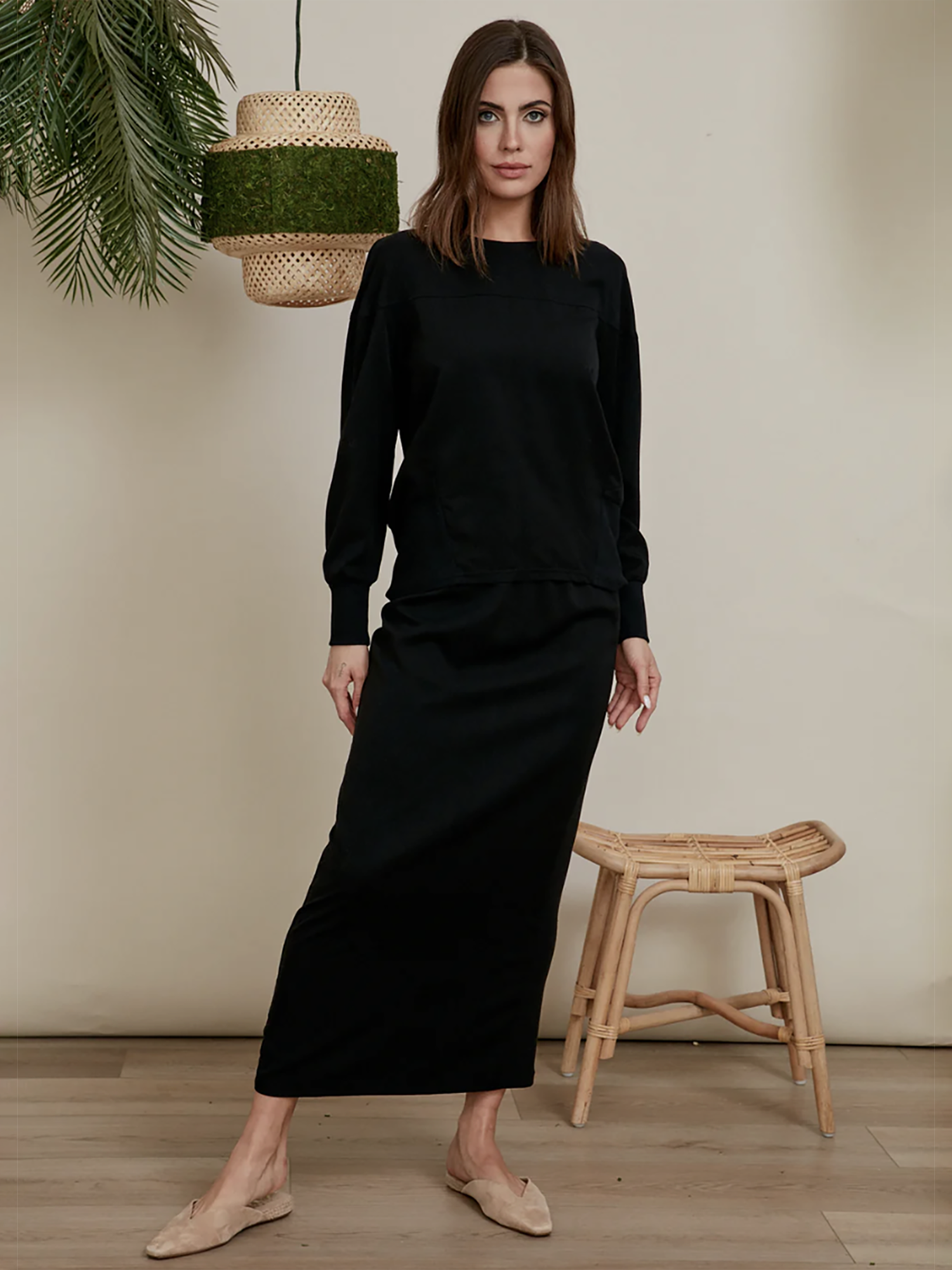 Loose-fit long sleeve top with side slits Matching skirt available 93% Viscose 7% Elastane