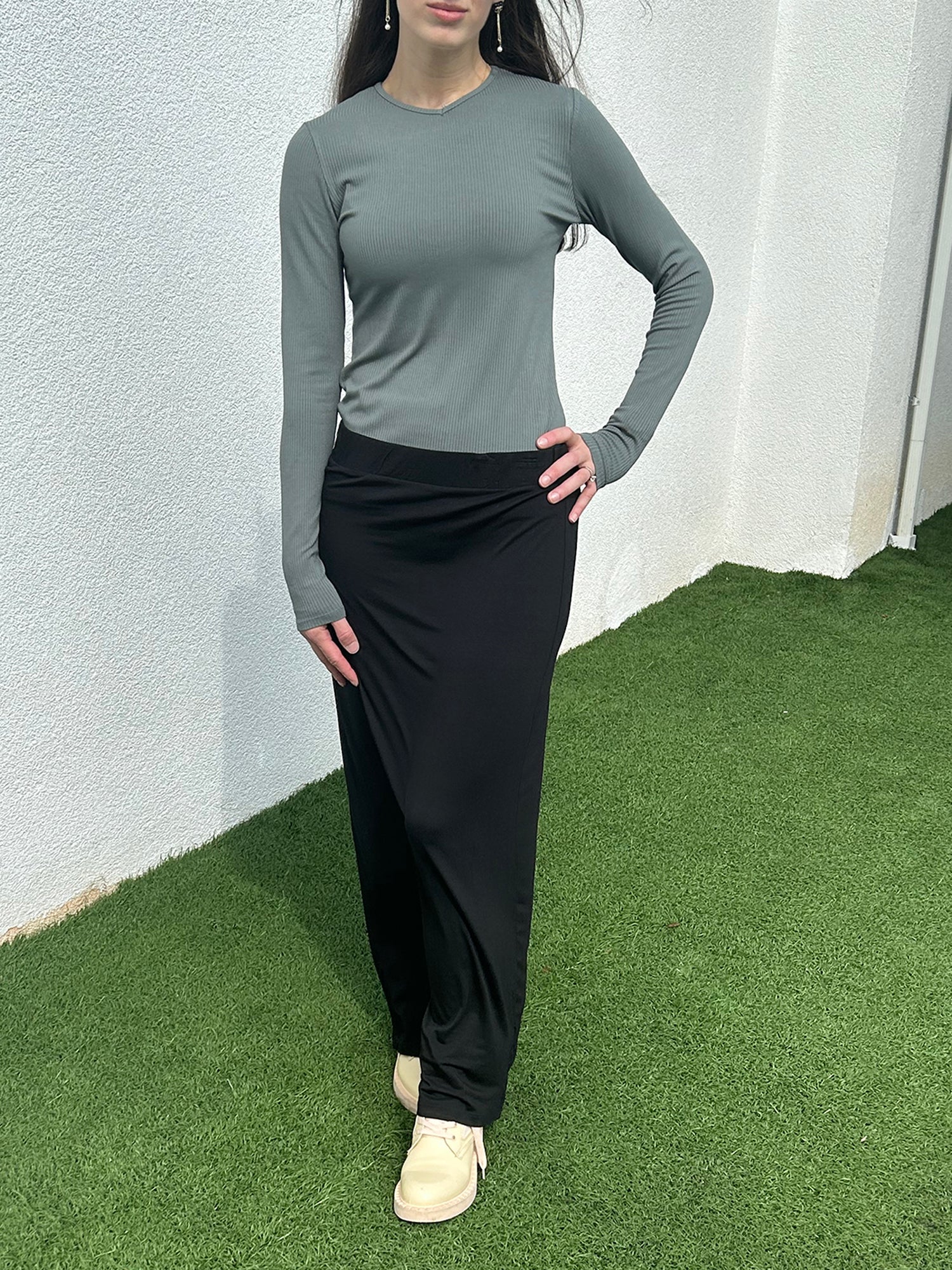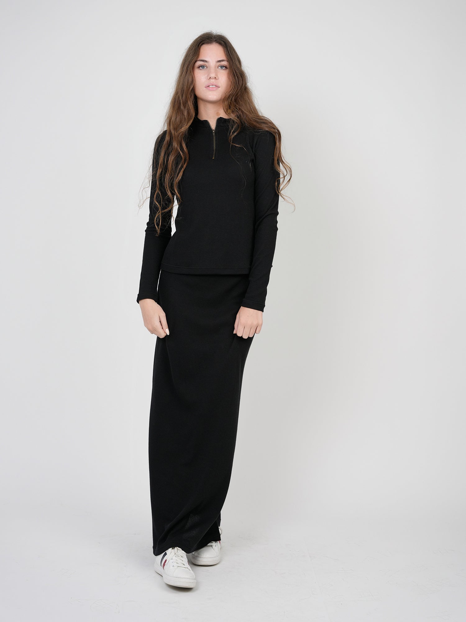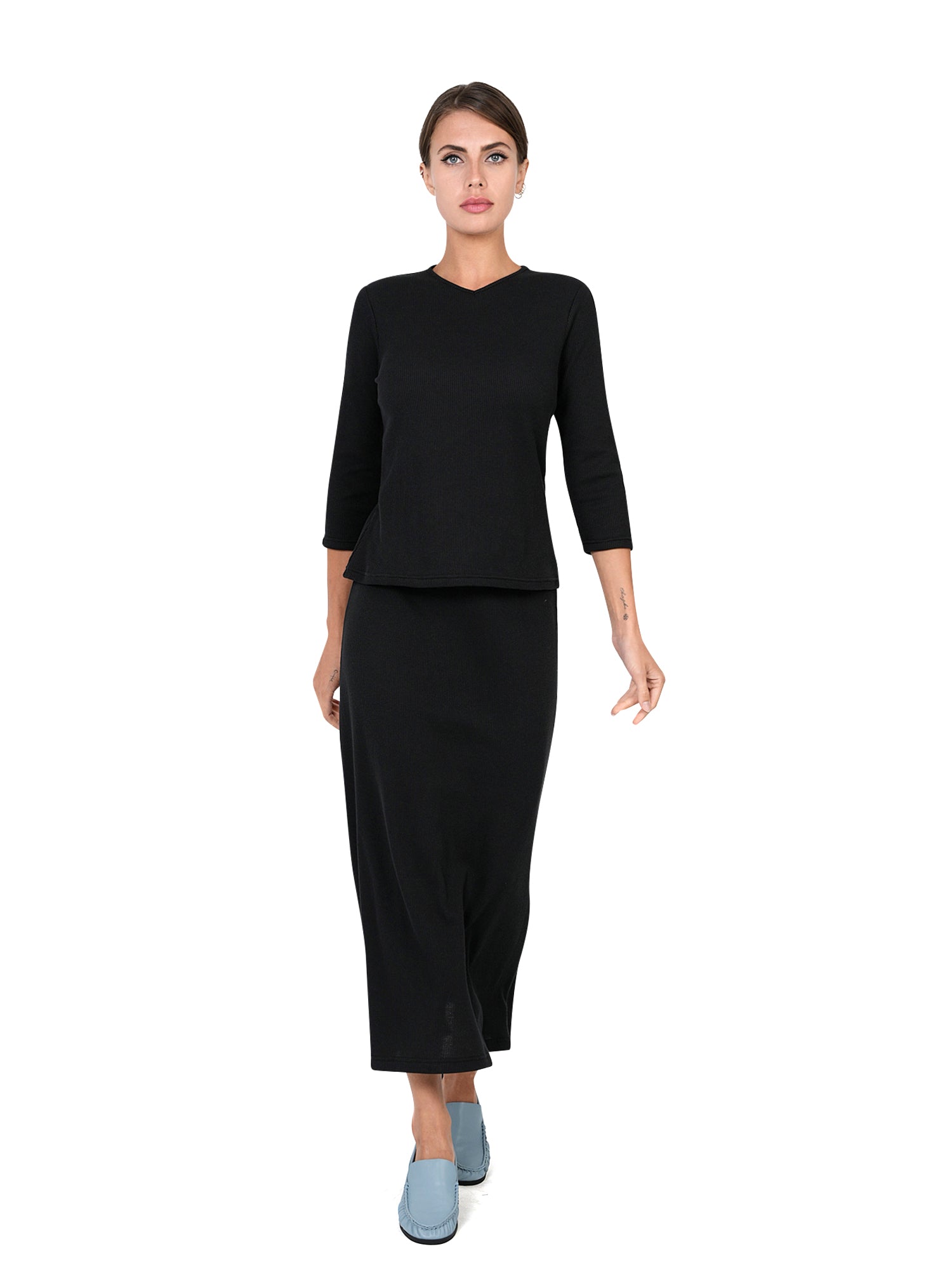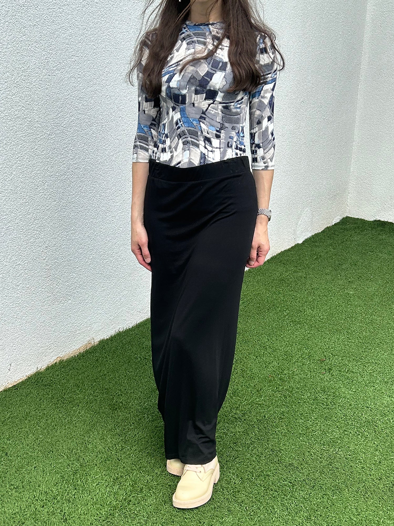 Loose-fit long sleeve top with side slits Matching skirt available 93% Viscose 7% Elastane