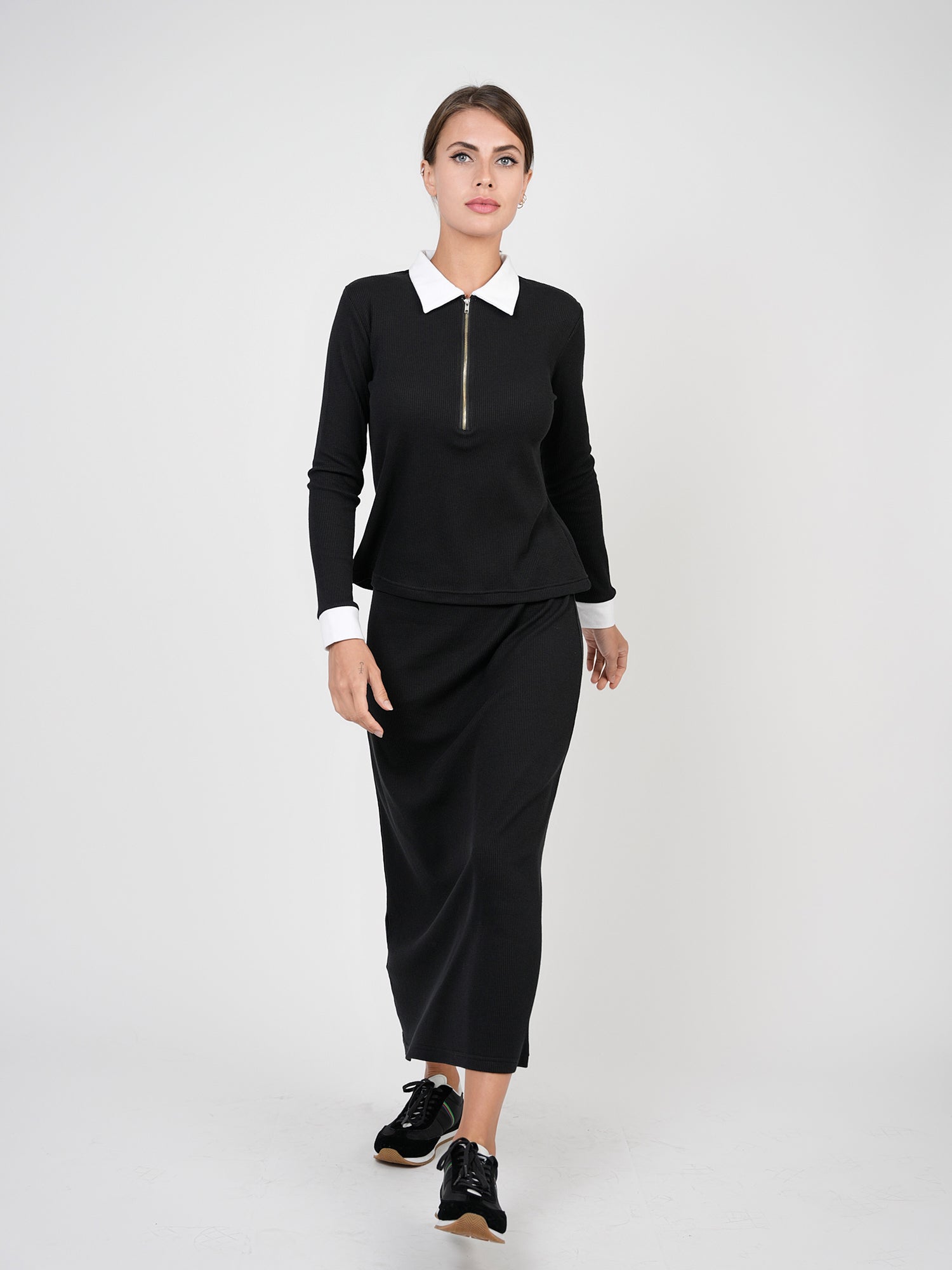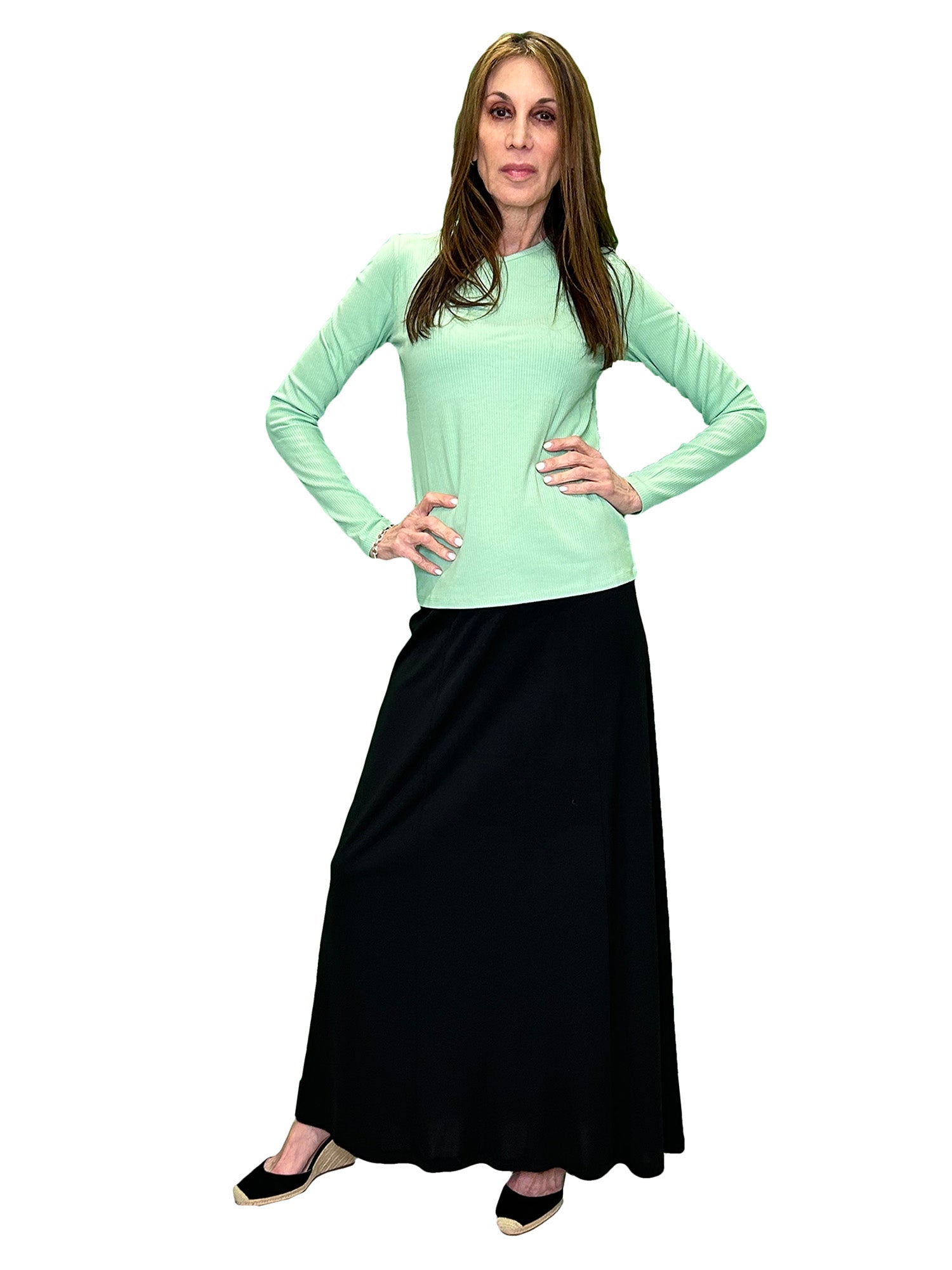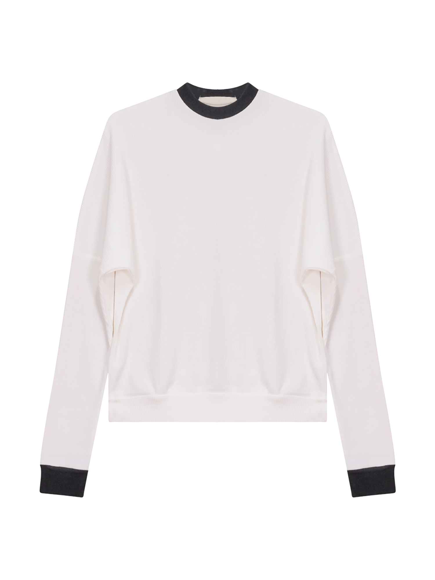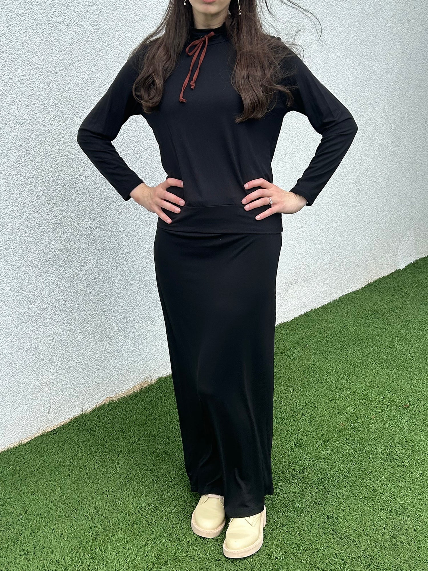 Loose-fit long sleeve top with side slits Matching skirt available 93% Viscose 7% Elastane