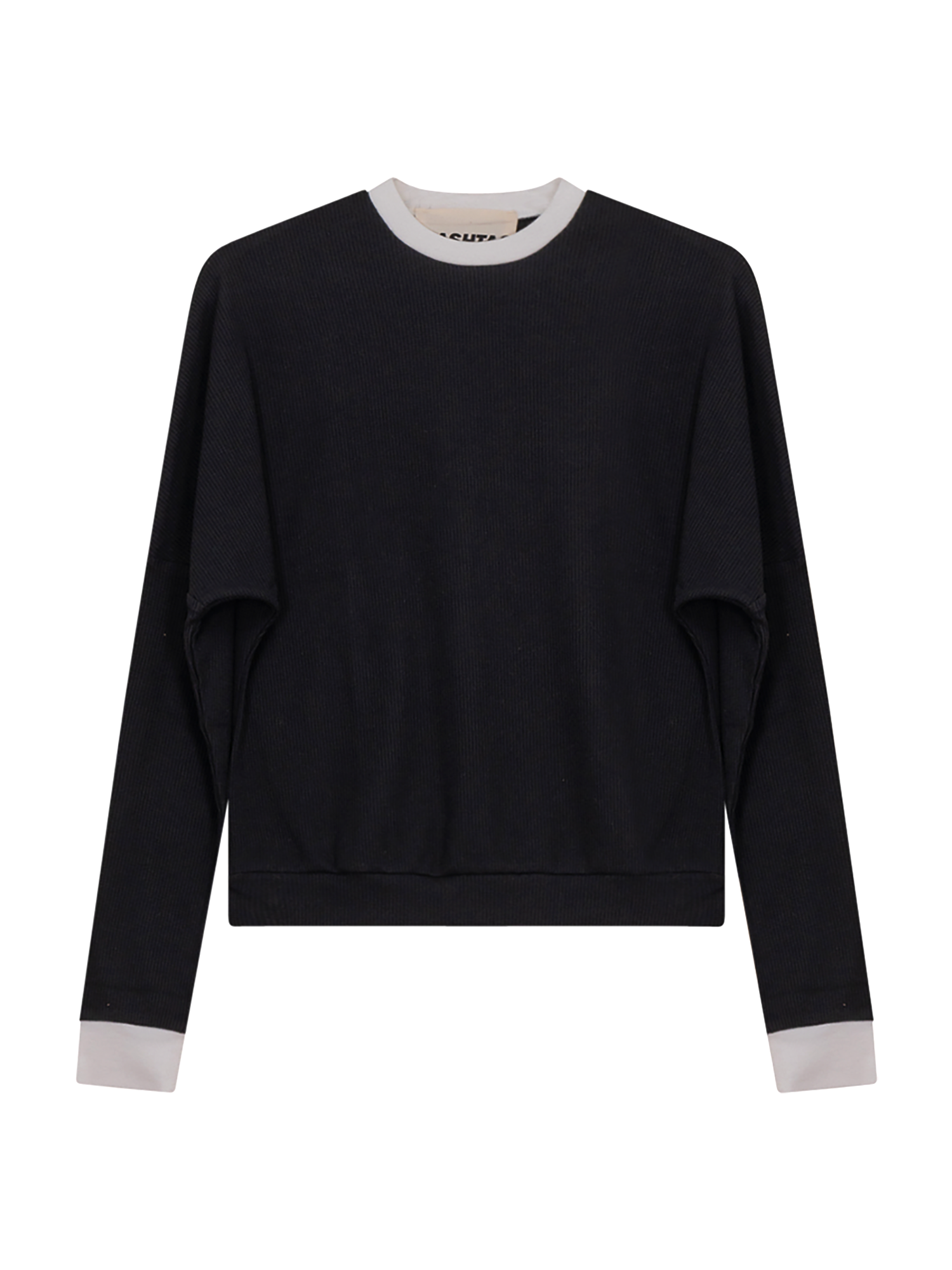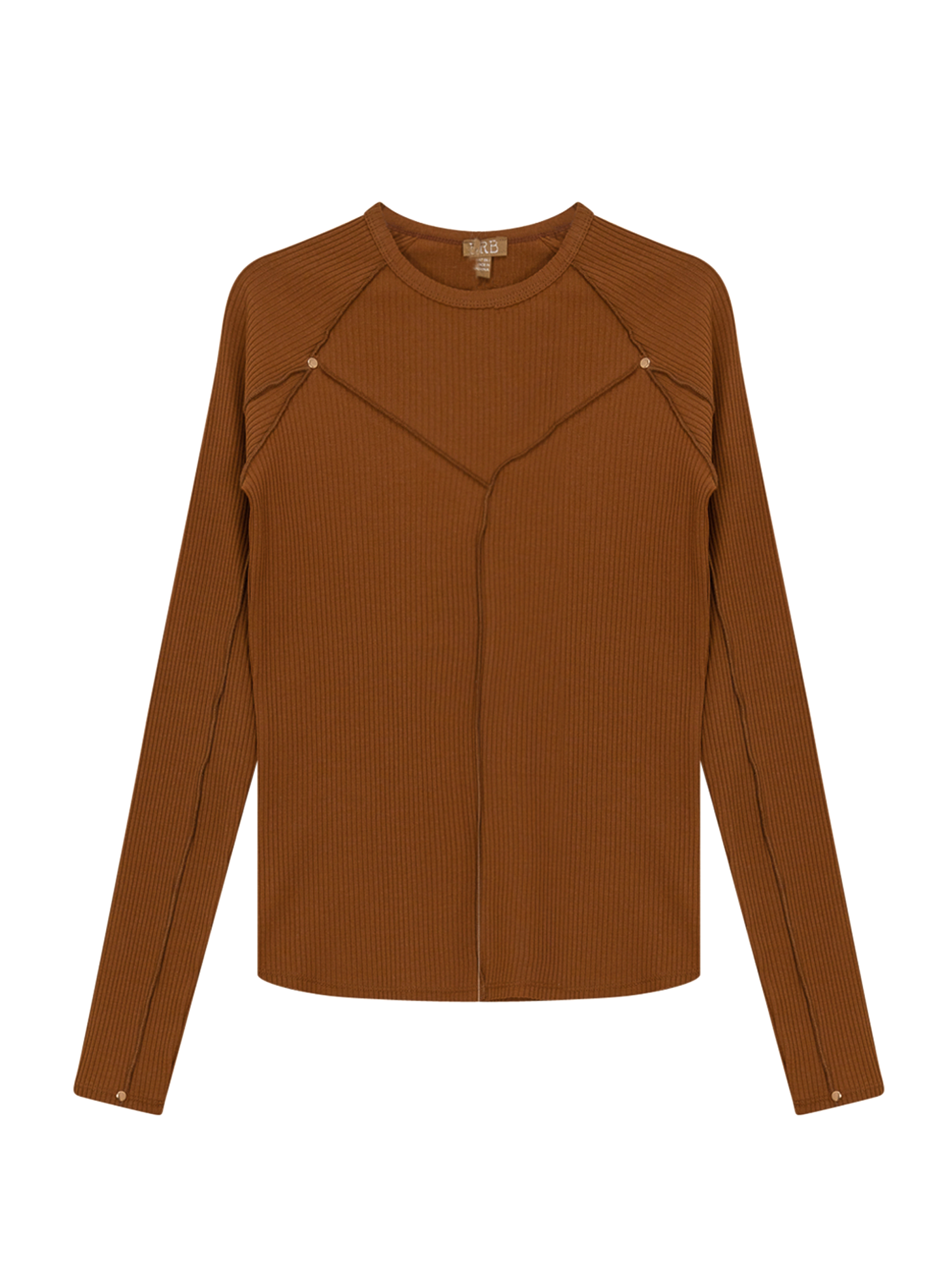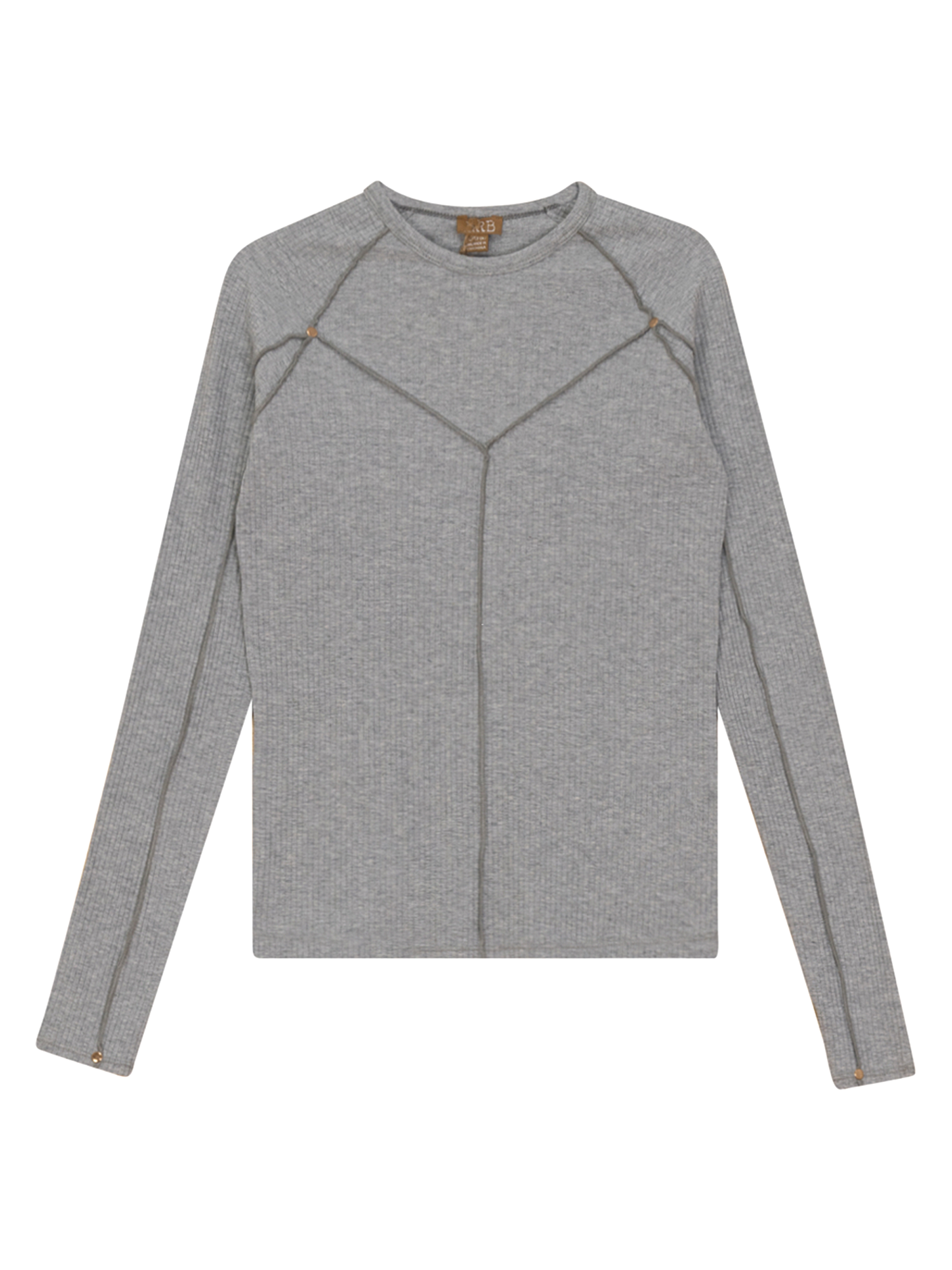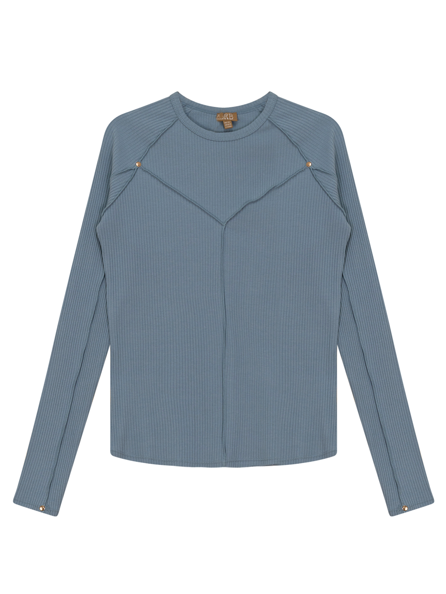 Crewneck long sleeve ribbed shirt with gold stud detail Matching skirt available 97% Cotton 3% Spandex Machine wash cold inside...