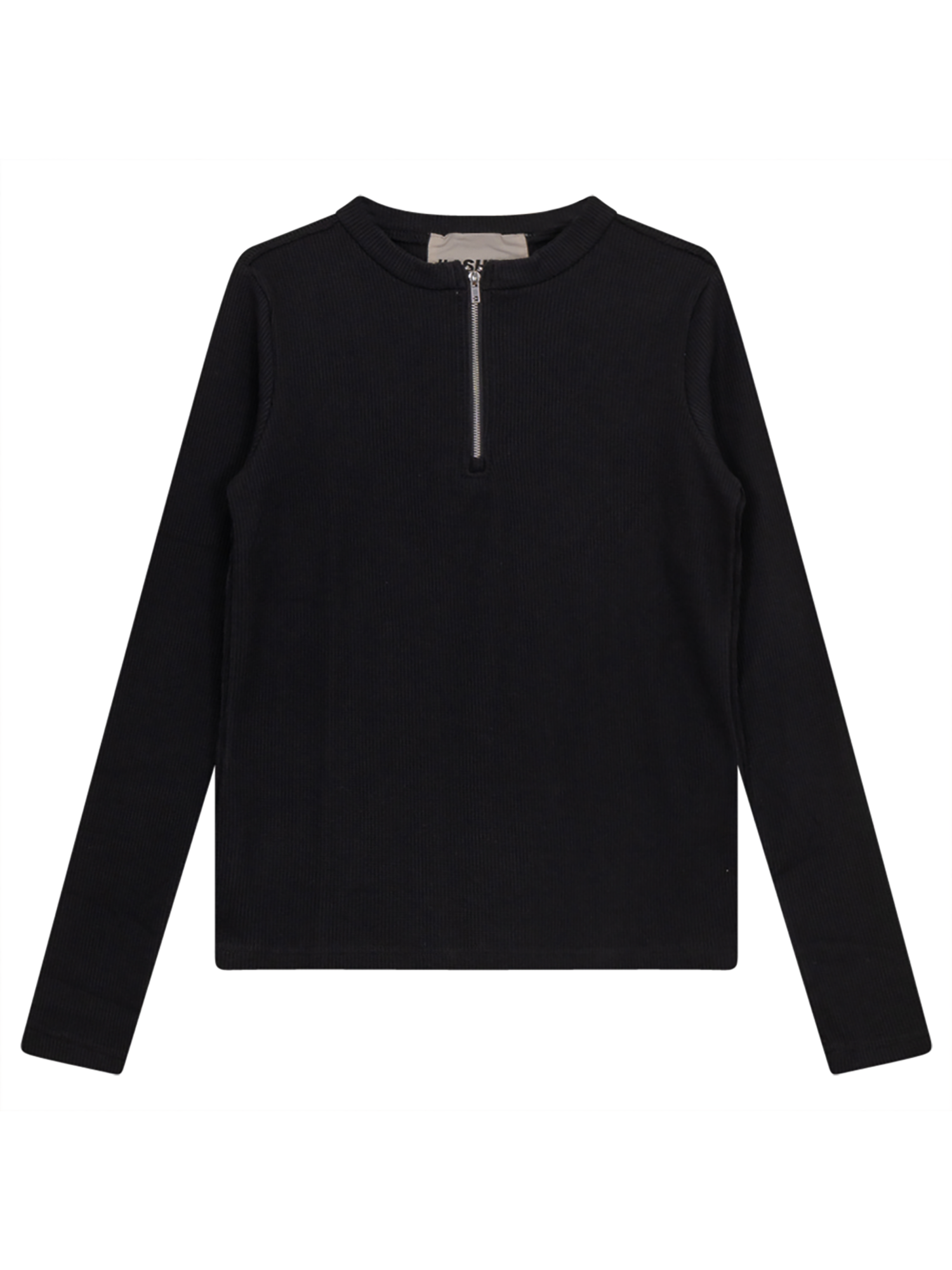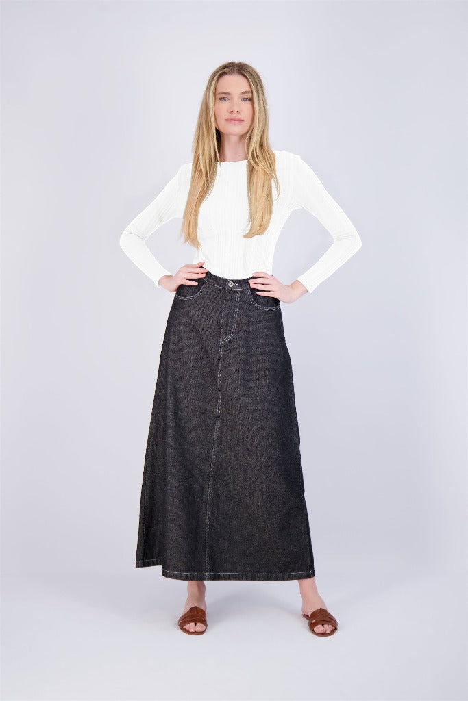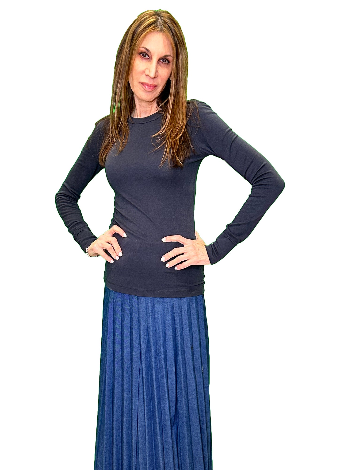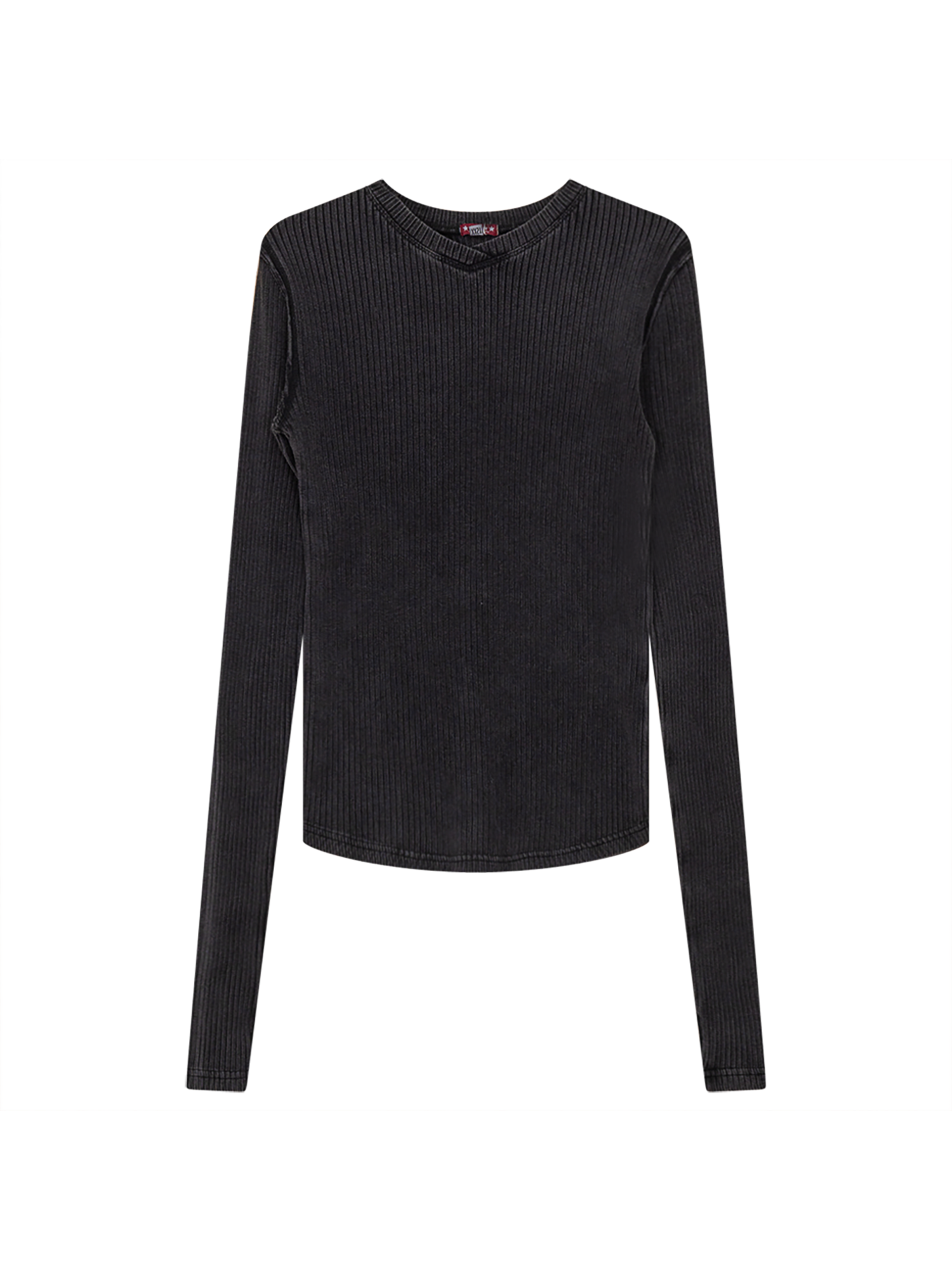 Crewneck long sleeve ribbed shirt with gold stud detail Matching skirt available 97% Cotton 3% Spandex Machine wash cold inside...