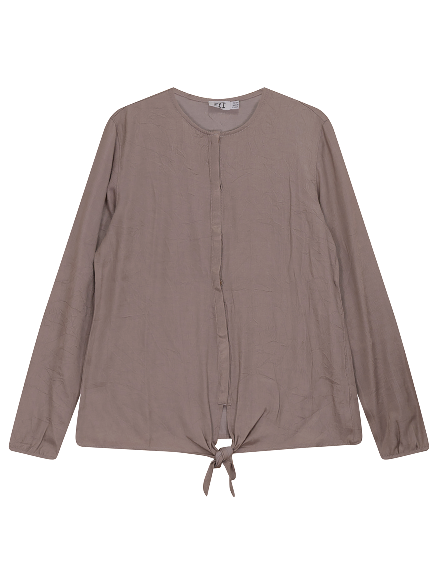 - Olive green- Round Neckline - Long Sleeves - Button Front Details - Straight Hem Model is Wearing Small Height...