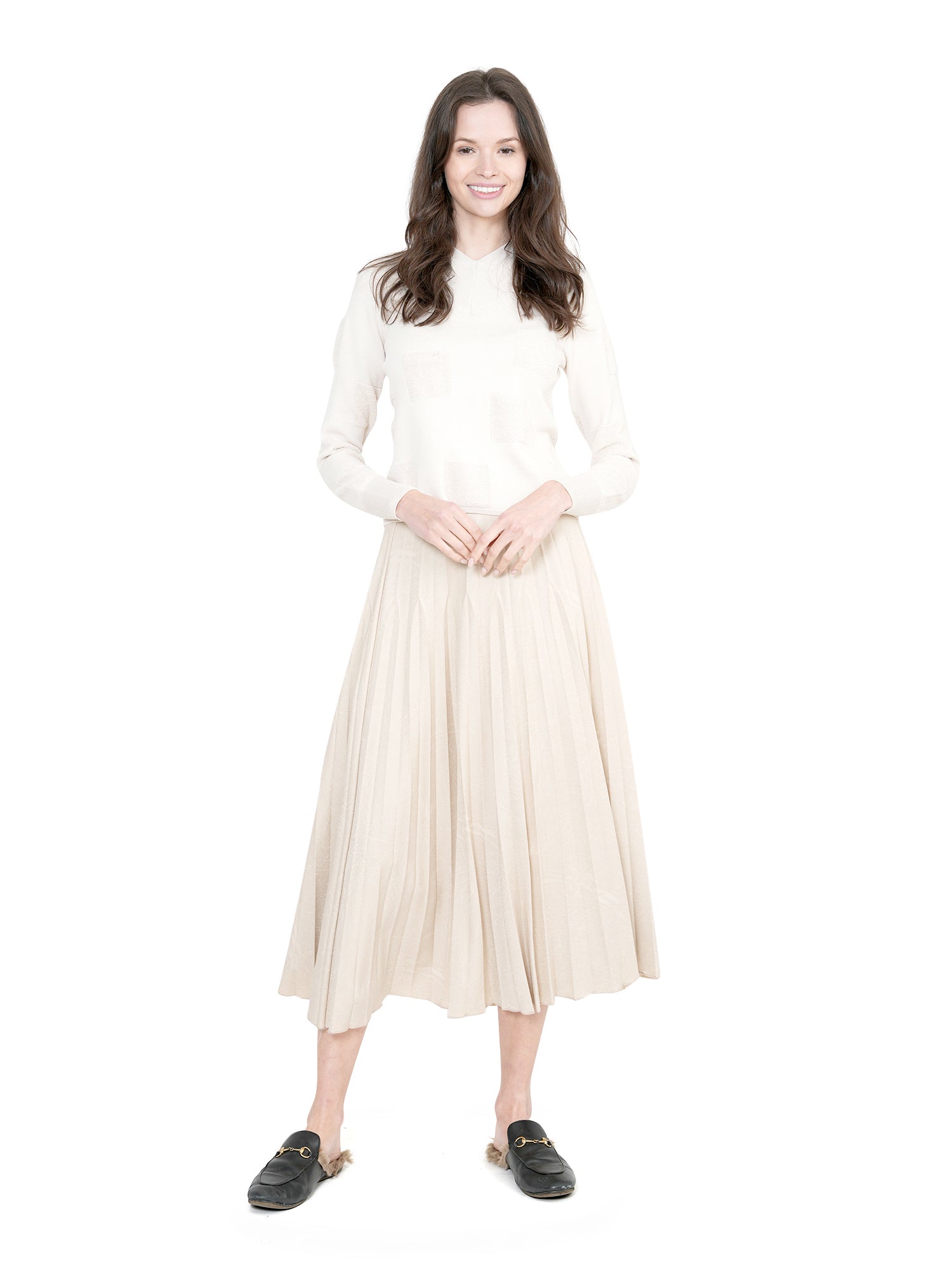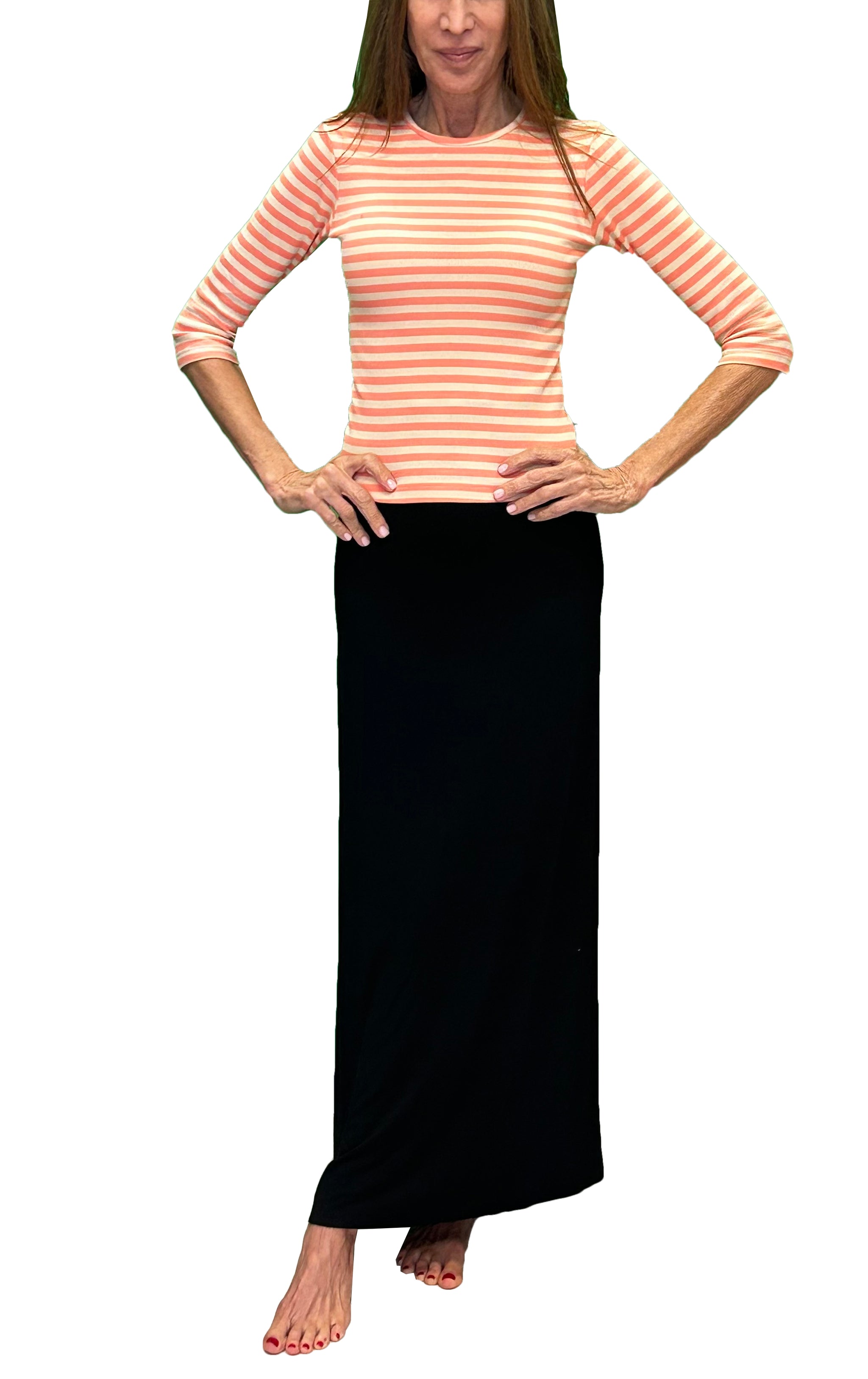 Stretch pleated striped top with elastic cuffs 100% Polyester Matching skirt available