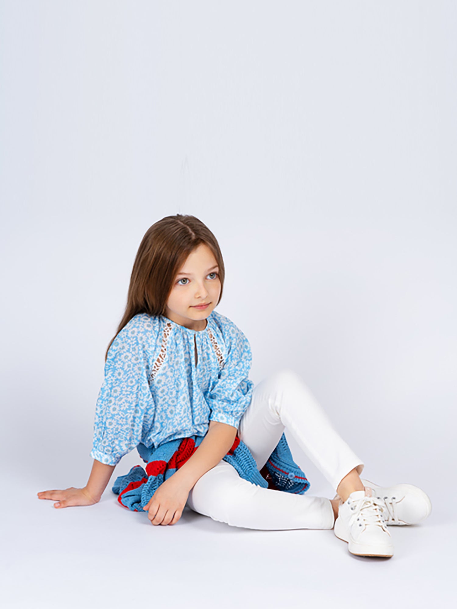 – Sold OutButton down eyelet vintage lace trimmed cotton blouse with puff sleeves100% Organic Cotton