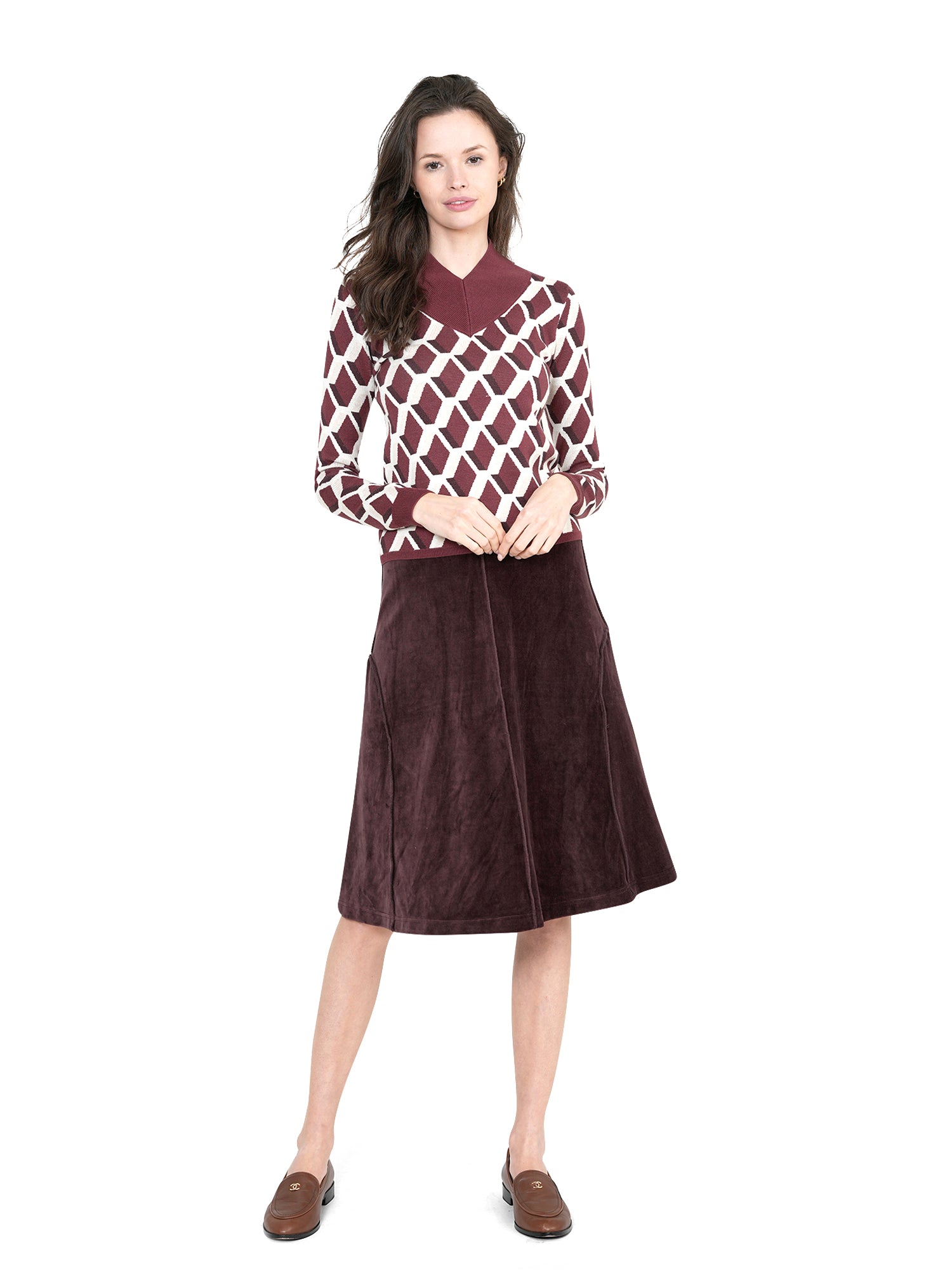 – Sold Out•LOOK: This beautiful graphic designed sweater has a lot of panache . Bold wide neck v adds extra interest. Can...