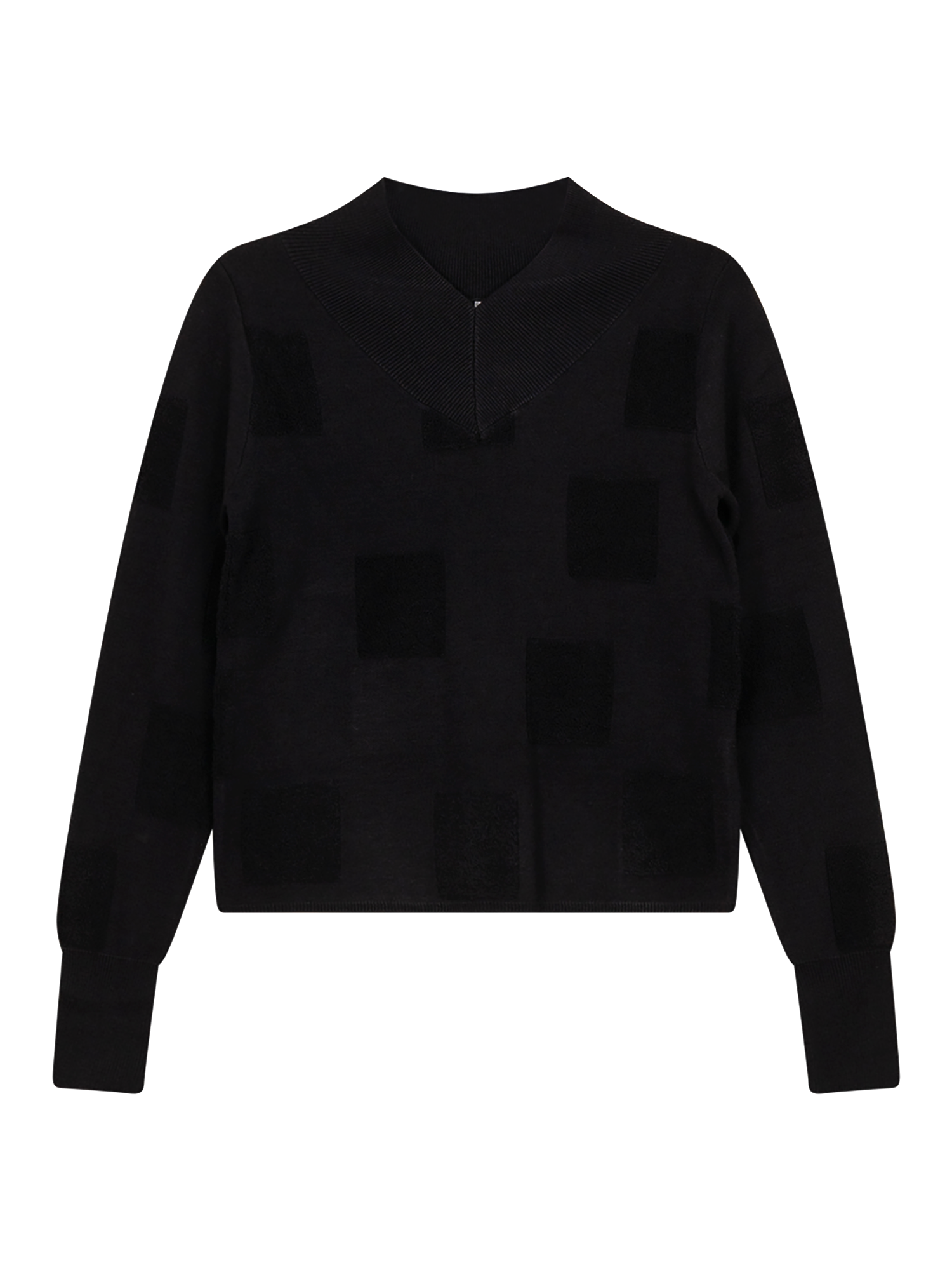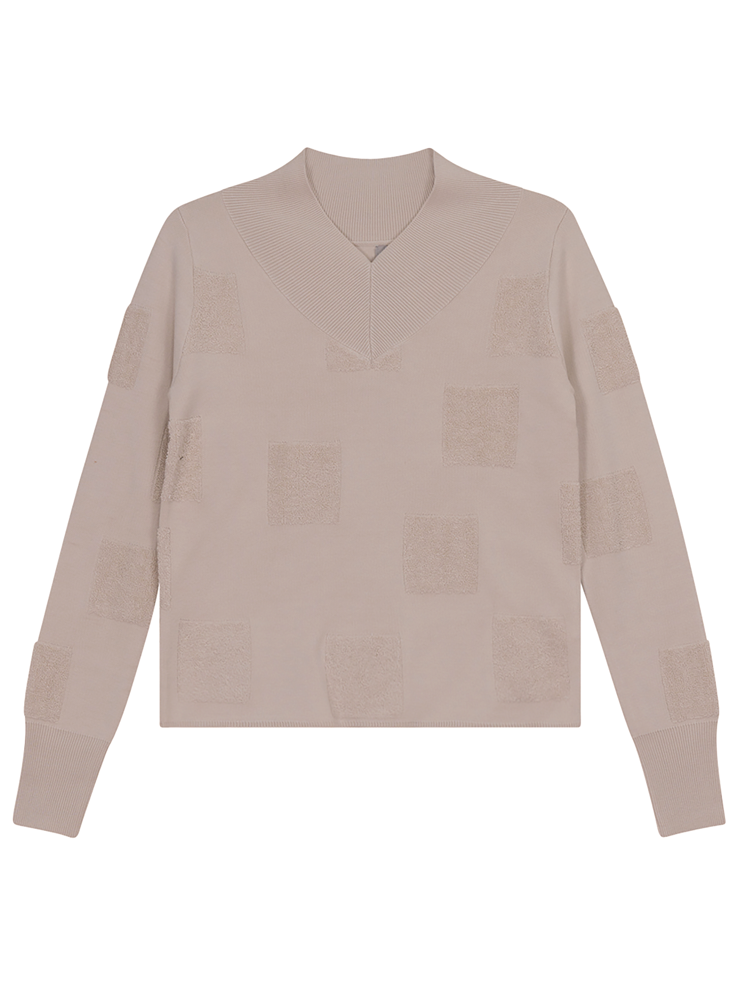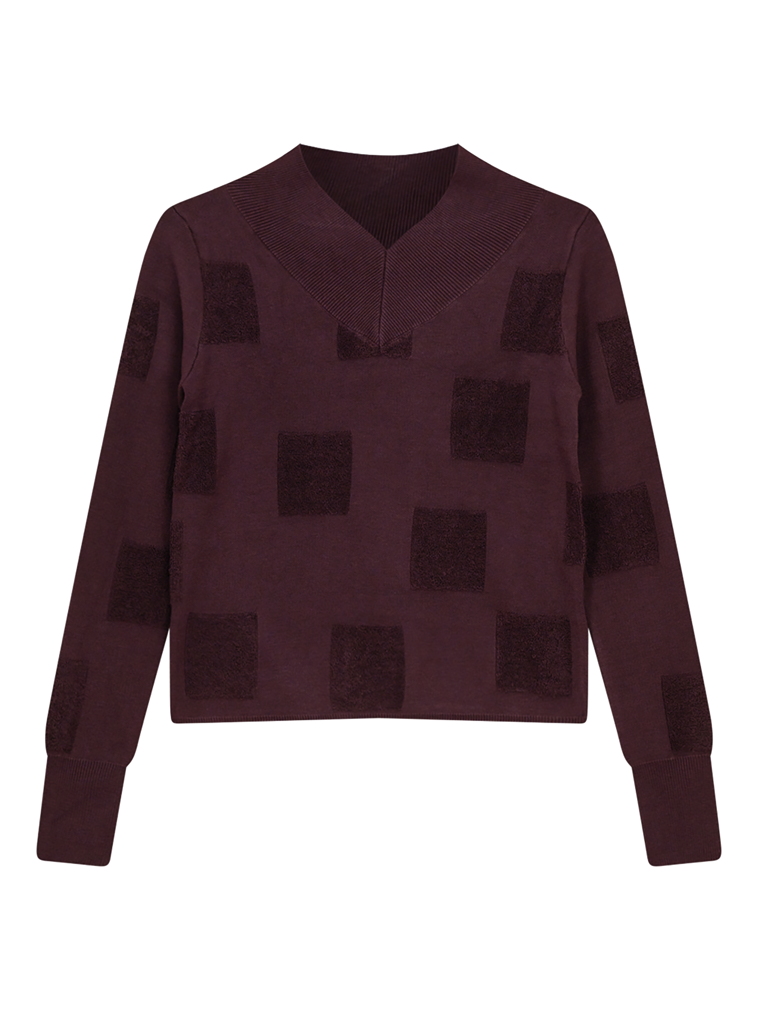 •LOOK: This V-neck long sleeve knit sweater has texturized patches sporadically placed throughout giving dimension and adding interest promoting its versatility....
