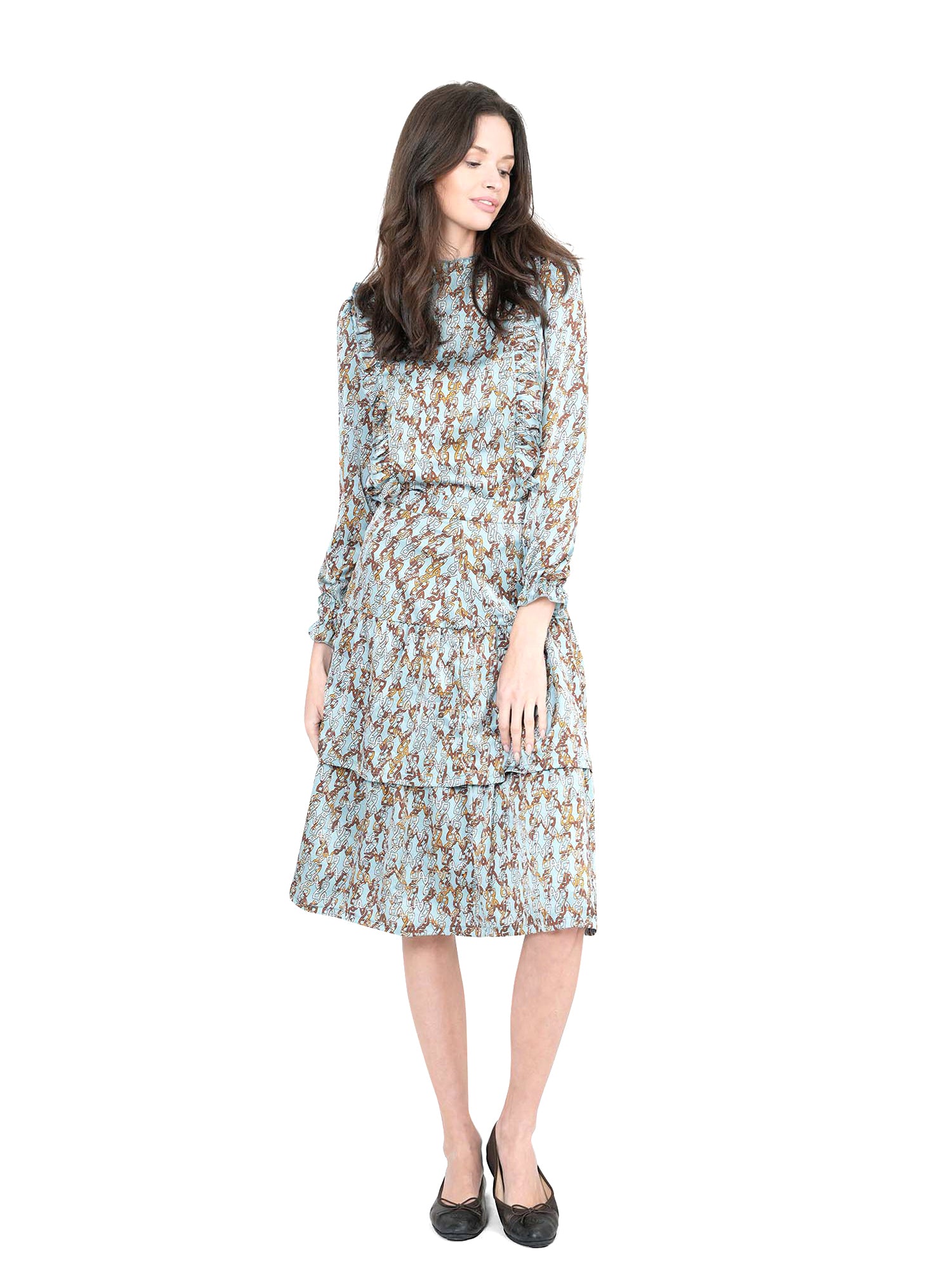 Floral print blouse with ruffled sleeves and front buttons Matching skirt available 100% Polyester