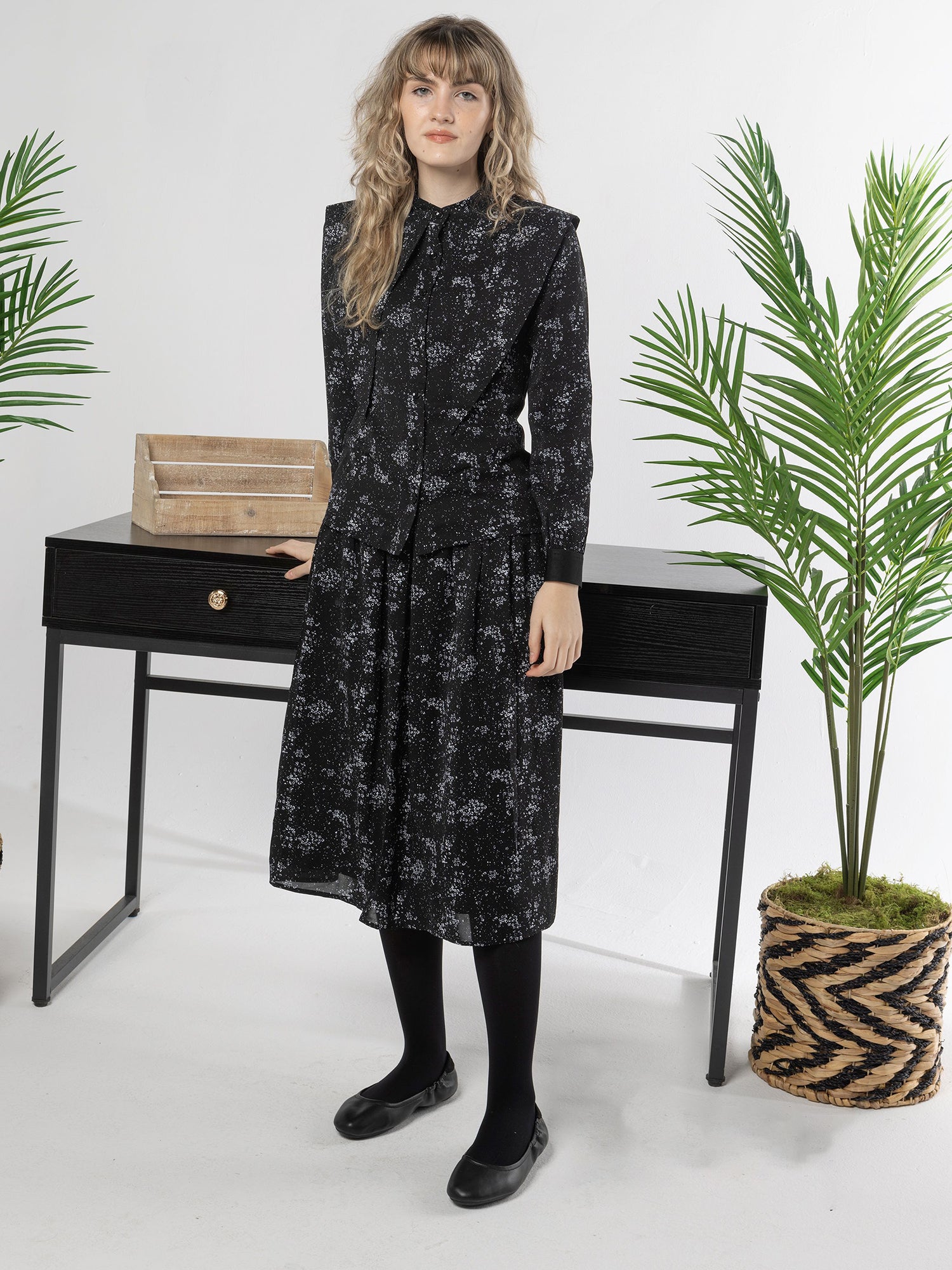 Floral print button down top Matching skirt available 100% Polyester Machine wash cold