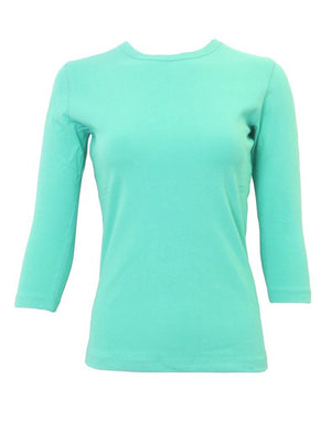 24/7 three quarter sleeve t-shirt, with exposed stitching.