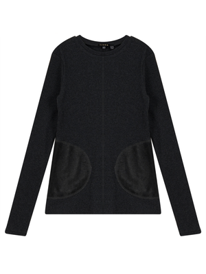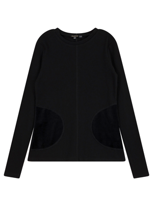 Ribbed long sleeve top with velour faux pockets