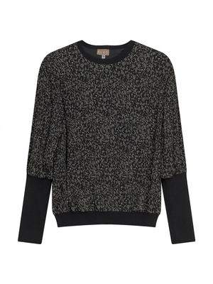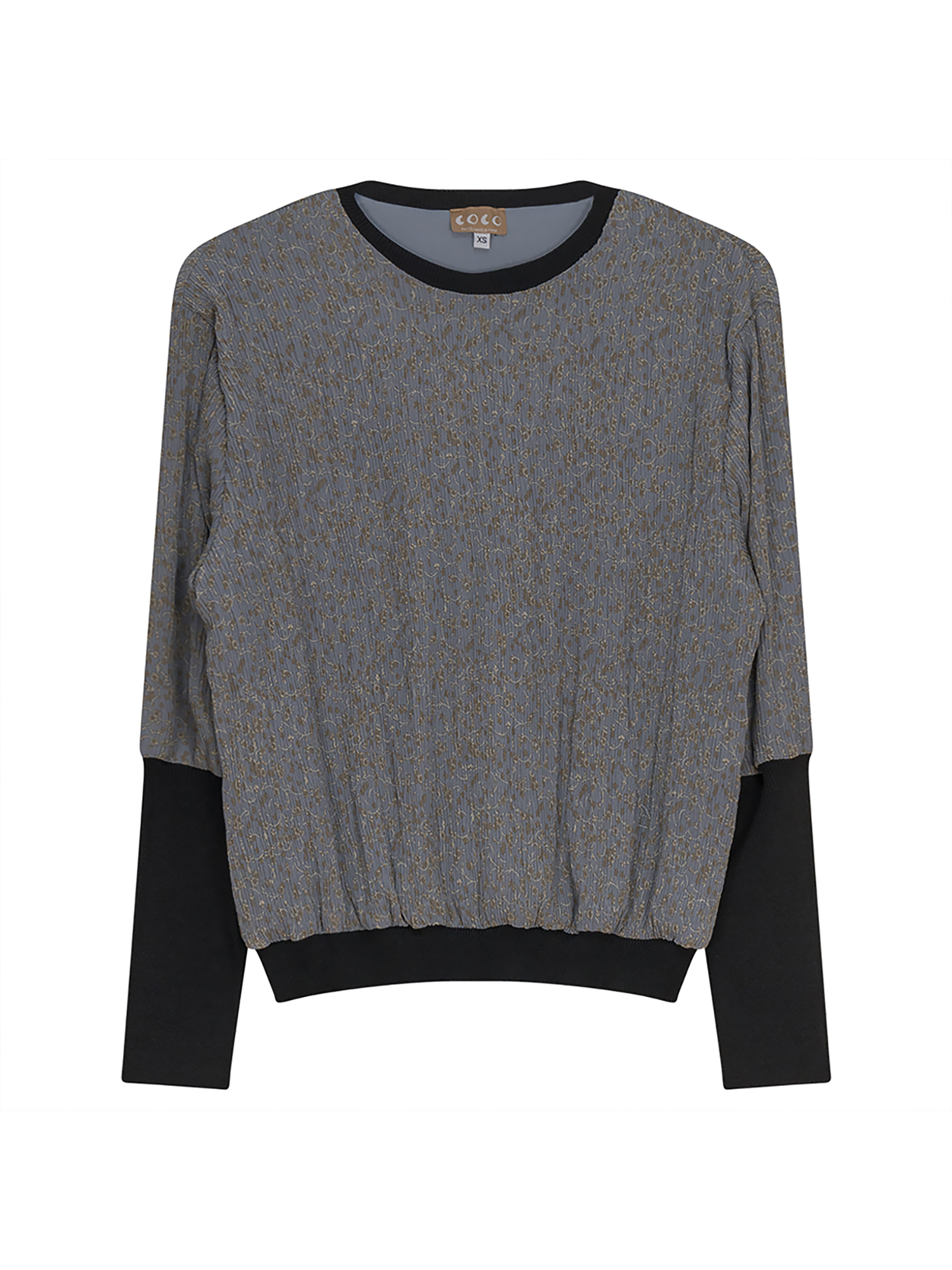 •LOOK: Here is a great top to add to your collection of versatile and wearable. The crepe texture is right on-trend. The long sleeves are full from the shoulders tapering down to the wrist. Pull over style and ribbed banding at hip. Black knit accents at forearm, neck and hip. This top looks great with a black skirt for an event, day or evening. Easy to wear and accessorize for elevated impact.