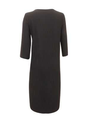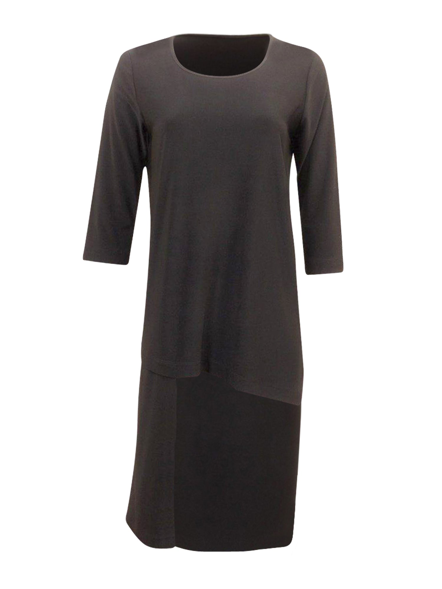Stretch three quarter sleeve crew-neck top with hi-lo front/back.