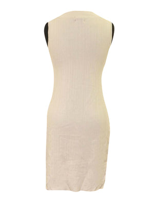 Concept egg shell knit ribbed vest with side slit on both sides and V neck.