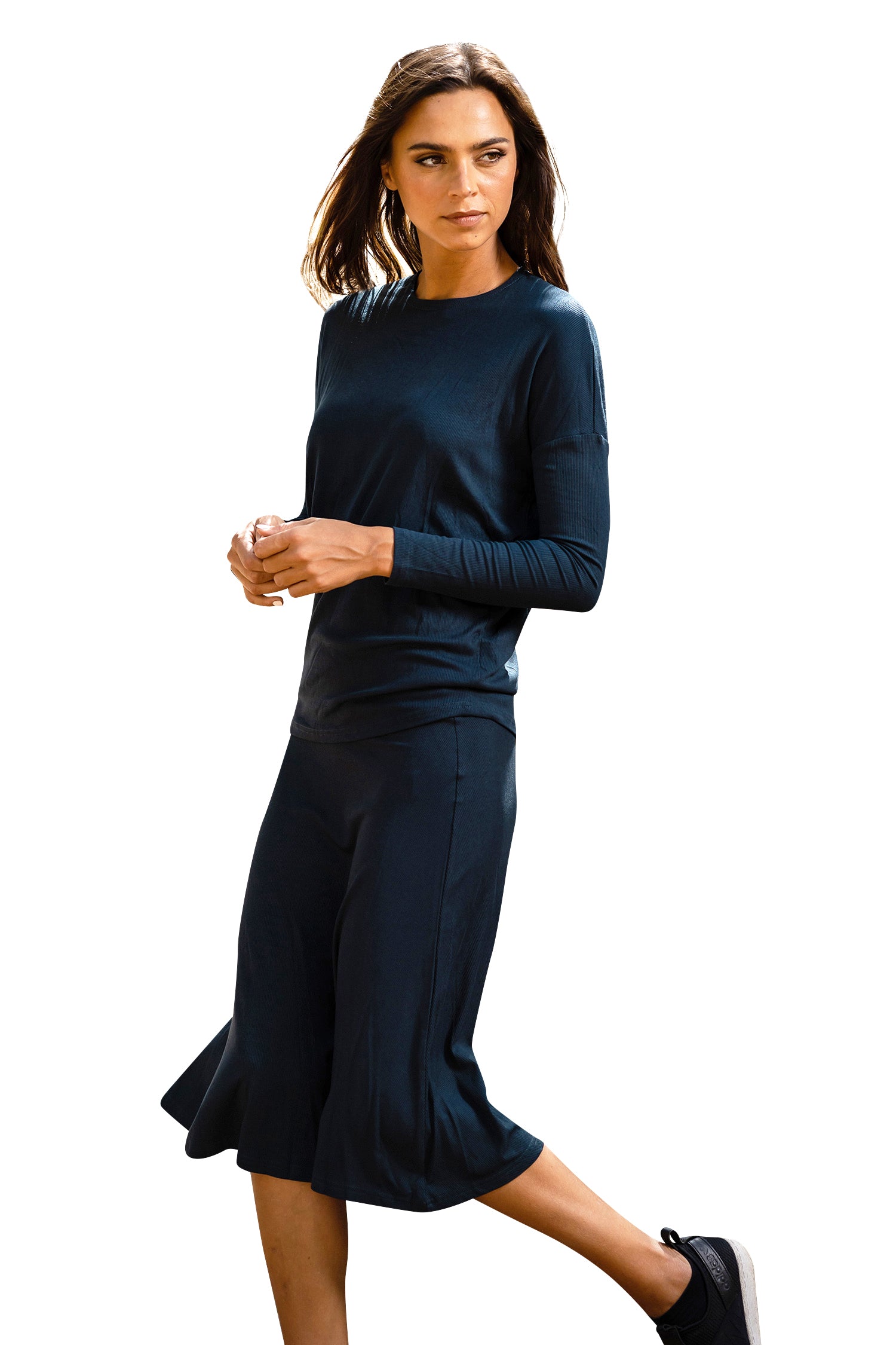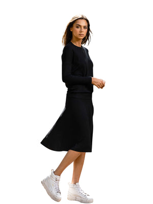 Our popular Dalia skirt is back and better than ever! This A-line skirt is a must have for every wardrobe. Cozy, ribbed material drapes and flatters beautifully. Pair this skirt with our matching Dalia Top for the perfect set!