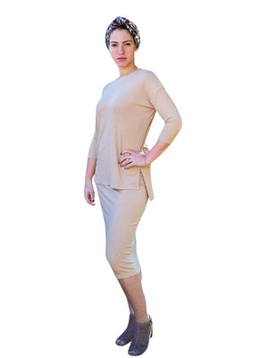 Ribbed crewneck high-lo top