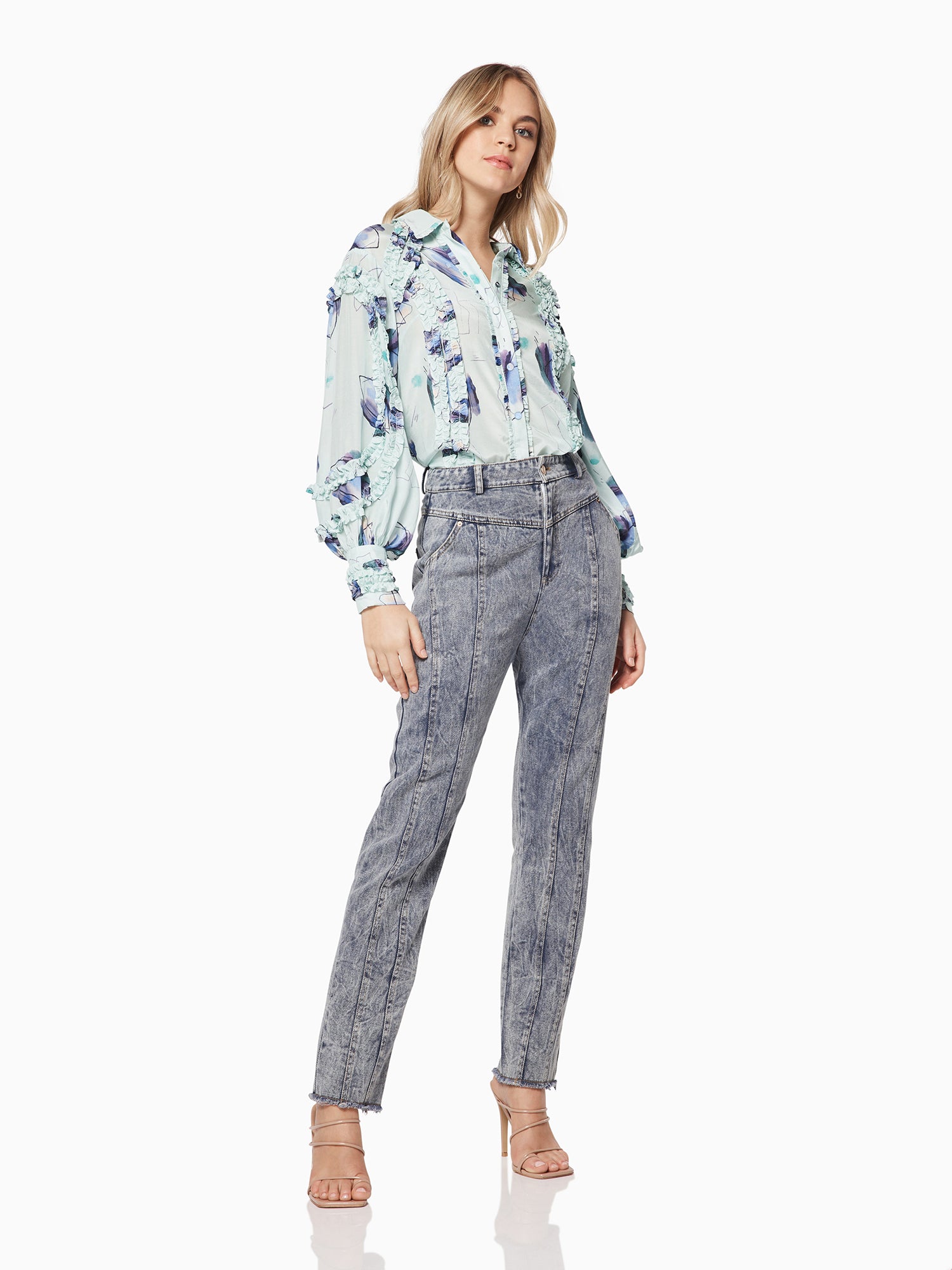 – Sold Out•LOOK: Such a luxurious blouse by Elliatt. Silky feel and elegant look. But Elliatt always brings something a little unusual into the mix. The use of tuxedo ruffles creates a lot of texture and dimension while keeping it entirely feminine. This blouse has the classic features of a collar and button placket. The print is eye catching and stylish. Wear with a skirt to a special event and you will be noticed and admired for always dressing appropriately but with a sharp fashion edge.
