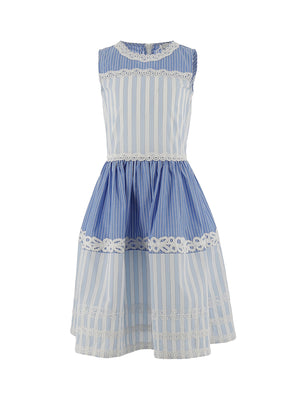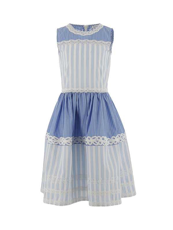 •LOOK: A beautiful summer dress by Ermanno Scervino. Sleeveless style with dainty lace appliqués used to separate the different yet complementary patterns. Hidden back zipper. An amazing and unique a-line styled cotton dress for a special summer occasion.