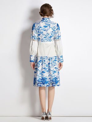 •LOOK: Eterna designed a dress that will be a perfect choice for your spring/summer events. In a feather weight fabric, covered buttons are centered from high neck straight down to the hem. The eye-catching design is striking against an optic white background. The use of breaking up the pattern with the optic white waist, brings out a slimming effect that will flatter your shape. The long sleeves are beautifully detailed with a subtle open weave. This dress creates a magnificent silhouette due to the flattering details. The smooth silky fabric will look crisp and fresh during the high temps of the season. You will stun the crowd with your exquisite fashion sense and cool look in this extraordinary piece.