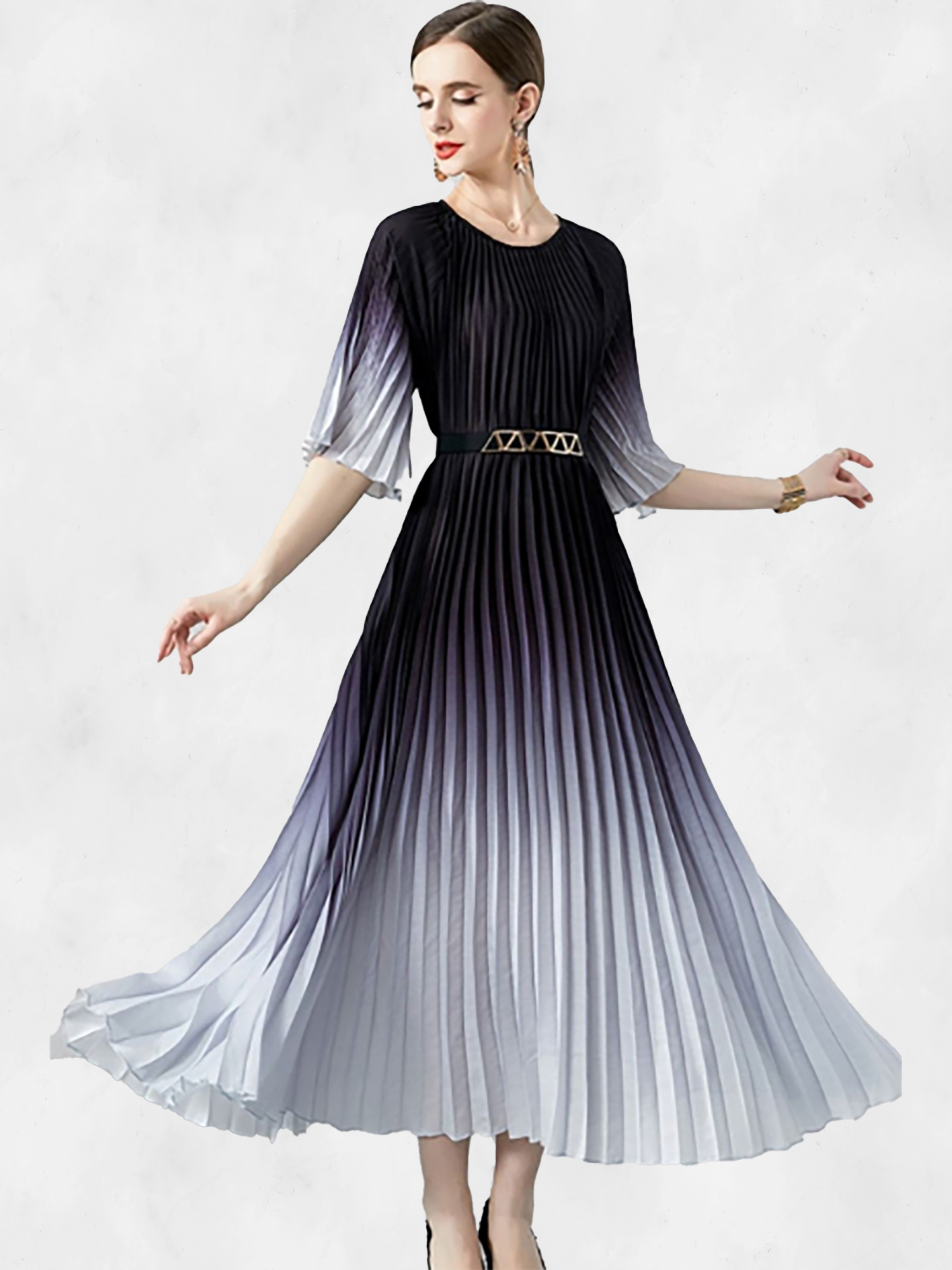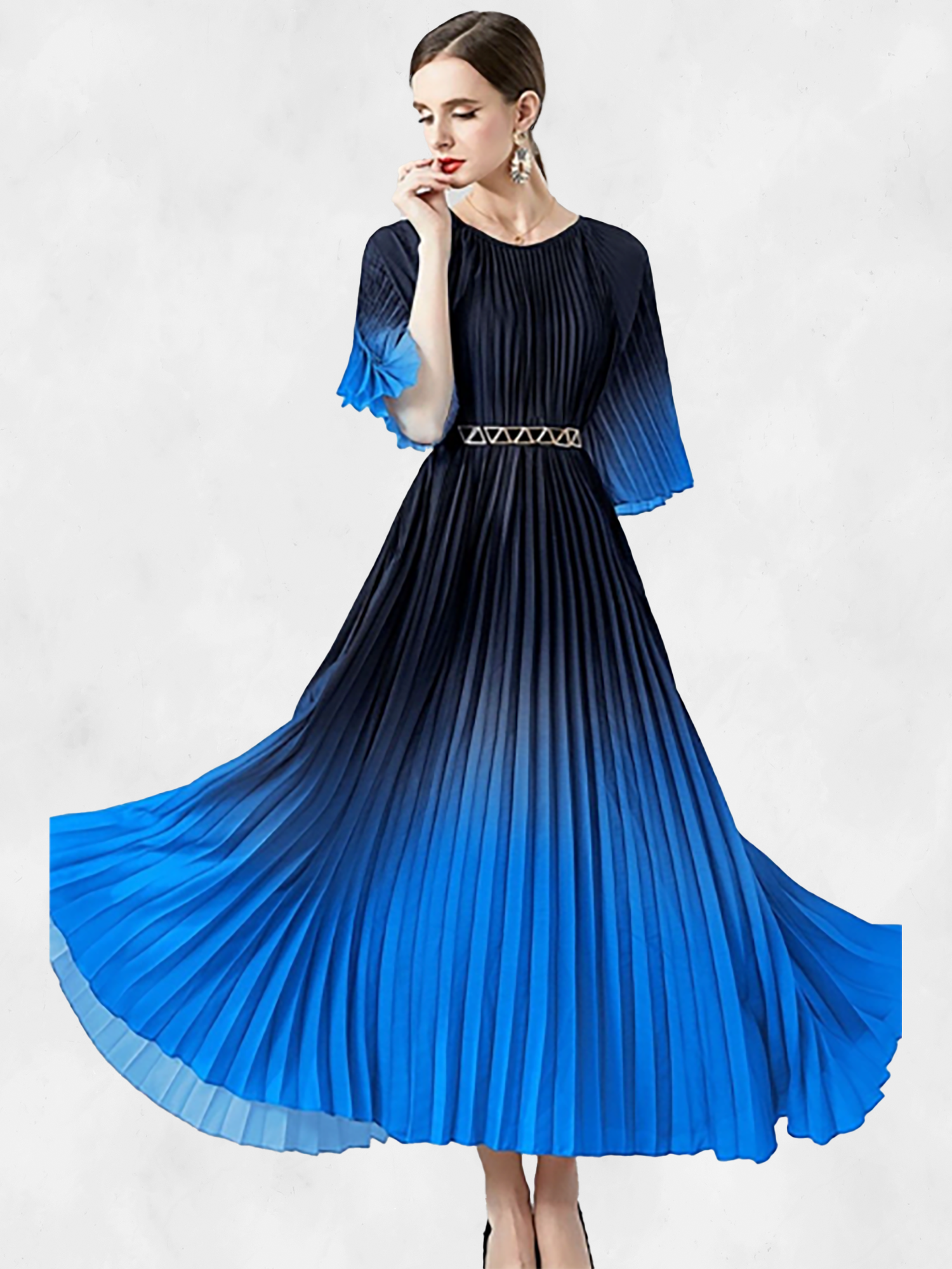 Description - Effortlessly chic, the Eterna Oversized Loose Gradient Pleated Long Dress drapes beautifully with a stunning ombre effect. The loose fit flatters all body types, while delicate pleats add a touch of texture. Perfect for a breezy summer look.