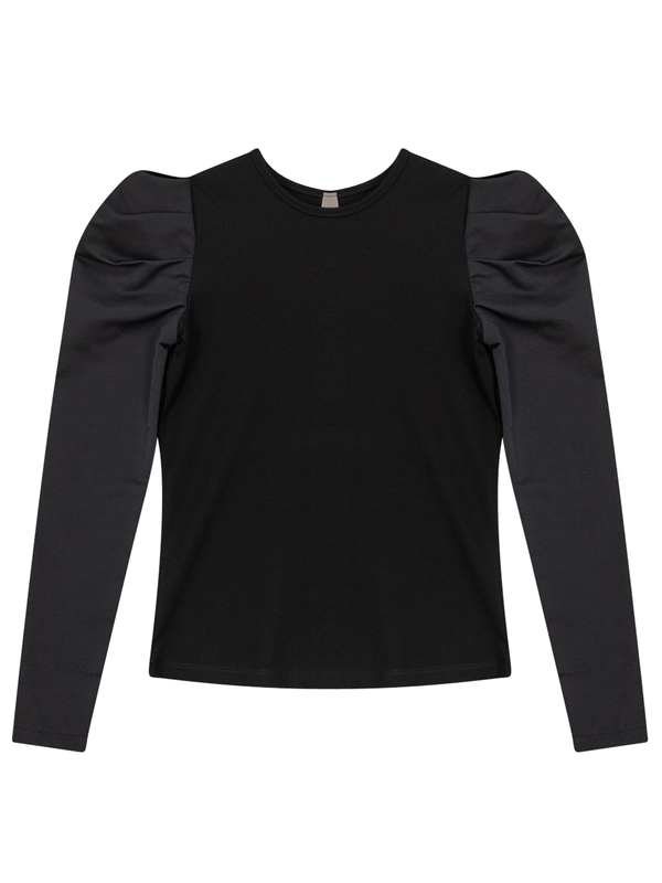 Crewneck top with long puff sleeves