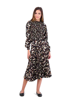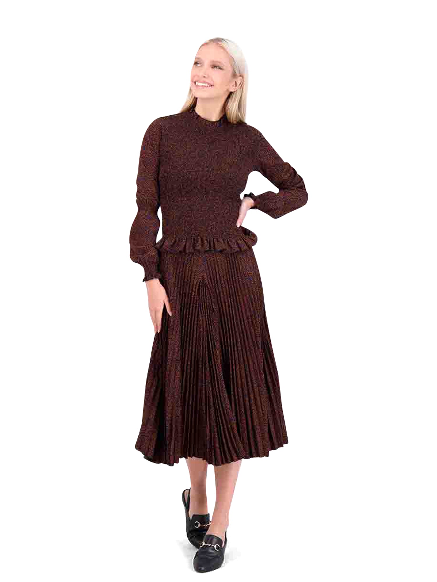 Ruffled neck blouse with textured body. Featuring smocked hand cuffs and forearms. The perfect little top for a fun Saturday night out with friends !