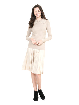 •LOOK: An exaggerated scalloped trimmed collar adds interest to this simple everyday sweater .