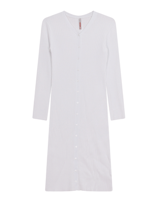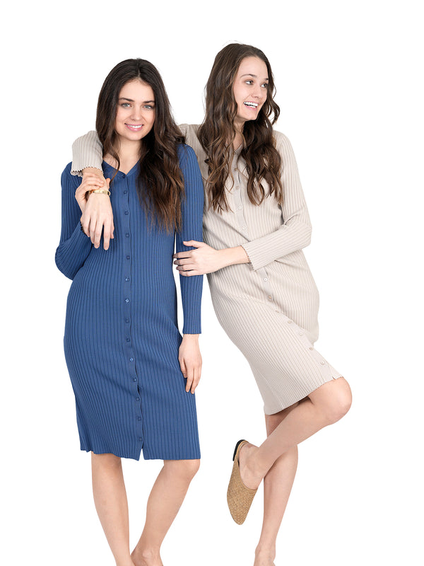 – Sold OutLook: Just in at Pink Orchid Fashion! A must have from Ginger! This V-neck long cardigan is a very wearable piece for your spring wardrobe. Can be worn as is as a dress or wear it open as a topper over any outfit. It completes the look. Ribbed fabric, buttons run down the front of the cardigan. Comes to about midi length.