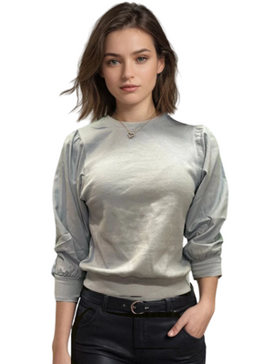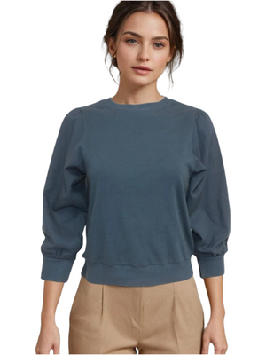 Click "Add to cart" and get ready to experience the cozy chic magic of the Hard Tail Crewneck Cotton Top with 3/4 Length Puff Sleeves!