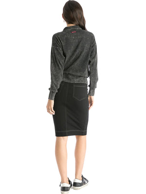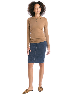 Craving the power of denim but longing for all-day comfort? Meet your new BFF: the Hard Tail Forever knee-length denim pencil skirt! Say goodbye to stiff, scratchy denim and hello to soft, stretchy perfection that flatters your curves without squeezing them.